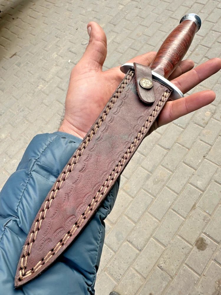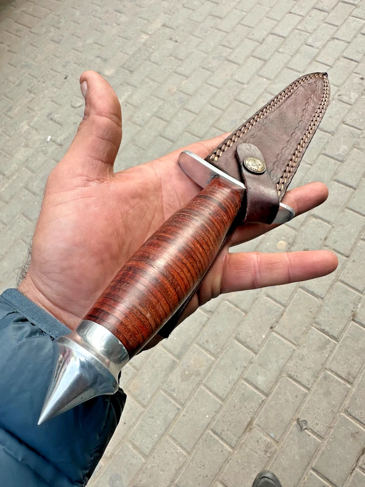 Brand: D2-TOOL Steel Blade Material: Carbon Steel Features: Sheath Included Vintage: No Modified Item: No Dexterity: Ambidextrous Handmade: Yes Original/Reproduction: Original Country of Origin: United States Blade Edge: Plain Blade Color: Silver Blade Type: Needle Point Type: Boot, Bowie, Bowie Knife, Combat, Everyday Carry, Hunting, Survival, Throwing, GIFT Tang: Half, Three-Quarter, Rat-Tail, Hidden Handle Material: Leather Blade Length: 8inch