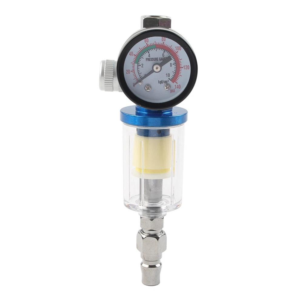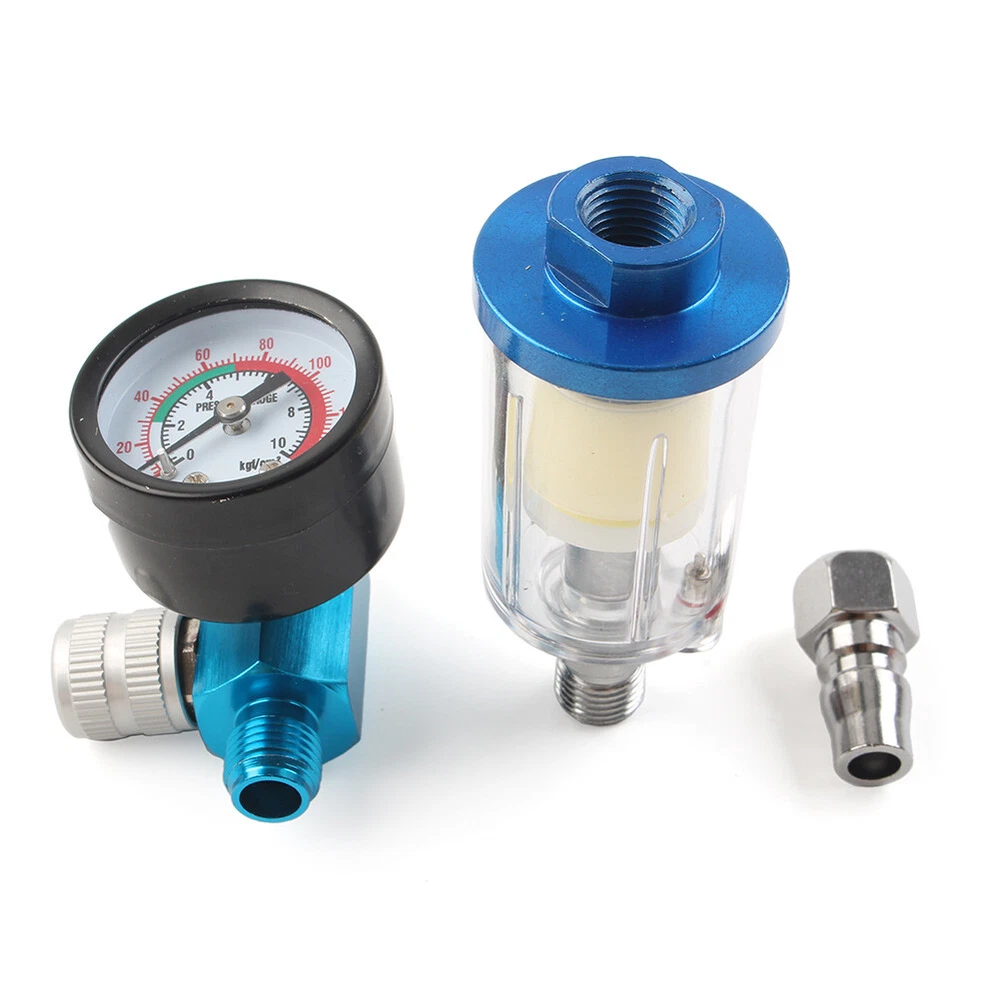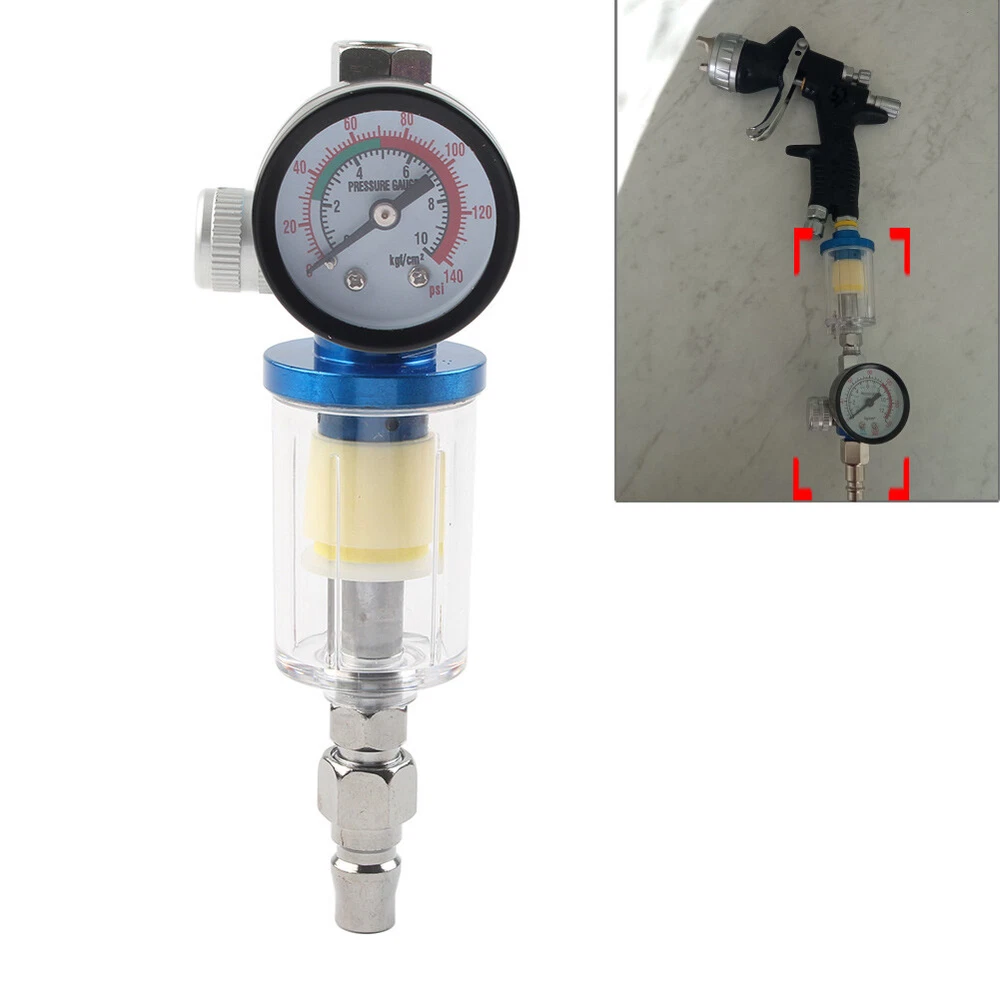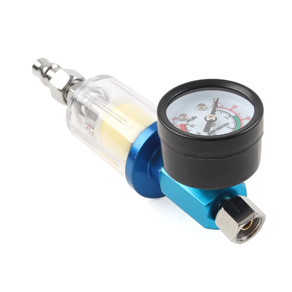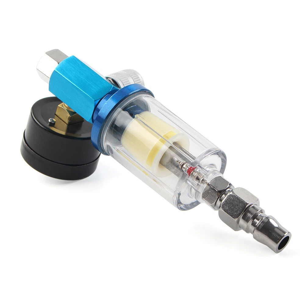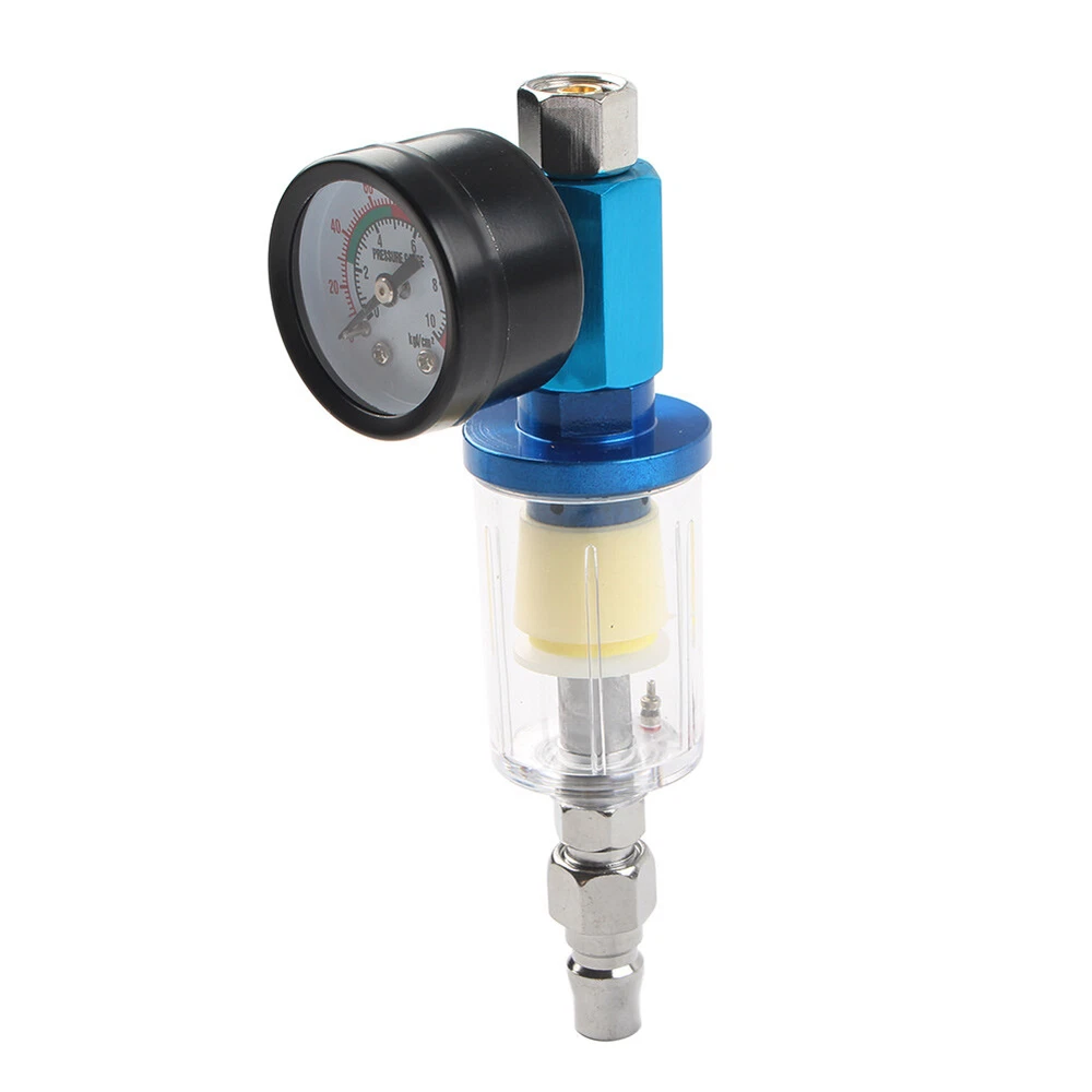 1/4" Air Pressure Regulator Gauge & In-Line Water Trap Air Filter For Spray Gun