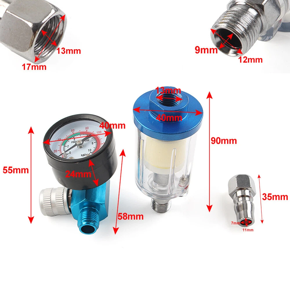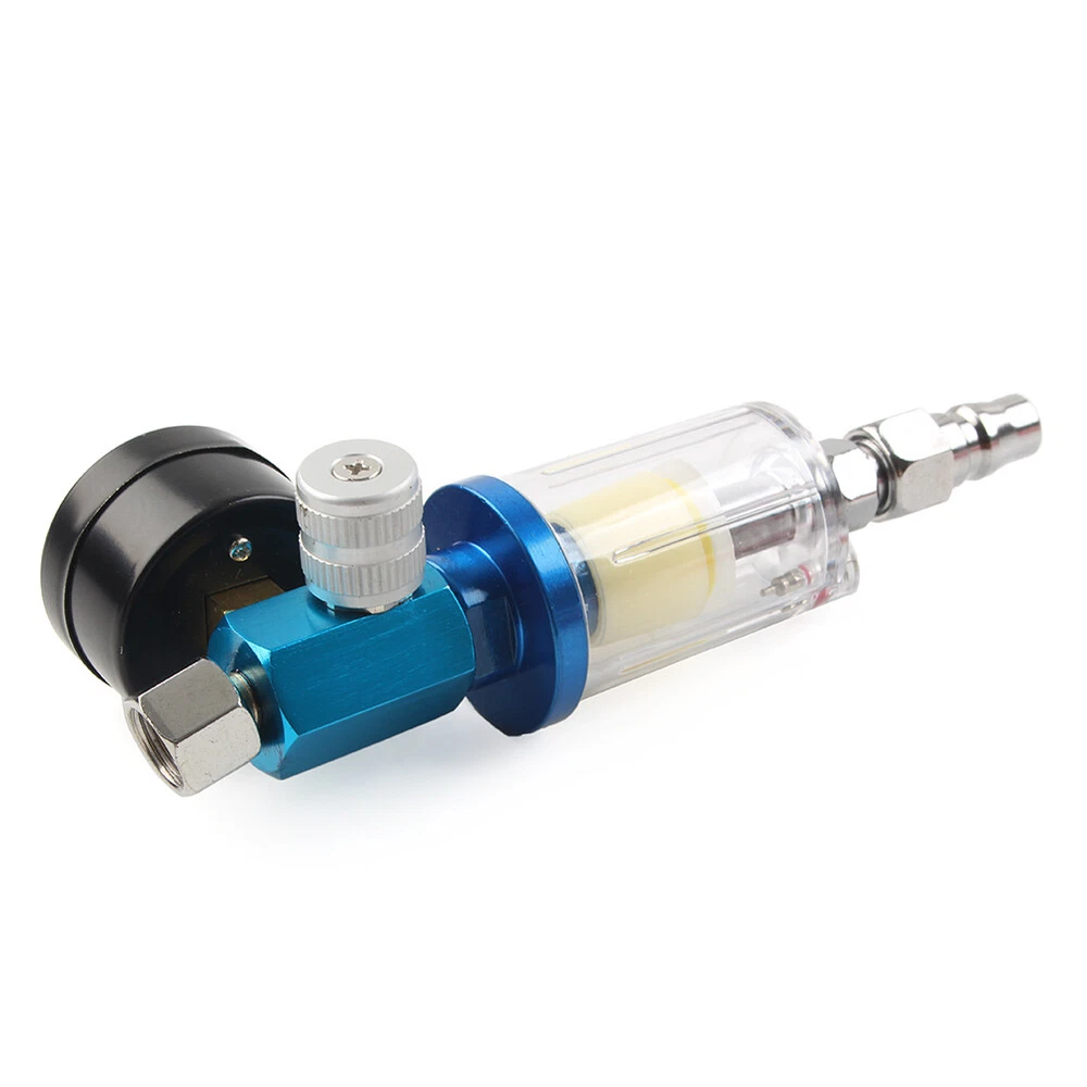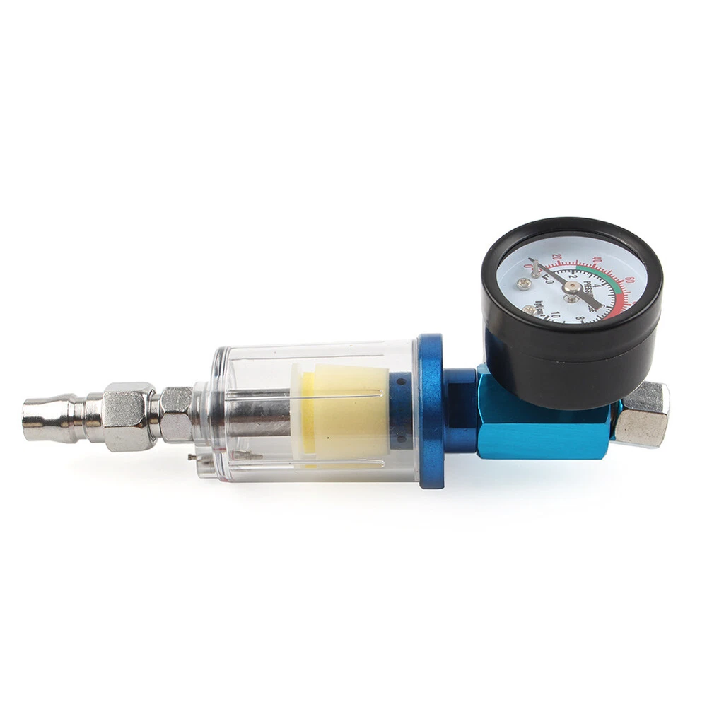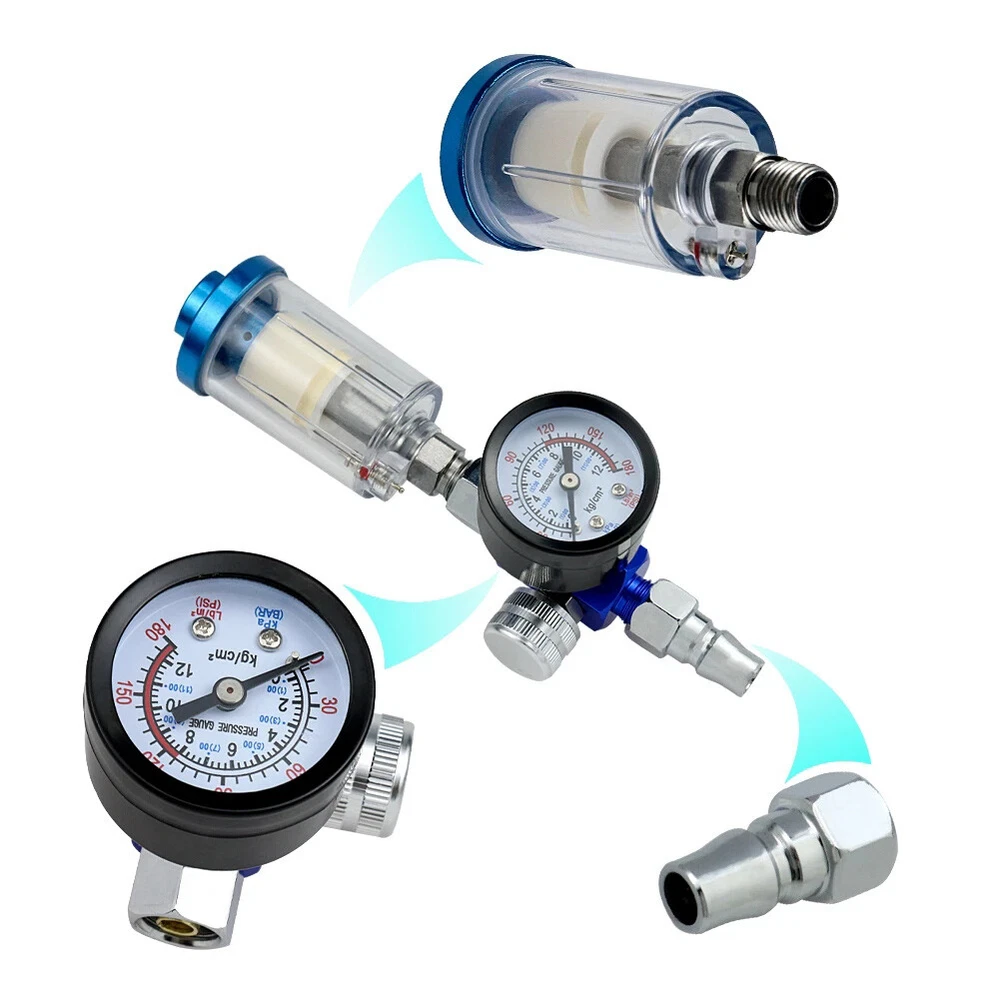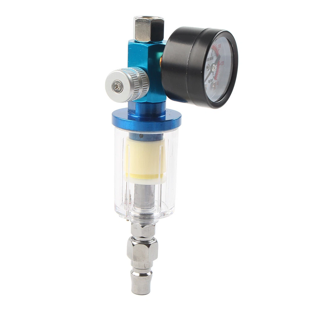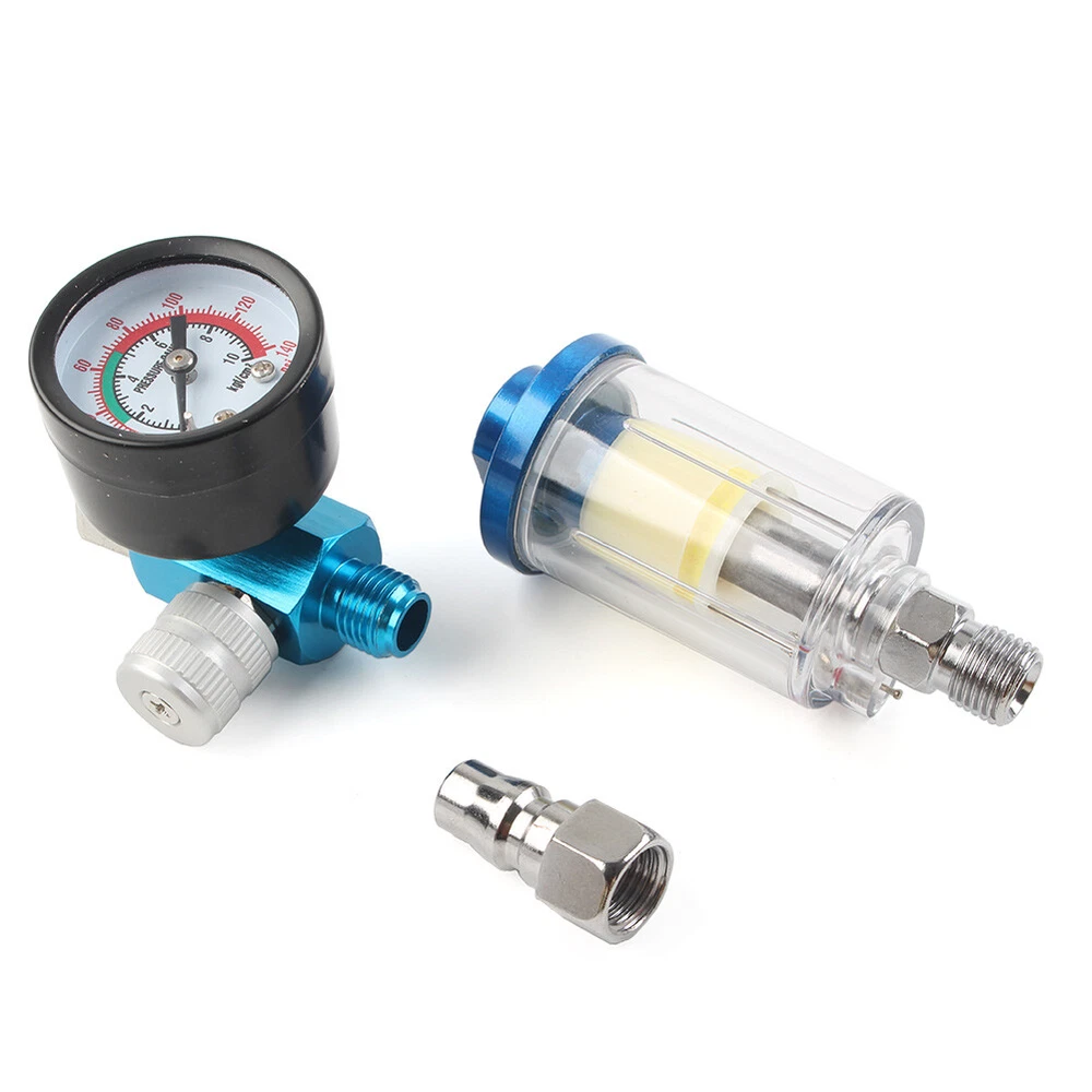 1/4" Air Pressure Regulator Gauge & In-Line Water Trap Air Filter For Spray Gun