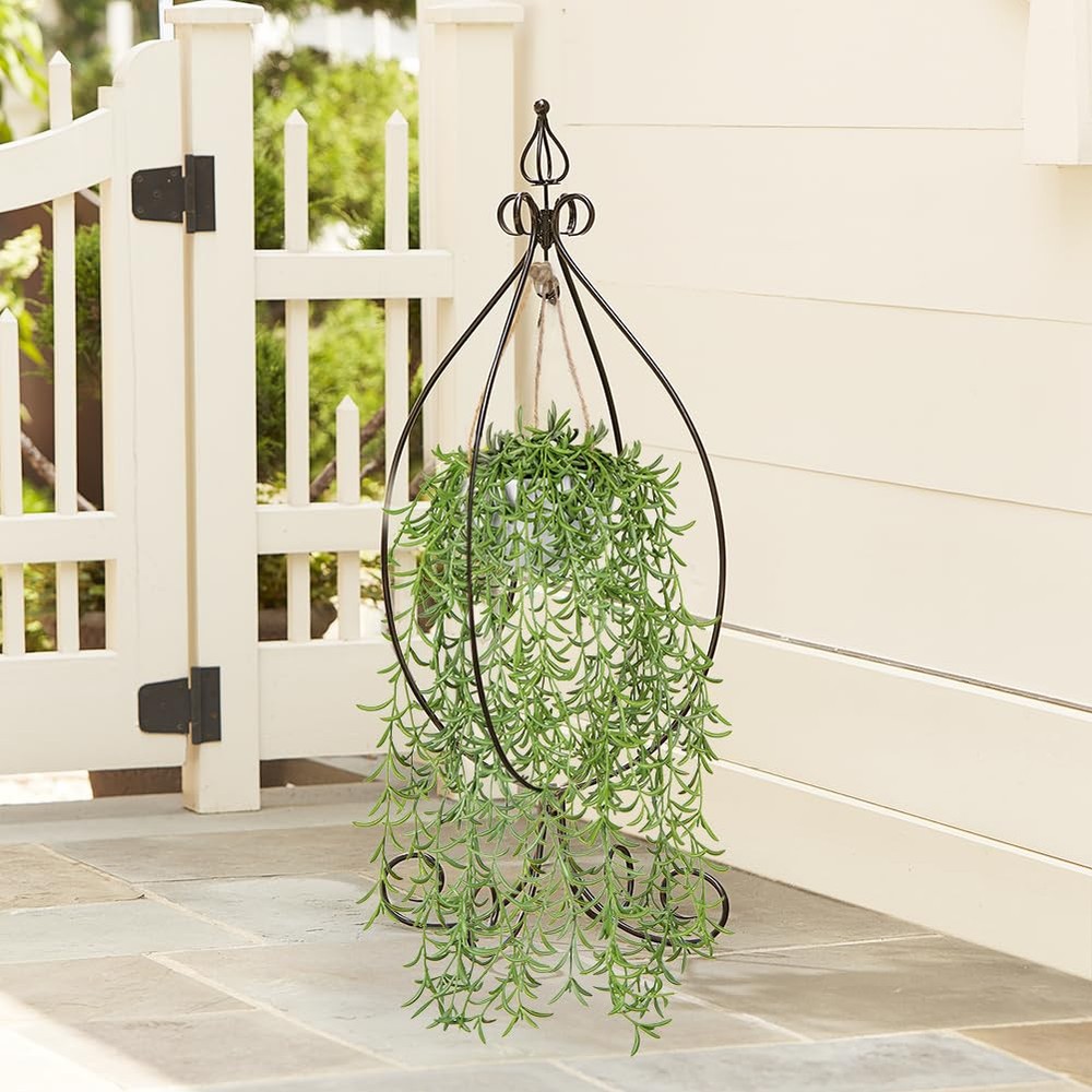 Othonna Capensis Fake Hanging Plants Artificial Decor Plants Dize: 14 in (L) Pot Size: 4.3 in (L) x 4.3 in (W) x 3 in (H) Design: Artificial Hanging Greenery + White Pot Material: Plastic/Hemp Rope/Natural Stone Package includes: 1 x Faux Hanging Plant with Pot -Made from high-quality materials that look and feel like the real thing, these hanging faux plants indoor are designed to provide a lifelike look without any of the maintenance. -Use these artificial hanging succulents plants to decorate your living room, bedroom, bathroom, or office, or add them to your porches, outdoor patio for a splash of green. Enjoy the beauty of trailing greenery without any hassle. Require much less care. You won’t have to remember to water. Survive any type of weather. Perfect compromise for pet owners. Idea for your home office hotel decor, housewarming/promotion gift. [Artificial Hanging Plants] -The hanging plant pot is 4.3"L x 4.3"W x 3"H. The hanging artificial plant measures approximately 14" tall from the bottom to the top of the pot. Vibrant green vines of varying lengths can form dense cascades, turning your space into a lush, green oasis! [Realistic Indoor Hanging Plants] -Hanging fake plant are made with high quality PE material, providing a high degree of realism that is better than other PVC material. From a distance or up close, these hanging succulents plants artificial are similar to real plants. [Stunning Home Decor] -Our hanging faux plants are suitable for indoor wall decoration, bathroom aesthetic, bedroom, party and wedding. The faux hanging plant can be hung in the living room, corridors, porches, cafes, stairs, outdoor garden house decoration. [Easy to Clean and Maintain]-Enjoy the beauty of plants life without the need for watering, fertilization, or sunlight. Fake succulents hanging plants require minimal maintenance, just wipe with a damp cloth to remove dust, and the will remain fresh and beautiful year after year. [Satisfaction Guaranteed]-Treat your home and brighten up each corner with these unique and beautiful artificial string of pearls plant with our risk-free purchase! Should you need any assistance, our helpful after-sales service center is always here for you!