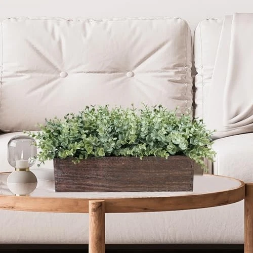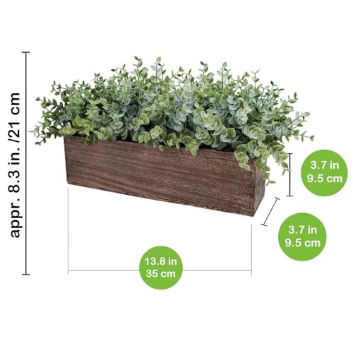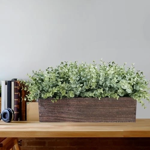Return Policy Fast Delivery Trusted seller 14" Artificial Eucalyptus in Rectangular Wood Planter Box Faux Plants Arrangement Centerpiece Wooden Potted Eucalyptus Plant for Farmhouse Wedding Dining Table Centerpiece Greenery Mantel Décor Product Description Rustic Plant Decor: Package includes 1 Pc faux eucalyptus centerpiece. The realistic-looking artificial eucalyptus plants are nestled within a charming rectangular wooden planter box, ready for display. This eucalyptus greenery centerpiece can be placed in various spots throughout your home or workspace to instantly enhance the ambiance, making your space feel more vibrant and welcoming. The Perfect Size: This faux eucalyptus arrangement is approximately 16" long, 8.3" tall, and 7.1" wide. The wooden container measures 13.8" L x 3.7"H x 3.7"D. Whether you want to add a touch of green to your dining table, enhance your kitchen counter, or bring a natural element to your sofa or coffee table, this greenery potted arrangement is a perfect choice. Vibrant Color: Artificial eucalyptus plants are in a two-tone green color with bushy, attractive foliage. The subtle dusty finish enhances their realism. The rectangular wood planter box is in a deep brown color, topped with tiny pebbles for a more authentic look. The striking contrast between the vibrant green of the eucalyptus and the rustic charm of the wood planter is a feast for the eyes. Durable Material: Crafted from high-quality plastic, this fake plant is designed to mimic the look of fresh eucalyptus without any of the upkeep. It comes pre-potted in a sturdy wooden planter that adds a rustic touch to your decor and keeps the plant securely in place. The lightweight yet sturdy design of this arrangement allows for easy movement and display in your home. Elevate your space with the timeless beauty of this faux eucalyptus plants with rustic wooden box. Perfect for home, office, apartment, or event spaces, this greenery arrangement brings a touch of nature indoors. Whether you're dressing up a counter, brightening a windowsill, or creating a focal point on a dining table, sofa tables, mantel shelf, or cabinets, it's a great choice. Suitable for your kitchen, living rooms, bathrooms, and bedrooms, making it a year-round decorative staple. Shipping Returns Payment Shipping Shipping is FREE to all addresses other than APO/PO boxes in the lower 48 states. All our stock ships from US-based warehouses. Shipped via USPS or UPS (depending on location and package weight) Unless stated otherwise, all orders will ship within 24-72 hours of your payment being processed. Check our feedback to see the great reviews of FAST shipping we offer. Returns Seller does not accept returns Payment We currently accept payment via eBay managed payments only. Once payment is cleared, we will dispatch your shipment within 1-3 business days. Please refer to the "Shipping" tab for more information regarding shipping speed to your destination.