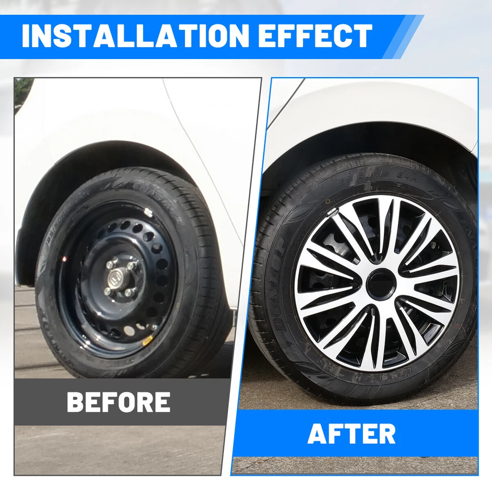 14" Black White Wheel Covers Snap On Full Hub Caps fit R14 Tire & Steel Rim 4PCS Feature: π Please ensure to check your tire/wheel size before purchase! designed for (p14) 14β stock steel wheels and will not fit over aluminum alloy wheels. π Designed from oem replica style wheelsβ for replacement with fast & easy snap-on installation - made from premium abs material β lab & road tested for performance and ultimate durability. π Adjustable retention rings assures firm grip gives support to the hubcaps making sure they stay in place. locate the curve on the retention ring and match to the tire air valve to install. π Installation instructions available - please refer to the images available as well as detailed instructions below for assistance. π Wolfx wheel covers fit most models of vehicle brands including acura, chevrolet, dodge, ford, honda, hyundai, kia, mazda, mitsubishi, nissan, subaru, toyota, volkswagen and more. Specification: Quantity: 4 PCS Material: ABS Color: White & Black Lacquer Wheel Size: 14 inch Finish: Glossy Placement on VehicleοΌFront/Left/Rear/Right Not fit for: 1991-2002 SATURN S SERIES COUPE 14 Inch Steel Wheel 1991-2002 SATURN S SERIES SEDAN/WAGON 14 Inch Steel Wheel 2000-2007 FORD FOCUS 14 Inch Steel Wheel 2000-2007 FORD FOCUS 14 Inch Spare Steel Wheel Package Includes: 4* Wheel Cover Hubcaps Payment Delivery details Terms of sales About us Contact us Payment π We accept PayPal (Recommended), credit card, VISA, Google Pay & Discover etc. π Please submit your payment within 7 days after your purchase. π If not, eBay will automatically open an Unpaid Item Dispute on our behalf if the item(s) are not paid within 7 days. Delivery details π Please double check your delivery address and contact information. π All items will be shipped within 1 business days after payment received. π Tracking numbers will be easily accessible ASAP they are created and processed. Terms of sales π Free 30 days Return, we will cover the return post fee. π If a defective product was received, please do not hesitate to message us via eBay message. π We will response in 24 hours in business to resolve the problem π We stand behind our products. Items can be returned for exchange or full refund within 30 days from the date you receive. About us π Wolfstorm has a huge warehouse and office located in the United States. π All US domestic 48 states customers are able to benefit from the FREE SHIPPING services. π Our experienced, professional customer service representatives offers prompt and courteous service. π Best quality products, outstanding services and professional experience keep our customers. Contact us π Please feel free to contact us if you have any problems. π Emails will be replied within 24 hours in working days. π After hours emails will be replied on the next business day. On Apr 16, 2025 at 22:39:33 PDT, seller added the following information: