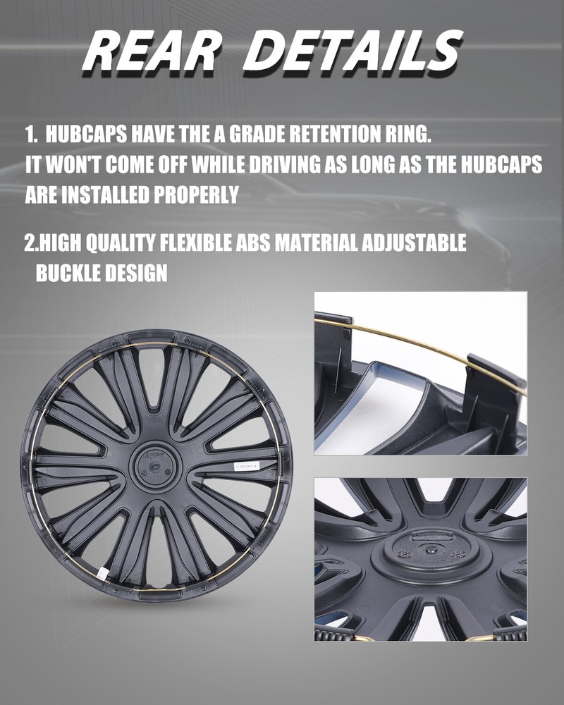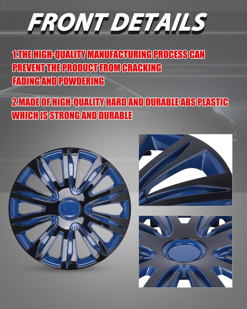 Store Categories Other Car Refrigerator Front Bumper Rear Bumper Fender Flares Inner Fenders Side Steps Running Board A-Pillar Light Mount Brackets Headlights Taillights Fog Lights LED Headlights LED Taillights LED Fog Lights Jeep Chevrolet Ford Toyota Dodge GMC About this item: 🚙Adjustable retaining rings ensure a secure grip and provide support for hubcaps, ensuring they stay in place. Find the curve on the retaining ring and install it to match the tire valve. 🚙Designed on OEM Replica Style - For Replacement with Fast & Easy Snap-on Installation - Made from Premium ABS Material - Lab & Road Tested for Performance. 🚙Wheel covers fit most models of vehicle brands including for Acura, for Chevrolet, for Dodge, for Ford, for Honda, for Hyundai, for Kia, for Mazda, for Mitsubishi, for Nissan, for Subaru, Toyota. 🚙Adjustable Retention Rings assures Firm Grip Gives Support to the Hubcaps Making Sure They Stay in Place. Locate the Curve on the Retention Ring. 🚙One (1) Set : Four (4) Pieces of hubcap are included. Specification: 🚙 Type: Hub caps 🚙 Number in Pack: 4 🚙 Color: Black Lacquer & Blue Lacquer 🚙 Material: ABS 🚙 Compatible Wheel Diameter: 14 in 🚙 Finish: Glossy 🚙 Installation Type: Snap-On 🚙 Model: Universal Hubcap for Iron Wheels Not fit for: 1997-2002 Saturn S Series Coupe 14 Inch Steel Wheel 1991-1995 Saturn S Series Sedan/Wagon 14 Inch Steel Wheel 1991-1996 Saturn S Series Coupe 14 Inch Steel Wheel 1996-2002 Saturn S Series Sedan/Wagon 14 Inch Steel Wheel 2000-2007 Ford Focus 14 Inch Steel Wheel 2000-2007 Ford Focus 14 Inch Spare Steel Wheel Package: 🚙 One set of 4 Hub caps and 4 retention rings Payment Delivery details Terms of sales About us Contact us Payment We accept PayPal, credit card , Apple Pay & Google Pay etc. Delivery details All items will be shipped within 1-3 business days after payment received, we will try our best to ship out as soon as we can, hope for your understanding. Please double confirm your address and contact information, which will help the delivery faster and more accurately. Note :buyers who purchase international products need to pay import tariffs!!! Terms of sales Professional installation is highly recommended. Any problem of the item please feel free to contact us first , please D o Not leave negative feedback before that, or simply return it within 60 Days in original condition. We will resolve it for you ASAP. About us Any questions please do not hesitate to contact us directly by eBay message . We will reply you within 24 hours asap, thanks for your understanding. Contact us Should you have any problem or require any further information please feel free to contact us . If you are satisfied with our product and service, please kindly leave us a positive feedback. Popular Categories On Mar 26, 2025 at 20:26:41 PDT, seller added the following information: