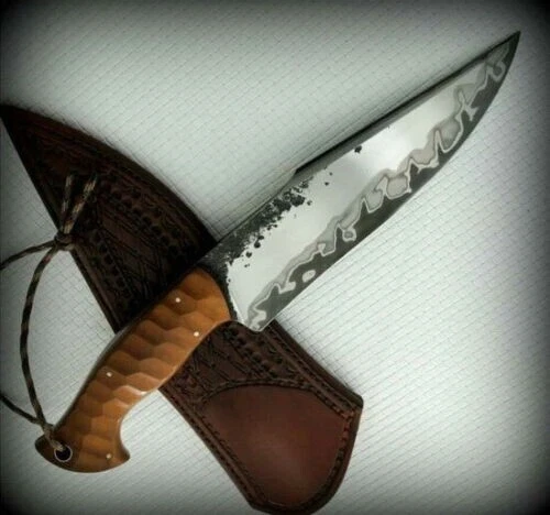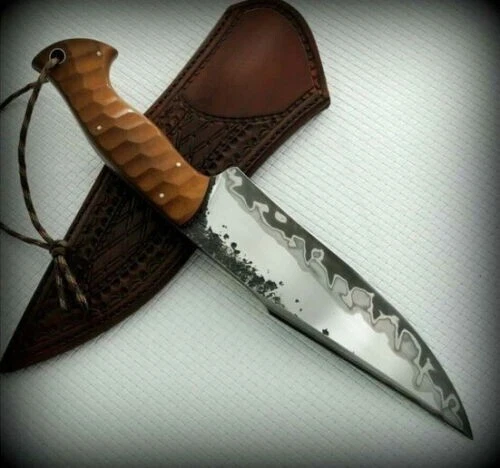 14" CUSTOM HANDMADE D2 TOOL STEEL FIXED BLADE HUNTING BOWIE WITH MICARTA HANDLE Designed & hand made by SS Collectible Blades D2 TOOL STEEL BLADE MICARTA HANDLE OVERALL LENGTH IS 14"(35.56 cm) - BLADE LENGTH IS 8"( 20.32 cm) APPROX. HANDLE LENGTH IS 6"(15.24 cm) APPROX. 4 MM THICK BLADE A WORK OF ART! What a Stunner! This gorgeous bowie knife was designed, and custom made by SS Collectible Blades. Marvelous D2 tool steel blade of the knife is the awesome. Blade was given excellent heat treatment and Rockwell hardness of the blade along its edge is 54 and along the spin is 42-45. 4 mm thick blade has fantastic hand grind . This sheath is not of universal size, but it is made custom just as this custom bowie knife. The bowie knife come with custom made genuine top quality calf skin. Which fits on bowie knife perfectly. The leather sheath is totally hand tooled and sewn. Please write to me in case of any queries. I will be at your service. Thanks. DELIVERY: WITHIN 3 TO 5 DAYS AFTER RECEIVING YOUR PAYMENT COURIER: WE ARE USING DHL first class 5-7 DAYS. REMOTE AREA CUSTOMER MUST PAY 45$ EXTRA SHIPPING AGE RESTRICTION: WE DON'T SELL KNIVES TO ANYONE WHO IS UNDER AGE 18. GUARANTEE: IF YOU ARE NOT HAPPY WITH YOUR PURCHASE, WE OFFER YOU A PEACE OF MIND GUARANTEE IF YOU RETURN THE PRODUCT WITHIN 14 WORKING DAYS. WE WILL REFUND YOUR MONEY BACK IMMEDIATELY ON RECEIVING THE KNIFE BACK IN ORIGINAL CONDITION. DELIBERATE TAMPERING WITH THE PRODUCT OR MISUSE WILL NOT QUALIFY FOR THE REFUND. SHIPPING CHARGES ARE NON-REFUNDABLE. DISCLAIMER: WHEN YOU ARE BIDDING ON THIS KNIFE YOU ARE CONFIRMING US THAT YOUR AGE QUALIFIES FOR THIS PURCHASE AND THIS IS A LEGAL PURCHASE.HAND CUSTOM KNIVES TAKES NO RESPONSIBILITY FOR ANY ILLEGAL PURCHASE. HAND CUSTOM KNIVES IS ALSO NOT RESPONSIBLE FOR INJURY, DEATH OR CRIMINAL ACTS DUE TO THE MISUSE OF OUR PRODUCTS