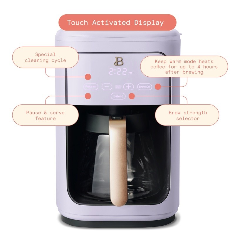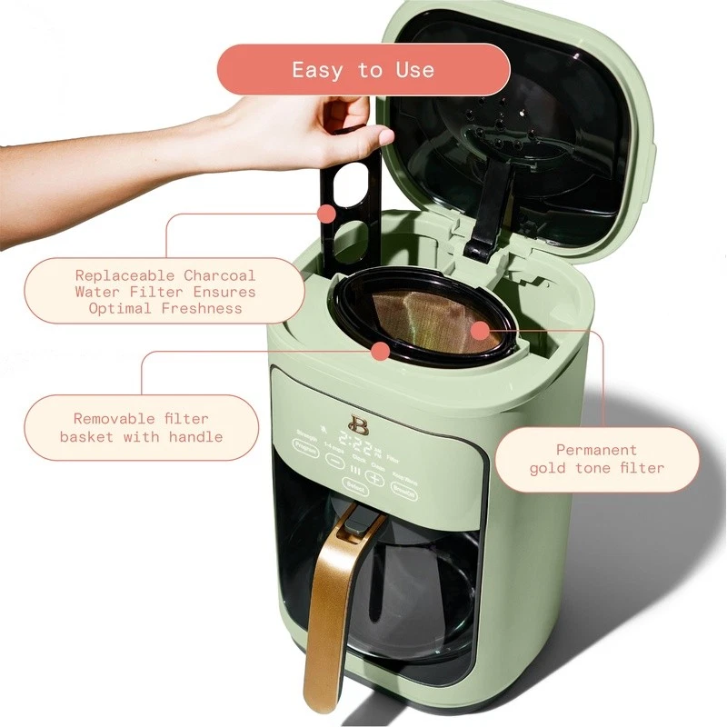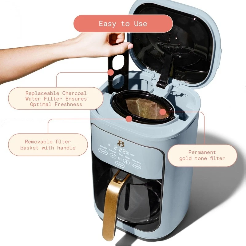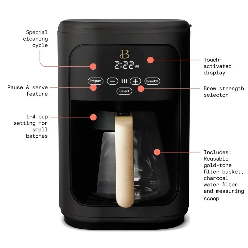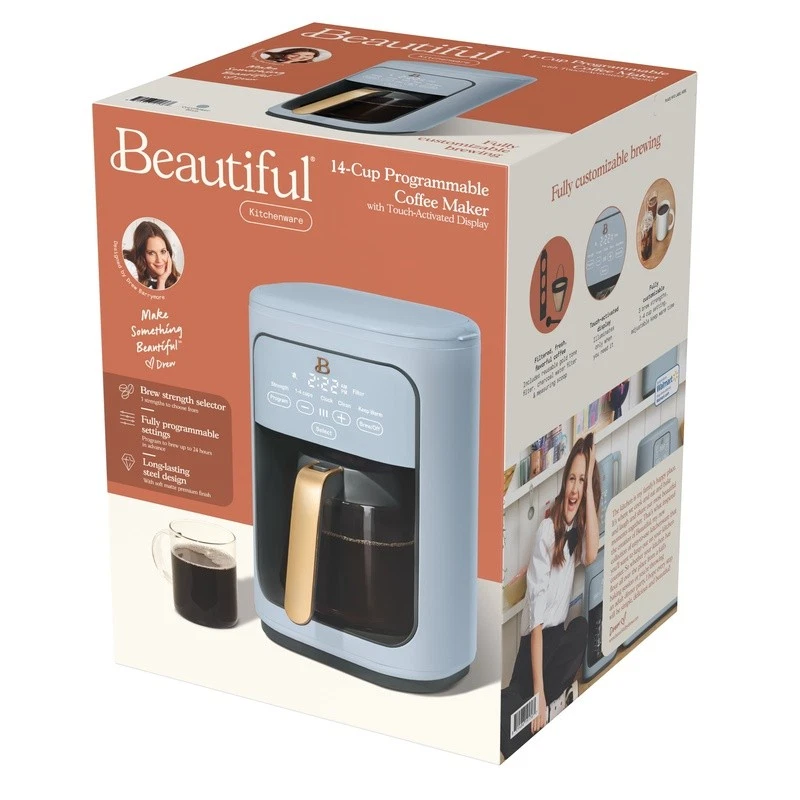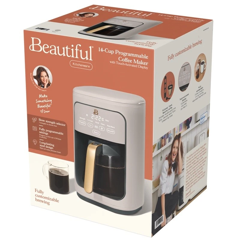 You may also like Faceted Faux Wood Table Lamp Off-White Shade Indoor Lighting Accent Piece New 51.2 USD 53.89 USD Free shipping 5% off Aluminum Framed Round Wall Mirror Lightweight Modern Durable Decorative Wall Art 43.38 USD Free shipping Foldable Rollator Walker W/ Seat Aluminum Mobility Aid Seniors & Disabled New 85.28 USD 91.87 USD Free shipping 7% off Caspian Green 12 Piece Dinnerware Set Ceramic Plates Bowls Dishwasher Safe New 76.79 USD 80.83 USD Free shipping 5% off Durable Twin Metal Bed Frame W/ Under Bed Storage Easy Assembly Heavy Duty New 102.55 USD 107.95 USD Free shipping 5% off Ultra Slim Folding Step Ladder Two Step Utility Stool Compact Design 330lb Max 64.12 USD 67.5 USD Free shipping 5% off 6ft Folding Table Portable Centerfold Sturdy Easy Storage Indoor Outdoor Use 76.61 USD 80.64 USD Free shipping 5% off Waterproof Acrylic Solid Color Coating For Decks Concrete Non-Slip Finish New 57.66 USD 60.7 USD Free shipping 5% off 5-Tier Shoe Cabinet Storage Unit W/ Doors Adjustable Shelves Entryway Closet New 99.39 USD 104.62 USD Free shipping 5% off 100 Cotton Blanket All Season Soft Breathable Herringbone Design Cozy Throw Gift 30.98 USD Free shipping Tempered Glass Console Table Sturdy Metal Frame Multifunctional Indoor Storage 84.63 USD 89.08 USD Free shipping 5% off Extra Large 20 Gallon Kitchen Trash Can Step Bin Foot Pedal Touchless Disposal 47.66 USD 50.94 USD Free shipping 6% off Delicious, flavorful coffee for your whole day. Brew 14 cups in under 14 minutes with the 14-Cup Programmable Coffee Maker with Touch-Activated Display. Thoughtfully designed, the Coffee Maker is easy to use with a soft-glow display that illuminates only when you need it. Created by Drew Barrymore, Kitchenware combines elegant design and contemporary colors for high-performance appliances that look beautiful on your kitchen counter. Condition: new. Made with long-lasting steel accents featuring a premium soft matte finish A powerful 1200-watt system brews extra hot coffee without compromising flavor Programmable up to 24 hours in advance for coffee that's ready when you are Customizable brew strength with regular, gourmet, and bold options Dishwasher-safe, borosilicate glass carafe with a no-drip, perfect-pour spout Brew smaller batches with full-bodied, 10-cup taste using the 1-4 cup feature Replaceable charcoal water filter ensures optimal freshness The special cleaning cycle extends product life while optimizing flavor An ergonomic handle adds comfort and ease Adjustable automatic shut-off feature increases safety with settings from 30 minutes to 4 hours Convenient keep warm mode heats coffee for up to 4 hours after brewing No-wait pause and serve feature enables pouring while brewing Nonstick, stain-resistant warming plate Condition: new Includes: Reusable gold filter basket Charcoal water filter Measuring scoop You may also like Queen Raised Air Mattress W/ Built-in Pump Headboard Portable Comfort Sleep New 105.89 USD 137.6 USD Free shipping 23% off Collapsible Rolling Cart W/ Adjustable Handle Magnetic Lid & 360° Wheels New 14.52 USD 15.28 USD Free shipping 5% off Stylish Two-Tier Nightstand Wooden Bedside Table W/ Rattan Drawer Storage New 49.99 USD 53.99 USD Free shipping 7% off Electric Coffee Percolator 12 CUP Coffee Pot Stainless Steel Auto Keep Warm New 63.46 USD 66.8 USD Free shipping 5% off Heavy-Duty Stackable Plastic Storage Bins W/ Lids Garage Tools Organization New 24.1 USD 25.37 USD Free shipping 5% off Cast Iron 44 Lbs Kettlebell Non Slip Handle Weight Training Strength Set New 37.47 USD 39.44 USD Free shipping 5% off Sturdy Flat Weight Bench Home Gym Strength Training Upper Body Workouts New 52.49 USD 56.68 USD Free shipping 7% off Heavy Duty Weatherproof Mailbox W/ Key Lock Large Capacity Wall Mount Design New 39.2 USD 41.26 USD Free shipping 5% off Dovetail Sight Pusher Tool Glock Sig Sauer H&K S&W Handgun Adjustments New 27.44 USD 28.88 USD Free shipping 5% off Locking Security Mailbox USPS Approved Anti-Theft Parcel Drop Steel Construction 134.08 USD 141.14 USD Free shipping 5% off Adjustable Gaming Chair W/ Flip-Up Armrests & Comfortable Lumbar Support New 130.95 USD 164.9 USD Free shipping 21% off Whole Kernel Corn Canned Vegetables Pack of 4 Non-GMO Shelf-Stable Ready to Use 9.94 USD 11.14 USD Free shipping 11% off