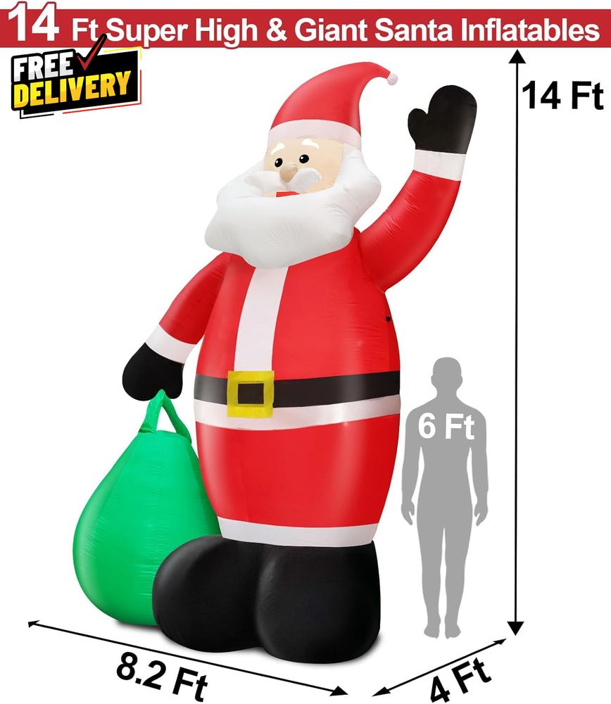 Store New Arrivals Add to Favorite View Feedback Contact 14 Feet Giant Christmas Inflatable Decorations Outdoor Santa Claus with Gift Bag Description 14 Ft Giant Size Christmas Inflatable Santa Claus: 14 Ft tall Giant Size inflatable Santa Claus holds a green gift bag in his left hand and waves his right hand to guests. Christmas decorations for outdoor 5 Bright Built-in LED Lights: With 5 super bright built-in LED light, this Christmas inflatables will lit up your outdoor yard in the evening during holiday season, brings a glowing nighttime display Simple Installation: The Xmas inflatable equipped with 2.5A built-in blower and 12V power adapter. It will fully inflated in a moment after plugging in. And come with a zipper is designed in the bottom of the inflatable to deflate for quick storage Firmly Fixed on the Ground: Set includes a 14Ft Tall inflatable, 15 plastic ground stakes, 4 sand bags, 1 rope, 1 plug and built-in fan. You need to fill the sand bags with sand , and put them into inflatable, stakes and rope will firmly fix the inflatable on the ground and keep it stable Christmas Outdoor Decorations: It is made of waterproof polyester, durable to use. A festive addition on your Christmas outdoor yard decorations, doorway, lawn, garden, Christmas decorations for the home party, etc Item model number SAN-264-US1-1 Item dimensions L x W x H 1 x 1 x 1 inches Color Santa Material Plastic, Polyester Light Color Cool White Style Santa Claus Item Weight 6.01 pounds Theme Christmas Occasion Christmas Special Feature Lighted Product Dimensions 1 x 1 x 1 inches Cartoon Character Santa Claus ABOUT US Prior to making any purchase from our store, we’d like to introduce ourselves. My name is Shahzad Yaqub , and I am the proud owner of Epic Emporium Deals , located in the great state of Illinois, USA. I have been an active and trusted eBay seller since Jan 14, 2025 . At Epic Emporium Deals , we are committed to offering competitive prices and top-quality products . Our extensive collection features a wide variety of items, including media such as books, movies, music, and games , as well as electronics, toys, sporting apparel, clothing, tools , and general home and garden essentials —and much more! If you have any questions or require assistance, please don’t hesitate to reach out. Your satisfaction is our priority, and we look forward to providing you with an exceptional shopping experience. SHIPPING We are always working hard to ensure your package arrives as soon as possible. Please understand that some factors like weather, high postal traffic, and the performance of shipping companies are outside of our control. We offer free shipping to the lower 48 states and ship within 2 business days of payment, usually sooner. We do not accept P.O. Boxes. Please provide a physical address. For shipping outside of the continental USA, we only use eBay's Global Shipping Program. The item is shipped to IL and then sent to the rest of the world. International customers are responsible for all duties and taxes. Continue to 'check out' to calculate costs for shipping the item to your country. Messages regarding eBay's Global Shipping Program MUST be directed at eBay EXCLUSIVELY. RETURNS We do not accept returns under normal circumstances. However, we will gladly consider a return if the item is received broken or if the wrong size is sent to you. In all other cases, returns will not be accepted. CUSTOMER SATISFACTION We try our very best to make sure every customer is completely satisfied. If there's a problem, message us! We're happy to help.