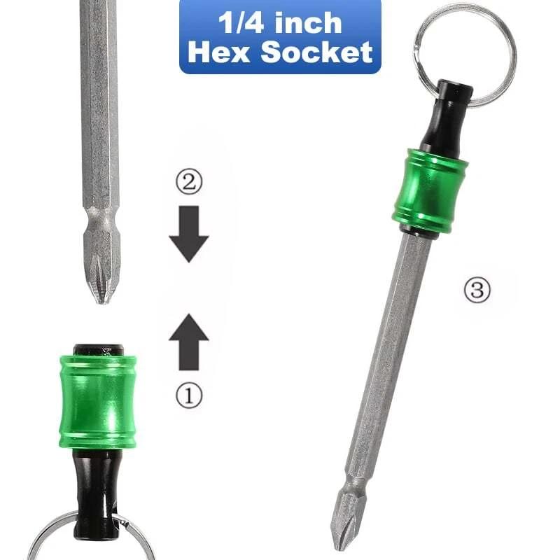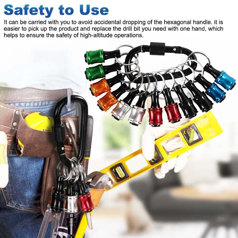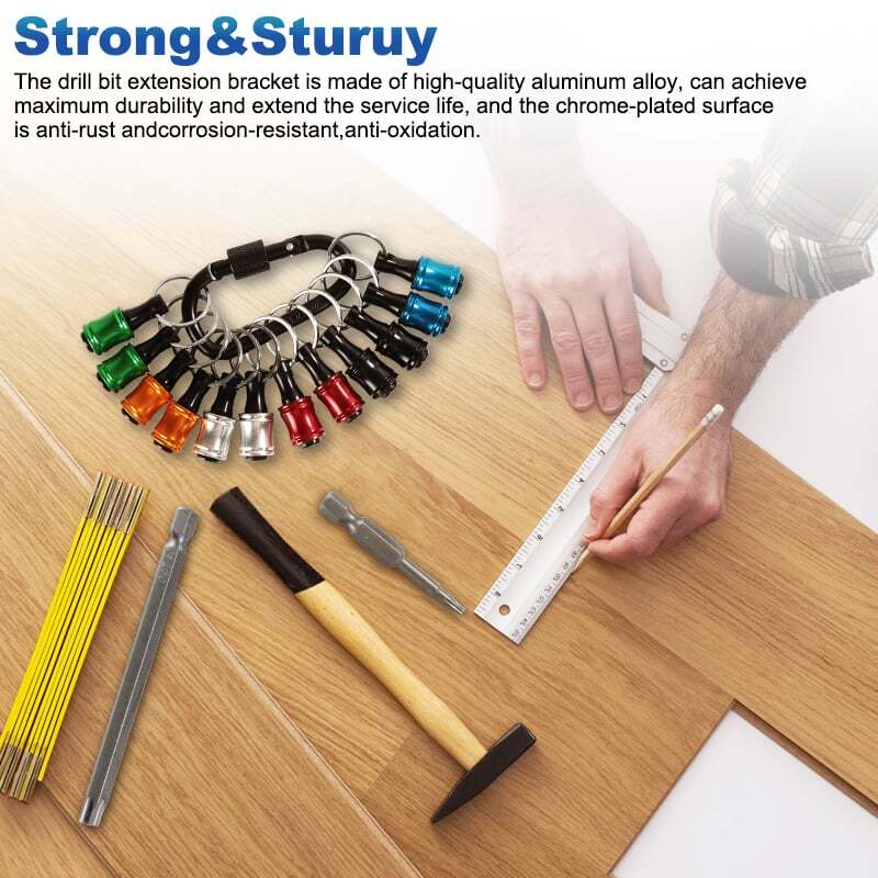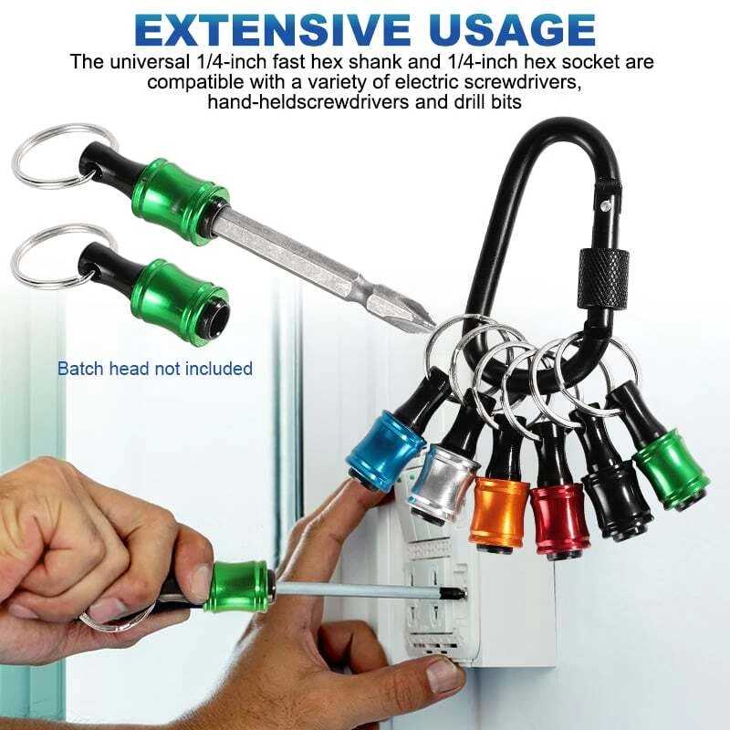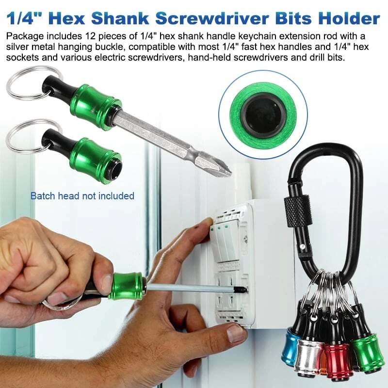 Product D escription 14/28PCS 1/4" H ex H andle Q uick R elease K eychain S crewdriver D rill H older S et Product Characteristics High Q uality I ndustrial G rade M aterials: This extension rod is made of high quality aluminum alloy and is durable. Easy T o U se: The keychain features a flat, thick, rounded design that makes it easy to pick up and replace screwdriver bits with one hand. Smooth surface processing and key chain can avoid the accidental drop of tools, easy to work at altitude. The powerful ball lock can carry tools weighing around 500G. Easy T o C arry: Small and portable, easy to carry. The product comes with a chain link, which can be hung on the belt. The large diameter flat ring is easy to install on the chain link. You can use your favorite chain keychain according to your needs. Strong C ompatibility: Expand a variety of screwdriver bits, screwdriver bit conversion purpose universal 1/4" hex shank head, suitable for most electric drives, hand-held drives and screwdriver bits. It is suitable for the connection of screwdriver drill, screwdriver, batch and so on. Product Specification Status: 100% Brand New Material: Aluminum A lloy Aperture: 1/4" (6.35mm) Quantity: 12PCS Package Included 12/24 PCS S crewdriver E xtension R od 2/4PCS K ey C hain Attention P lease 1. Please allow manual measurement error of 1-5mm. Make sure you don't mind before you buy. 2. Due to lighting effects, brightness contrast Settings of the display, etc., there may be some slight differences in the hue of the picture and the actual item, please make sure you don't mind.