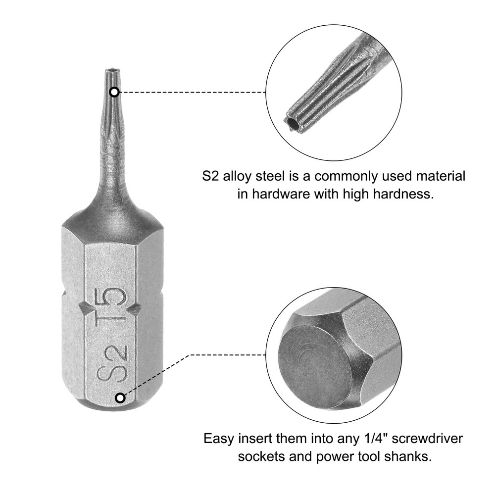 1/4 Inch Magnetic Torx T5 Screwdriver Bits S2 Steel 10pcs