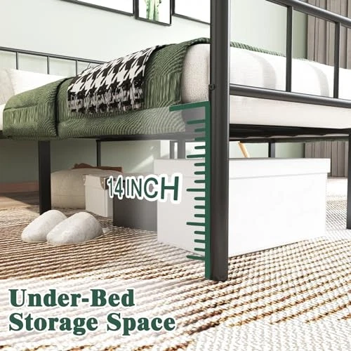 14 Inch Size Bed Frames with Headboard/Footboard, Under California King Black