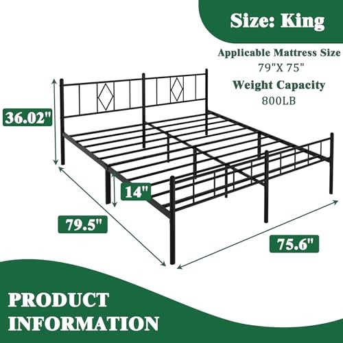 Type: Does Not Apply Manufacturer: Does Not Apply UPC: 850068735563 Special Feature: Squeak Resistant EAN: Does Not Apply Frame Material: Does Not Apply Item Length: 1 Assembly Required: Yes Compatible Mattress Size: Does Not Apply gtin13: Does Not Apply Included Components: Headboard Finish Type: Powder Coated Date First Available: March 1, 2024 Size: California King Item Weight: 47.4 pounds Product Dimensions: 83.5"L x 71.5"W x 14"H Brand: Does Not Apply Color: Black Customer Reviews: 4.6 out of 5 stars Item Height: 1 MPN: Does Not Apply Item Width: 1 Form Factor: California King size, 14 inch high bed frame with a headboard Compatible With Mattress Size: California King