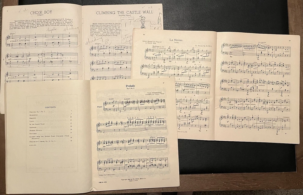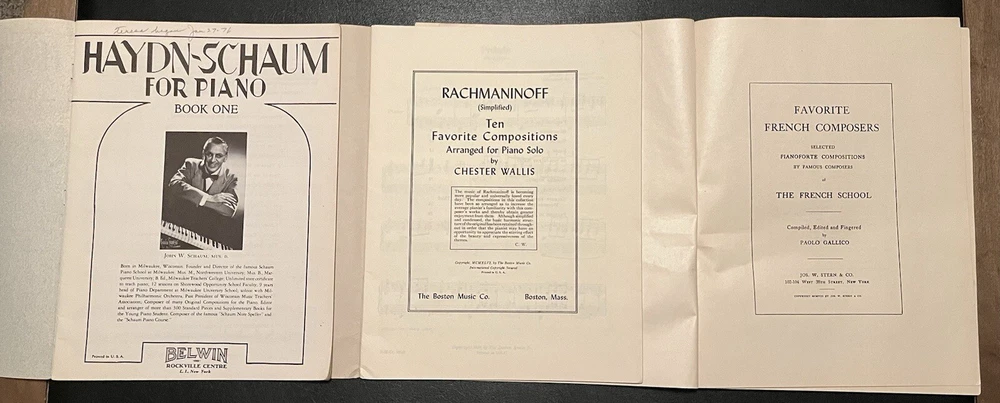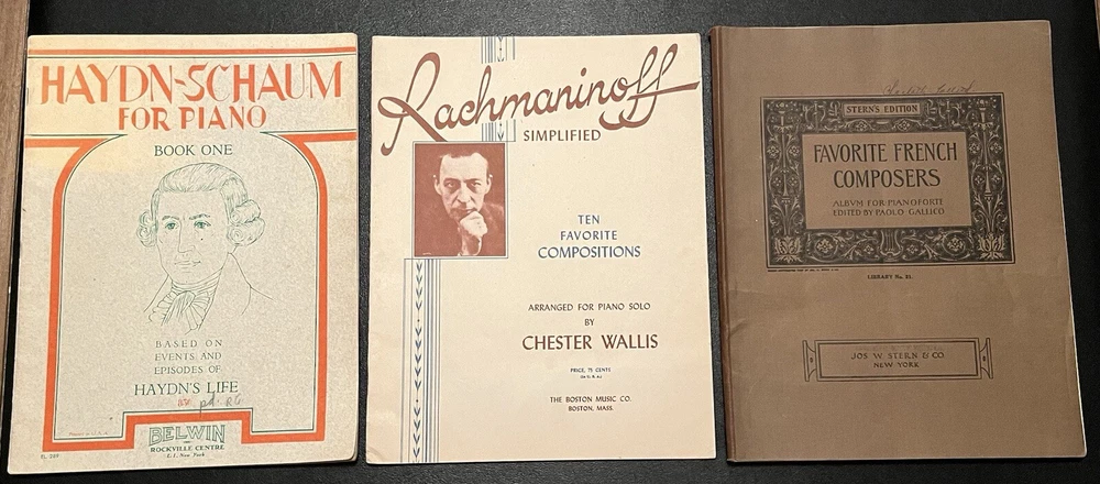 I am not able to combine shipping for this lot. * All sheet music listed for sale is the last of my Mom’s sheet music collection. Anything that doesn’t sell by November 30th will be donated. If you see anything you’d like to have please let me know. This listing is for 30+ various sheet music albums from classical composers. You will receive the following: - Edition Peters, No 1904, Chopin Nocturnes, 1910, Intact with markings & tape - Edition Wood, No 434, McIntyre, Ten Melodies from Song Land, 1916, intact with writing & tape - Edition Wood, No 622, Kearns, Six Recreations, 1911, intact, very good condition with no markings inside - Tschaikowsky, Nutcracker Suite, no date, cover detached, intact with markings - Artists Album of European Gems, Royal Music Library, No 10 - Fritz Kreisler Favorite Encore Folio - Operatic Selections for Violin & Piano by Sep. Winner. dated 1895, intact with no missing pages or markings (other than the red stain shown on two pages), although the outside of the book does show some wear - Venezia, Ethelbert Nevin - In Arcady by Ethelbert Nevin - Kalmus Orchestra Scores, No 18, Anton Dvorak, Symphony No 5 Op 95, no date, intact, very good condition with no markings - Kalmus Piano Series, No 3259, Johannes Brahms, Piano Pieces, Op 119, no date, intact with no markings inside but taped - Kalmus String Series, Scriabine, Eight Etudes for Piano Solo, no date, intact, very good condition with no markings - Haydn-Schaum for Piano, Book One, 1947, intact with markings - Liebeslieder Walzer, Joh Brahms - J.S. Bach, Inventions & Sinfonias, Alfred Masterwork Edition, 1991, intact with markings - Movements from Mass in D Minor, J.S. Bach, no date, intact, very good condition with no markings - Leybach, Pianoforte, Celebrated Compositions by J. Leybach, 1897, binding separating, some water damage, intact with no markings - Original Kompositionen, W.A. Mozart, Leipzig, C.F. Peters, no date, cover torn, some pages detached, intact with no markings - Rachmaninoff, Ten Favorite Compositions, 1946, intact, very good with no markings - Stern’s Edition, Favorite French Composers, No 21, 1907, intact with some markings - Trois Etudes De Concert for Piano Solo, Kalmus Piano Series 3628, no date, staining on first few pages, no pen/pencil markings on inside, complete - Recital Pieces - The Tunes Dad Whistled, Baldwin Piano Co, 1921, no markings - Ultra Modern Library, Collection of P.I. Tschaikowsky Piano Compositions, No 56, 1942, intact, very good condition with no markings - Franz Liszt Original Works and Transcriptions for the Piano, Valse de l’Opera Faust de Gounod, G. Schirmer, date? cover taped, has pencil markings, complete - Myra Hess Album, Piano Solo, Boosey and Hawkes, 1918, binding shows wear, no markings inside - Anthology of American Song, Low Voice, G Schirmer, 1911, cover separated, has markings inside - Perry's Musical Magazine, Vol 29 No 5, August 1910, some markings inside - Perry's Musical Magazine, Vol 29 No 6, September 1910, good condition with no markings inside - Perry's Musical Magazine, Vol 34 No 12, March 1916, cover detached, no markings inside - Perry's Musical Magazine, 45th year No 6, September 1926, cover detached, no markings inside - Perry's Musical Magazine, July 1936 No 4, cover and back torn, some pages stuck together, shows wear Total weight: 14+ pounds