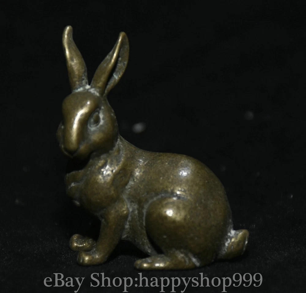 1.4" Old Chinese dynasty Brass Copper 12 Zodiac Year Rabbit Sculpture statue