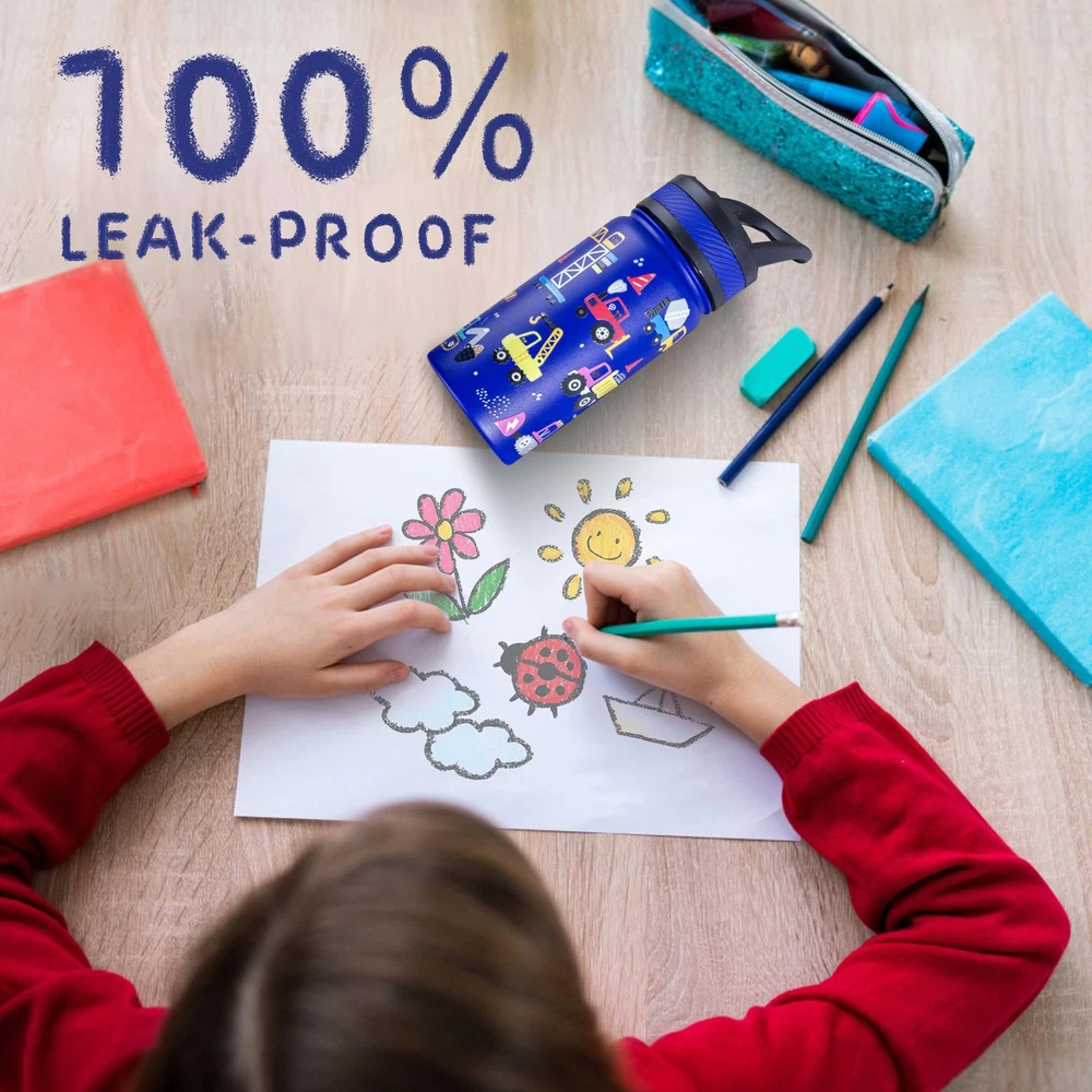 Insulated Stainless Steel Water Bottle: insulated water bottle is made of 18/8 stainless steel, rust-proof and BPA-free to ensure safety. Double-walled stainless steel, keeps water cold for up to 12 hours. Leak-proof Straw Lid Design: Equipped with a leak-proof straw lid, it will not leak even if the bottle is placed horizontally. The lid is equipped with a wide handle for easy carrying and removal from backpacks. Portable and Durable: The water bottle is designed to fit into a backpack, sports bag or travel bag. The wide mouth design is convenient for adding ice cubes and fruits, easy to clean, perfect for busy family life. Fun and Attractive Designs: Available in a variety of colors and patterns, sleek look, long-lasting colors that won't fade or emit harmful fumes, designs that are fun and attention-grabbing and encourage them to stay hydrated. After-sales Service: Provide you with and high-quality . If you have any questions, please us within year and we will provide a satisfactory solution.