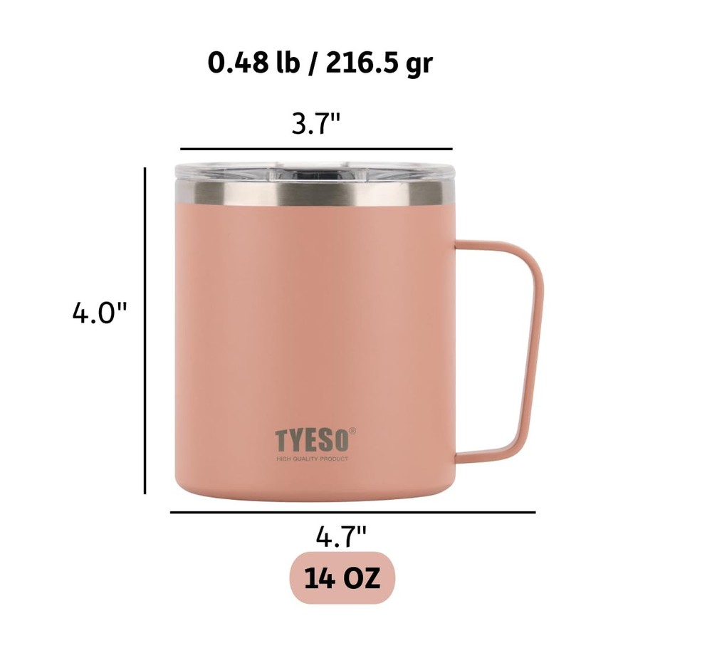This 14 oz stainless steel insulated coffee mug is designed with premium double-wall vacuum insulation to keep drinks hot or cold for extended periods. Whether you're sipping coffee at your desk or enjoying iced tea on the go, this thermal travel mug delivers long-lasting performance and temperature control. This thermal cup is crafted from food-grade, BPA-free stainless steel , it’s durable, rust-resistant, and dishwasher-safe for easy cleaning . The comfortable wide handle offers a secure grip, while the splash-resistant slider lid helps prevent spills — perfect for commuting, outdoor use, or everyday convenience. Ideal for coffee lovers, commuters, campers, or anyone in need of a dependable, eco-friendly mug. Use it at home, in the office, or on the trail. ✅ 14 oz capacity ✅ Travel-friendly and lightweight ✅ The pink mug is a great gift option for women PREMIUM INSULATED STAINLESS STEEL — Crafted from durable, high-grade stainless steel with double-wall insulation, this 14 oz thermal coffee mug keeps your drinks at their ideal temperature for longer, whether hot or cold, ensuring a perfect sip every time. COMFORTABLE HANDLE & SLIDER LID — Our insulated coffee mug features a sturdy, ergonomic handle for easy carrying and a practical slider lid to help minimize spills while on the go or at your desk. EASY CLEAN & DISHWASHER SAFE — This stainless steel travel cup is not only effortless to clean thanks to its design but is also completely dishwasher safe, saving you time and effort. BPA-FREE & VERSATILE USE — Crafted from safe, BPA-Free materials for your peace of mind, ensuring every sip is healthy. Perfect for coffee at home, tea at the office, or cold drinks on the go. THE PERFECT GIFT FOR ANYONE — A stylish and practical choice for coffee and tea lovers, making it an ideal gift for co-workers, travelers, or any special occasion.