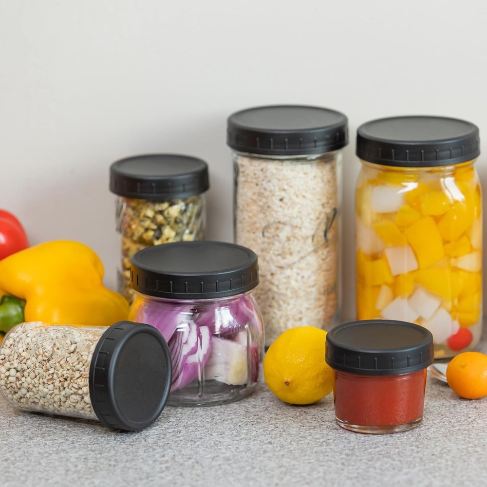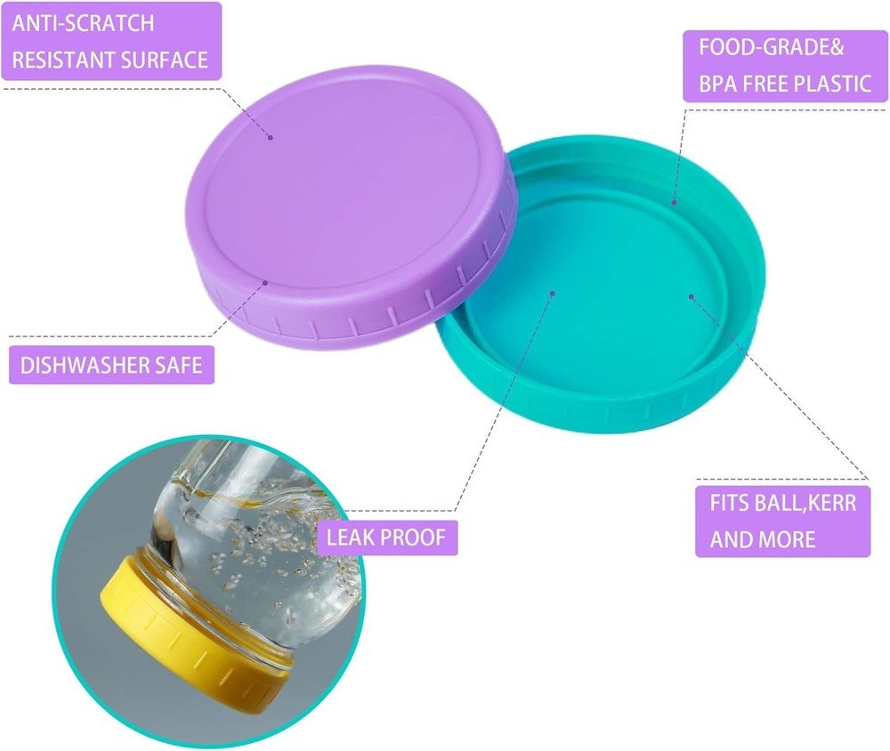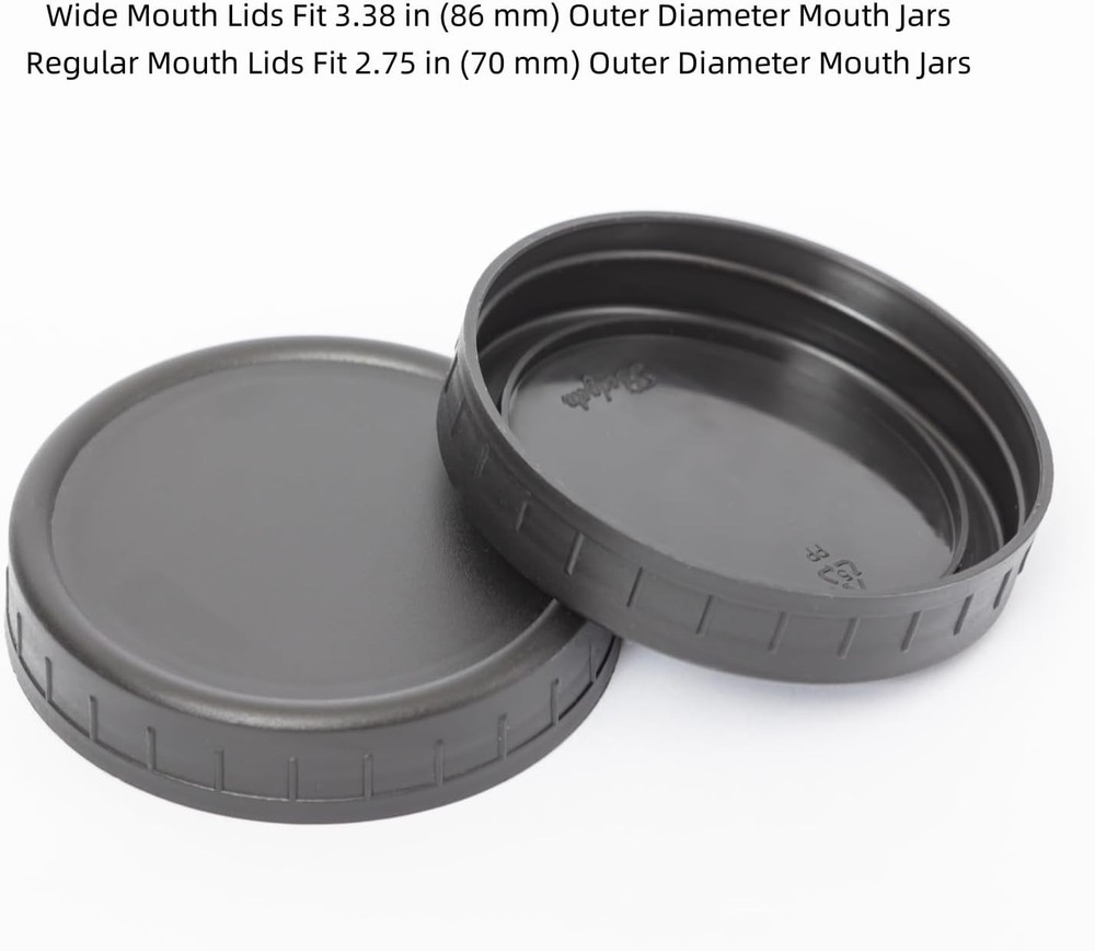 14 Pack Black Plastic Mason Jar Lids with Silicone Rings, 7 Wide Mouth Product Details Material: Polypropylene, Silicone Color: Black Brand: Bedgeta Style: Bedgeta-23 Item Weight: 0.3 Kilograms Shape: Round Number of Pieces: 14 Is Dishwasher Safe: Yes Is Microwaveable: Yes Manufacturer: Bedgeta Part Number: Bedgeta-23 Item Weight: 10.5 ounces Package Dimensions: 7.13 x 3.94 x 3.7 inches Item model number: Bedgeta-23 Included Components: 7 Black Regular Mouth Mason Jar Lids, 7 Black Wide Mouth Mason Jar Lids Batteries Included?: No Batteries Required?: No Material: Polypropylene, Silicone Color: Black Brand: Bedgeta Style: Bedgeta-23 Item Weight: 0.3 Kilograms 【Package Included】: 7 black wide mouth plastic mason jar lids , suitable for all kinds of 3.38 inch (86mm) outer diameter mason jars. 7 black regular mouth plastic mason jar lids to fit any 2.75 inch (70mm) OD mason jars. 【Upgraded Lid】: We have increased the weight of the lid, the lid is thicker, more textured and more durable than ordinary lids. 【Safe material】: The lid is made of food-grade PP material, and the silicone ring is also food-grade. BPA free, no rust, safe and reliable. Can be reused. 【Ingenious design】: A ring is added inside the cover, which has a good leak-proof effect, and can fix the silicone ring at the same time, and the leak-proof effect is better after using the silicone ring. The silicone ring is detachable, easy to use and easy to clean. 【Wide range of uses】: These plastic jar lids are suitable for BALL, KERR, wide mouth and regular mouth jars of various brands, you can use them to hold cereals, candies, fruits, pickles, salads, milk and smoothies, etc.
