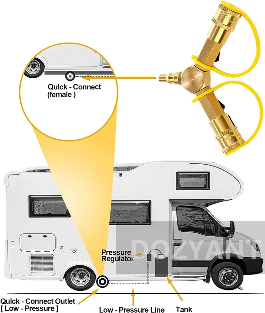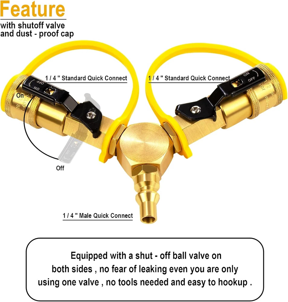 Store New Arrivals Add to Favorite View Feedback Contact 1/4" RV Propane Quick Connect Y Splitter Adapter with Shutoff Valve for RV Trailer and Quick Connect Propane Hose Connect to Motorhome Tabletop Grill, 2 Way 1/4 Inch Quick Disconnect Kit Description Item Weight 7.2 ounces Color With Shut Off Valve Product Dimensions 5.1 x 2.3 x 5 inches Is Discontinued By Manufacturer No RV Propane Quick Connect Y-Splitter: One of 1/4" male quick connect x two of 1/4" standard quick connect with dust proof cap, allows work with two appliance at the same time. The 2 way RV propane quick y connect fittings design to install easily, no tools needed and easy to hookup. perfect for for using to low pressure propane supply on RV or trailer, good choice for gas grills, heaters, motorhome BBQ, smokers, camping stoves, flashlights, turkey fryers, and other propane appliances. Propane quick connect splitter equipped with a shut-off ball valve on both female sides, no fear of leaking even you are only using one female connect. This propane 2 way propane adapter made of solid brass for durability and reliability, allows you to connect two propane quick connect hoses on RV's tabletop gas grill Designed for use with your RV’s low pressure system Two of 1/4" standard quick connect x one of 1/4" male quick connect. Use with your RV or trailer. Allows you to connect two of quick connect hose with 1/4” male quick connect. Works for two appliances at the same time. Used for RV mounted BBQ tabletop gas grill. ABOUT US We offer the best prices around on high quality products. Our E-store includes media such as books, movies, music and games while offering electronics, toys, sporting apparel, clothing, tools, general home, garden items and more. SHIPPING We are always working hard to ensure your package arrives as soon as possible. Please understand that some factors like weather, high postal traffic, and the performance of shipping companies are outside of our control. We offer free shipping to the lower 48 states and ship within 2 business days of payment, usually sooner. We do not accept P.O. Boxes. Please provide a physical address. For shipping outside of the continental USA, we only use eBay's Global Shipping Program.The item is shipped to KY and then sent to the rest of the world. International customers are responsible for all duties and taxes. Continue to check out in order to calculate costs for shipping the item to your country. Messages regarding eBay's Global Shipping Program MUST be directed at eBay EXCLUSIVELY. RETURNS We offer a 30-Day Return Policy on items which you are not completely satisfied with. You have the option for a full-refund or an exchange of the item. No returns are available on items shipped outside of the USA. PAYMENT We accept PayPal. CONTACT US This page content is yet to come Please ad us to your favorite seller and visit again later Thank You CUSTOMER SATISFACTION We try our very best to make sure every customer is completely satisfied. If there's a problem, message us! We're happy to help. WE ACCEPT Copyright © 2021 AutoDS. | All Rights Reserved
