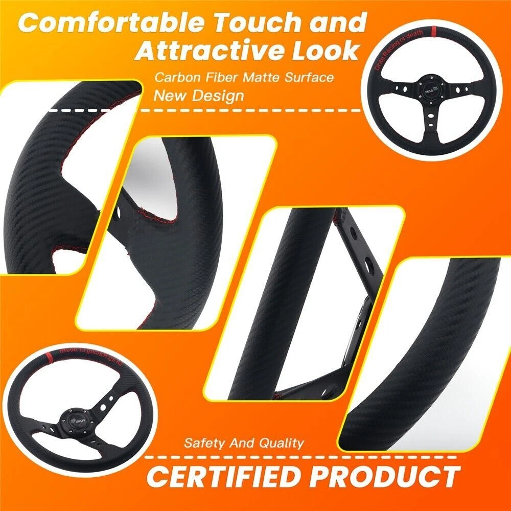 DESCRIPTION - Racing Steering Wheel: This 345mm deep dish drifting Steering Wheel is new design, it is made of Aluminum with nice workmanship stitching. Material: Aluminum Diameter: 13.58 inch (around 345mm) Style: Racing style DESCRIPTION - Quick Release Hub Adapter: Fitment: Universal fit for Most Vehicles Feature: 100% Brand new & Never used. Material: High quality aluminum Ball-Lock type mechanism for best locking fit and usability Fast detach allows steering wheel to be removed quickly Push-pin security feature prevents premature unlocking Compatible with 6-hole steering wheel hub kit Package included: 1 x Steering Wheel 1x Quick release HUB Adapter Kit(As Pictures) Note:Because of the long distance transportation, the packing box may be damaged. Please don't buy it if you mind. All items are Brand New unless stated otherwise on the listing. We sell DIY (Do It Yourself) Items with a few exceptions. We take no responsibility in teaching you how to install. Professional installation is strongly recommended. Shipping Information We will only ship this item to buyers by Normal Mail, please confirm your address is correct, and if you want to change the delivery address, just feel free to contact us when you purchase. Usually, we will ship the orders out and upload the tracking number within 1-2 business days(Monday to Friday from 8:300am-5:30pm) after you complete the payment. NOTE: If there is any CUSTOM DUTIES, LOCATL TAXES OR ANY OTHER IMPORTATION FEES, buyer will bear these costs. Each country has different customs tax threshold, so you need know your country's tax policy. Payment Information We only accept eBay Payment and other payments through eBay Credit Cards processed by eBay. Return Policy 100% Satisfaction Guarantee, "Period" !PLEASE CONTACT us with ANY Concerns. We offer not less than 30 days for return and refund policies. If you receive the items that have any quality problems or damaged, please feel free to let us know and provide the photos, we will resend it or refund you. But we will not accept the return if the item damaged by the buyer’s operational errors.Return shipping cost is to be paid by the Buyer. Contact Us For any reason you want to contact us,We aim at satisfying every visitor, no matter what kind of situation you meet with, we will be right here to serve you. Please contact our team. If you are happy with the transaction with us, leaving us an ALL-5-STAR positive feedback would be greatly appreciated. Have a good shopping. SHIPPING INFORMATION PAYMENT WARRANTY ABOUT US CONTACT US SHIPPING INFORMATION We will only ship this item to buyers by Normal Mail, please confirm your address is correct, and if you want to change the delivery address, just feel free to contact us when you purchase. Usually, we will ship the orders out and upload the tracking number within 1-2 business days(Monday to Saturday from 8:30am-5:30pm) after you complete the payment. PAYMENT We will only accept eBay payment. Please pay using eBay payment ONLY within 7 days from the date of transaction be made. WARRANTY Please inspect your order upon receipt.No damage claims will be honored after 14 days of delivery. All item we sold come with 90 days defective warranty from the date. ABOUT US We are a powerful factory producing auto parts,and we have a professional sales and after-sales team that can provide you with excellent products and services. CONTACT US For any reason you want to contact us,We aim at satisfying every visitor, no matter what kind of situation you meet with, we will be right here to serve you. Please contact our team. If you are happy with the transaction with us, leaving us an ALL-5-STAR positive feedback would be greatly appreciated. Have a good shopping.