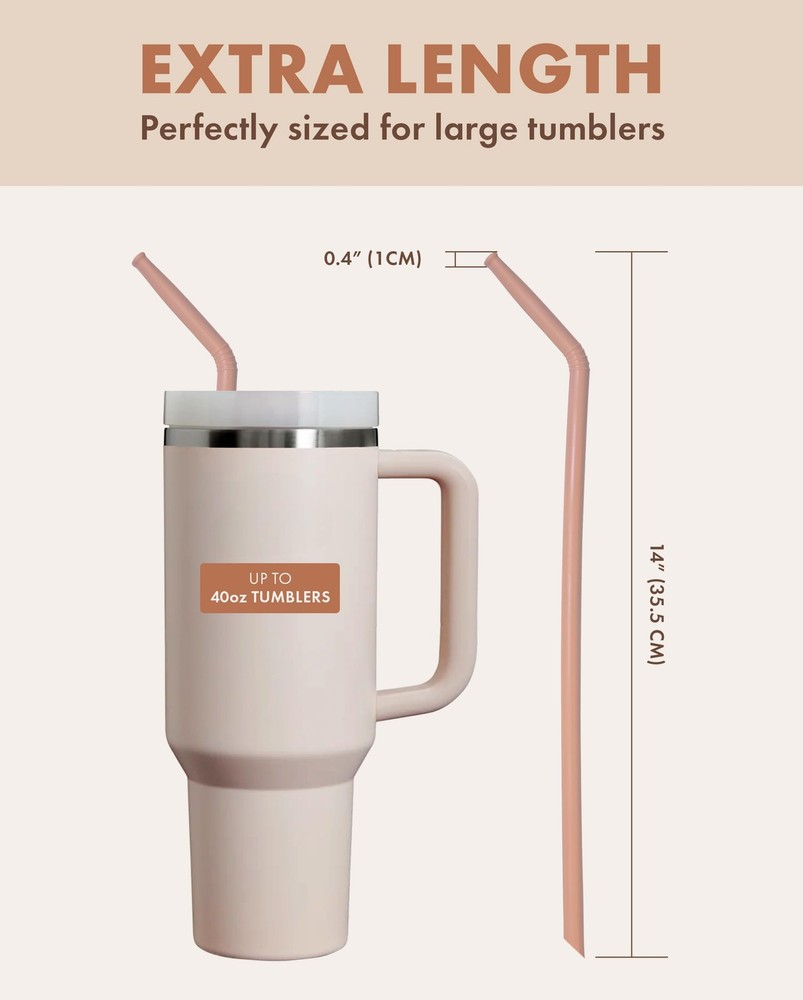 fit taller tumblers like the Stanley 40 oz, so you can sip comfortably without tilting your cup. The soft silicone feels great and won’t scratch your drinkware. Love that they come with a handy cleaner—makes maintenance a breeze! Durable, flexible, and leak-proof, these straws are a game-changer for iced coffee, smoothies, or water. A must-have upgrade for any tumbler fan!