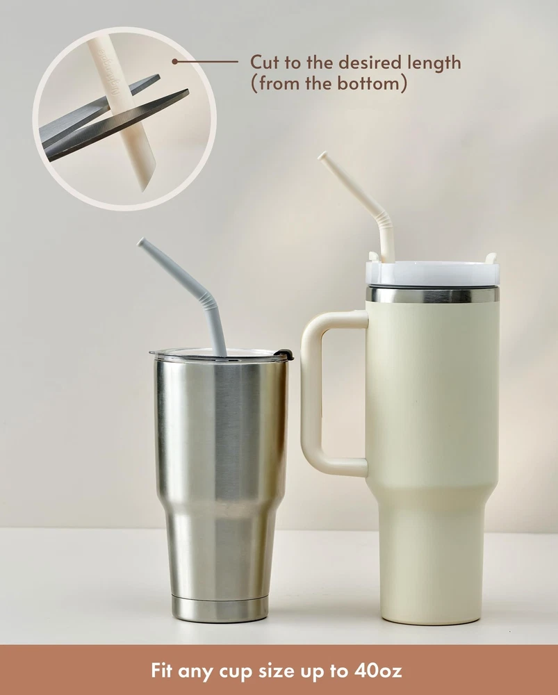 Elevate Your Sipping Experience with Our Premium Silicone Tumbler Straws Say hello to the perfect companion for your favorite 30 or 40 oz tumbler! Our extra-long silicone straws are designed to enhance your hydration experience, whether you're using a Stanley cup, hydration tumbler, or travel tumbler at home, in the gym, or on the go. What's in the Pack? 6 reusable silicone tumbler straws 1 convenient straw cleaner Why Choose Our Tumbler Straws? Perfectly Sized: These Stanley straws 40 oz are specially crafted to reach the bottom of your 40oz tumblers, including popular brands like Stanley. No more tilting or struggling to get that last sip from your workout water bottle! Eco-Friendly: Made from durable, food-grade silicone, our reusable tumbler straws are a sustainable alternative to single-use plastic straws. Join the movement towards a greener planet with every sip from your coffee tumbler or hydration tumbler. Comfort First: Unlike rigid glass straws or metal straws reusable options, our soft silicone straws are gentle on your lips and teeth. Enjoy your favorite beverages without discomfort in your travel tumbler with straws. Versatile and Convenient: Whether you're using a hydration tumbler accessory set or need bendable straws reusables for your workout water bottle 40 oz, these straws are up for any adventure. Their flexible design makes them easy to pack and use anywhere. Easy to Clean: The included straw cleaner makes maintenance a breeze. Simply rinse with warm, soapy water or pop them in the dishwasher for effortless cleaning. No need for a special tumbler press or stanley straw cover. Upgrade your tumbler game today with our durable, comfortable, and eco-friendly silicone straws. Perfect for hot or cold drinks in your coffee tumbler or Stanley cup, they're the ultimate accessory for your favorite 40oz tumbler. 🥤 Perfect Fit for 40oz Tumblers - Our extra-long silicone straws are designed to reach the bottom of your Stanley cup, hydration tumbler, or travel tumbler. Say goodbye to tilting and hello to effortless sipping! 🌿 Eco-Friendly and Reusable - Ditch single-use plastic straws for good! Our flexible tumbler straws are easy to use, clean, and store. Be kind to the planet while enjoying your favorite drinks. 💪 Workout Water Bottle Essential - Stay hydrated during your fitness routine with these durable straws. Ideal for your 40oz workout water bottle or coffee tumbler, they're the perfect gym companion. 🧳 Complete Tumbler Accessory Set - Includes a pack of 6 reusable tumbler straws and a cleaning brush. Keep your drinks fresh and your straws clean, whether you're at home or on-the-go. 😊 Comfortable Sipping Experience - Our soft silicone material is gentle on your lips, making these straws the perfect alternative to glass or metal options. Enjoy smooth, comfortable sips every time. 🚗 Travel-Friendly Design - These bendable straws are easy to pack and won't break like glass or plastic. The ideal companion for your on-the-go lifestyle, from road trips to office commutes.