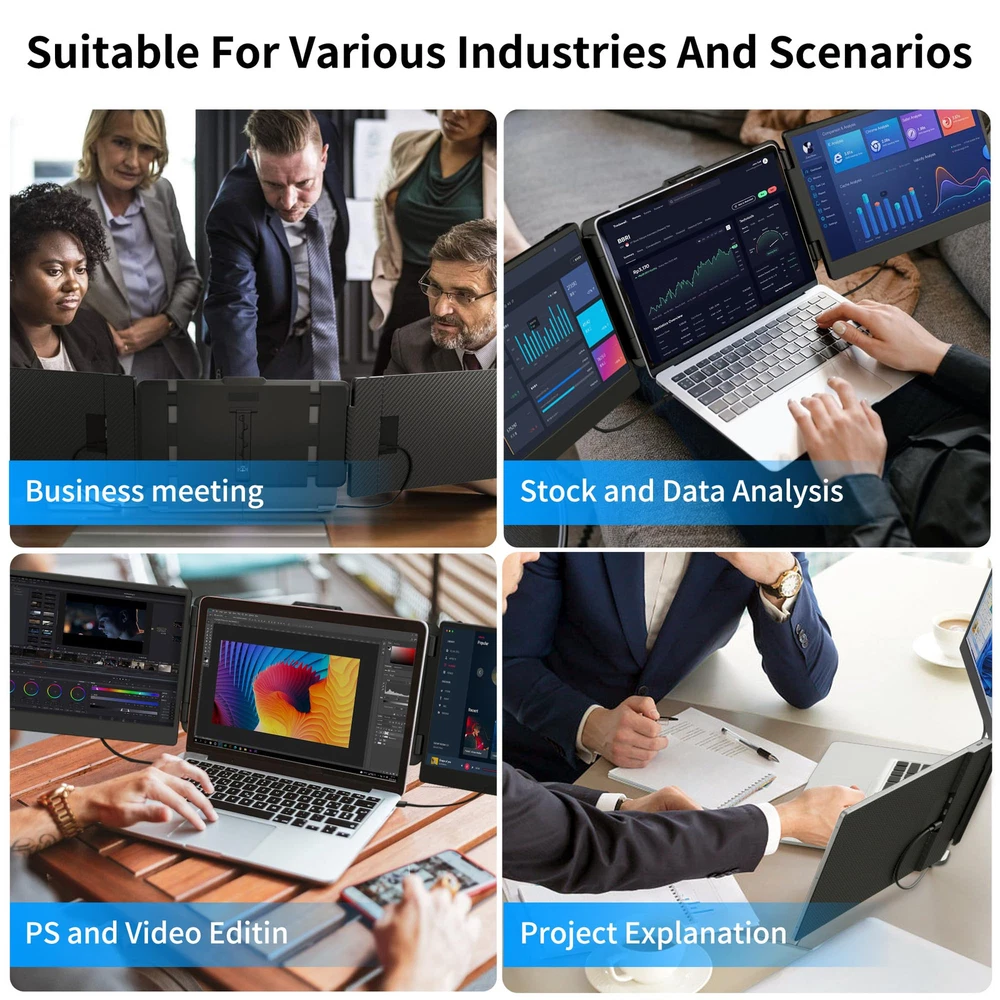 【Incompatible Devices】The following laptop devices are not compatible with this laptop screen extender: MacBook Air 2020/2022/2023/2024, 2018 and earlier, MacBook Pro 2020/2022, 2017 and earlier, HP G62 (2010), ENVY X360 13-ay0056AU, ENVY 13, Dell XPS 13 Early 2015, Dell Vostro Series, Samsung Galaxy Book S/Book Pro 360, Galaxy Chromebook, HUAWEI MateBook 13 2020 13.3", 13 2021 13.3", Lenovo Thinkpad X1 Fold, Yoga Chromebook 15.6", Yoga 7i 14", S540 13", and Microsoft Surface Go/Go 2, Surface Pro 6/Pro 7/Pro X, Surface laptop Go/2/3/4. 【1080P Resolution & 14" IPS FHD Screen】Immerse yourself in the vivid world of our S2 triple laptop monitors, equipped with 14-inch 1080P FHD IPS screens. Experience a clear and vibrant workspace with a brilliant brightness of 300 nits. This elevates your gaming experience, boosts work performance, and supercharges multitasking capabilities. 【Portable & Efficent】The triple portable laptop screen extender is lightweight at just 3.57LB and easy to connect to your laptop without extra accessories, boosting productivity by up to 300%. Its flexible stand ensures stable and steady screens, and it conveniently fits into any bag, making it perfect for travel. The 14-inch laptop screen extender portable monitor is designed for on-the-go professionals, rotating at angles of 0-180 degrees and folding compactly for storage. It offers four modes: extend, mirror, presentation, and portrait, making it an ideal companion for online classes, work, travel, gaming, and video conferences. 【Easy Plug and Play】To start using this laptop screen extender, simply plug in your laptop using a USB-C or USB-A add HDMI cable, with no need for any drivers. The USB-A to USB-C cable is solely for power supply. However, please note that Apple laptops with M1/M2/M3 chips require an H4 hub. Additionally, if your laptop lacks an HDMI port, our H5-T converter can convert your laptop's USB-A/USB-C port to an HDMI port for output, eliminating any compatibility issues. You will need to install drivers when using H4 and H5-T. 【Dedicated Customer Care】To ensure optimal performance with S2 triple extender, please ensure: 1.Your laptop has at least 1 full-functioned(supports video output) TYPE-C port;2.The maximum length of your laptop: 400mm; 3. This monitor is compatible with Mac (with M1 Pro/ Max, M2 Pro/ Max, M3 Pro/ Max),MacBook Air 2018-2019 models. For other Mac models, you may need to use our 8 IN 1 HUB to connect. Rest assured that all our products undergo rigorous pre-sale inspections to ensure quality. If you have any questions regarding compatibility, please don't hesitate to let us know.