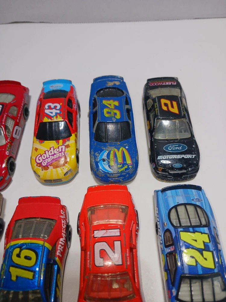 Dive into the world of NASCAR with this diverse lot of 14 vintage 1:64 scale die-cast cars, featuring renowned drivers like Earnhardt, Musgrave, Waltrip, Petty and Gordon. Each meticulously detailed vehicle is a replica of its real-life counterpart, constructed from high-quality diecast material, promising durability and a premium feel. Collectors and racing enthusiasts will appreciate the variety of brands included in this set, as well as the intricate design that Lionel is known for. Whether for display or play, these cars celebrate the legacy of NASCAR and are a must-have for fans of the sport. Embrace the thrill of the race with these scaled-down treasures from the world of motorsport.