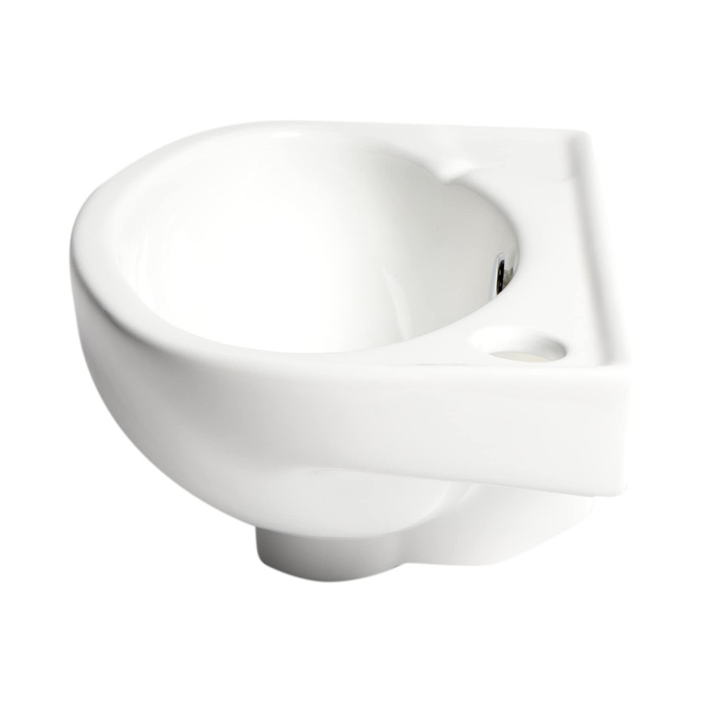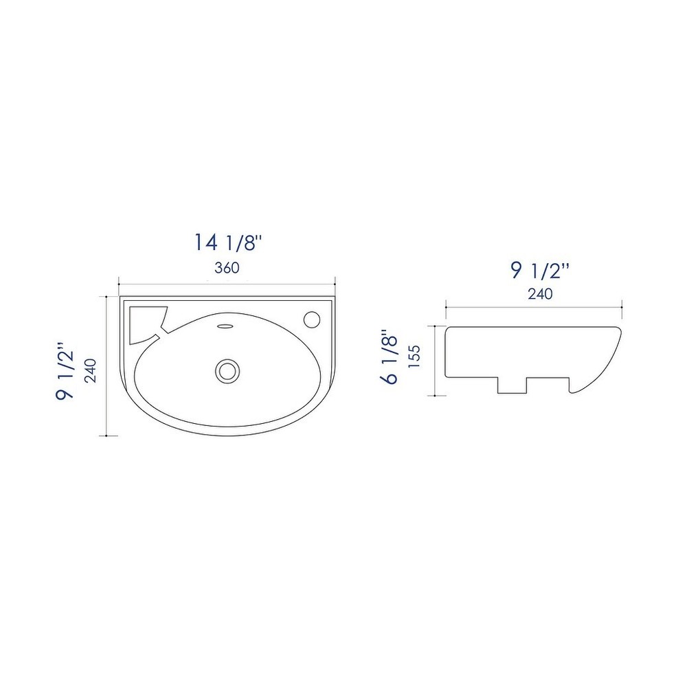 Comes in a white glossy finish with a super smooth glaze that is both durable and timeless.Made of high grade ceramic porcelain also known as vitreous china. The most common used bathroom sink material of all times.Includes wall-mounting hardware for a convenient installation. Or you can always choose to install this sink as an above mount on the counter since it's unique design allows it to go both ways.Includes a standard 1 3/8" faucet hole on the right side.Standard sized center drain hole of 1 3/4".Features an overflow hole, so be sure to purchase a drain that is for sinks with an overflow like the ALFI brand AB9056 (in polished or brushed) or the AB8056 (in white or black). Free Shipping Over $49.99* Details White 14" Small Wall Mounted Ceramic Sink with Faucet Hole Product Description: Comes in a white glossy finish with a super smooth glaze that is both durable and timeless.Made of high grade ceramic porcelain also known as vitreous china. The most common used bathroom sink material of all times.Includes wall-mounting hardware for a convenient installation. Or you can always choose to install this sink as an above mount on the counter since it's unique design allows it to go both ways.Includes a standard 1 3/8" faucet hole on the right side.Standard sized center drain hole of 1 3/4".Features an overflow hole, so be sure to purchase a drain that is for sinks with an overflow like the ALFI brand AB9056 (in polished or brushed) or the AB8056 (in white or black).
