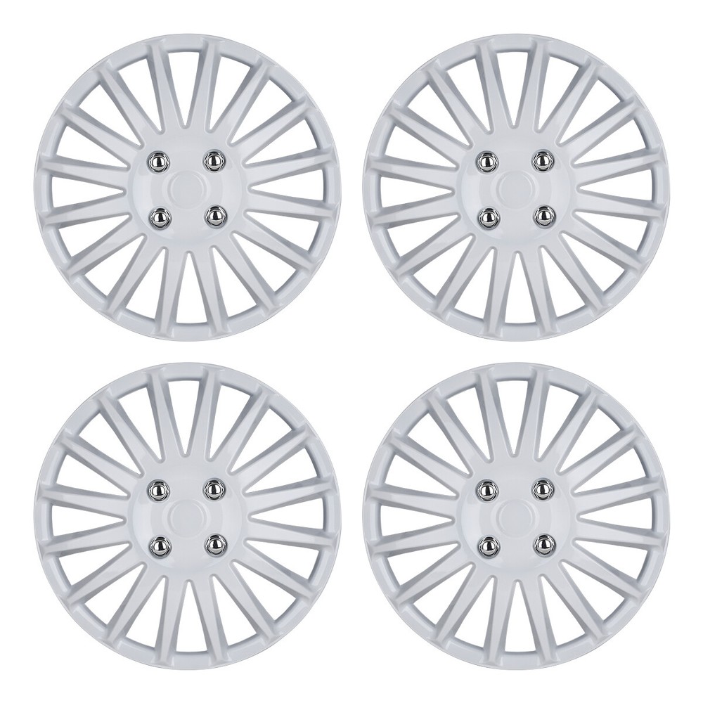 These white wheel covers are a fantastic upgrade! They fit my 14" wheels perfectly and give my car a clean, polished look. Installation was quick, and they stay securely in place even on bumpy roads. Great protection against scratches and road debris—definitely worth the money for the style and durability they add. Highly recommend checking your wheel size first to ensure the best fit!