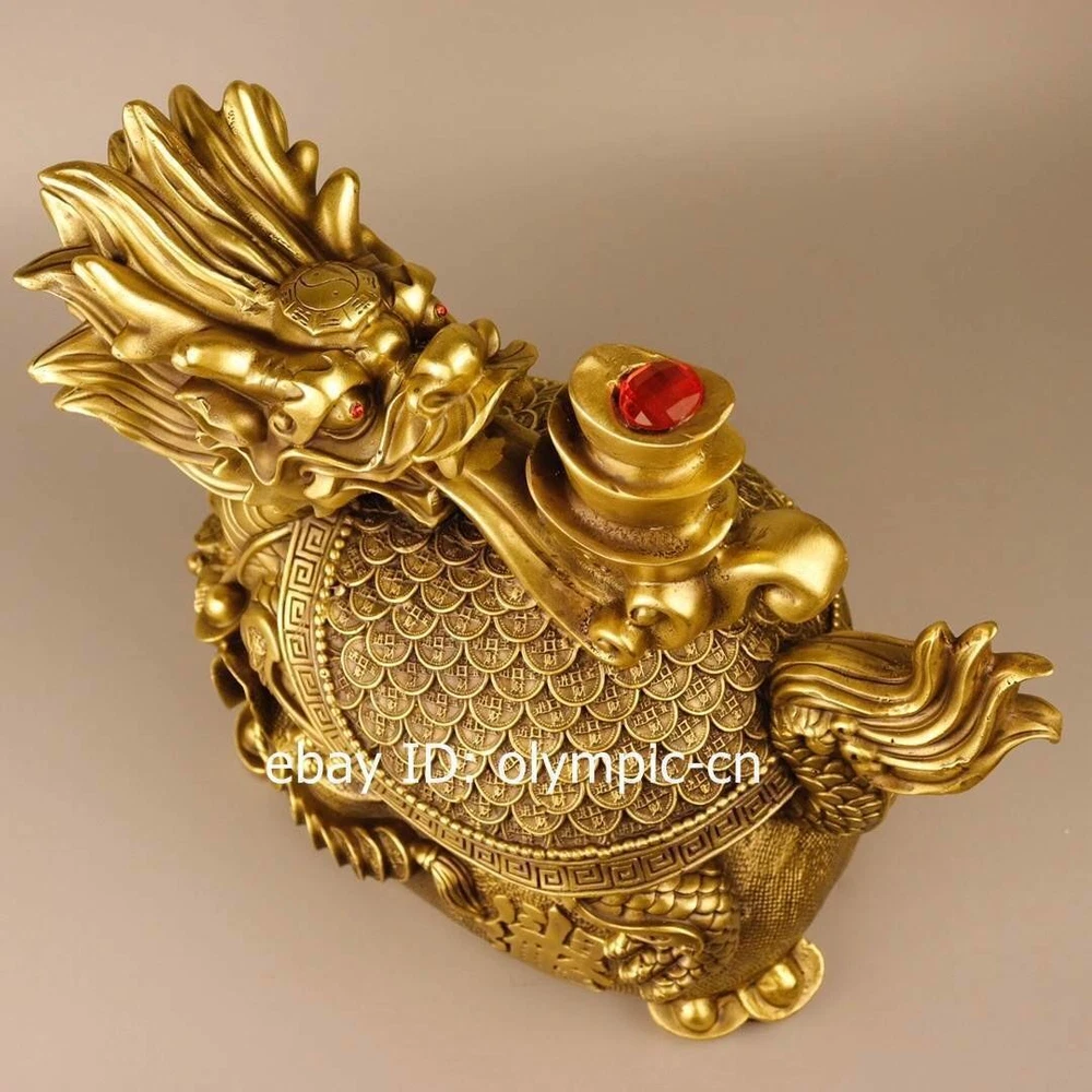 14'' brass home geomantic wealth fortune gather money cornucopia dragon turtle product size: Height 35 c m. Long 30 cm . Breadt 20 c m 1 inch=2.54cm 1pound=0.4536kg Weight: Abo ut 7 kg ---without included the weight of packing materials Condition:Very Good.