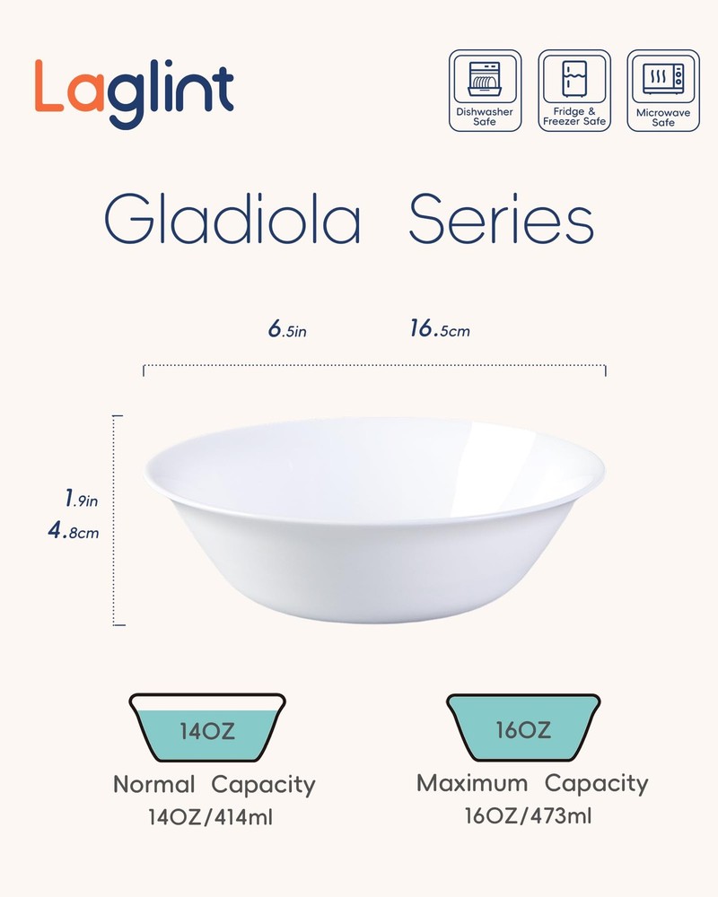 Is Microwaveable: Yes EAN: 6977699962152 Color: White Care Instructions: Microwave Safe, Dishwasher Safe gtin13: 6977699962152 Theme: Casual, Modern Capacity: 16.0 Size: 16Oz-4 Piece Material: Glass Type: Does not apply Bowl Material Type: Glass UPC: Does not apply Item Shape: Round Is Dishwasher Safe: Yes Pattern: Solid Unit Count: 4.0 Occasion Type: Special Occasions Package Dimensions LxWxH: 7.8x7.68x4.09 Inches Weight: 2.73 Pounds Brand: Laglint Number Of Pieces: 4 Is Fragile: Yes ISBN: 6977699962152 Specific Uses For Product: Dinner Style: Modern Recommended Uses For Product: Breakfast, Lunch, Dinner, Snacks