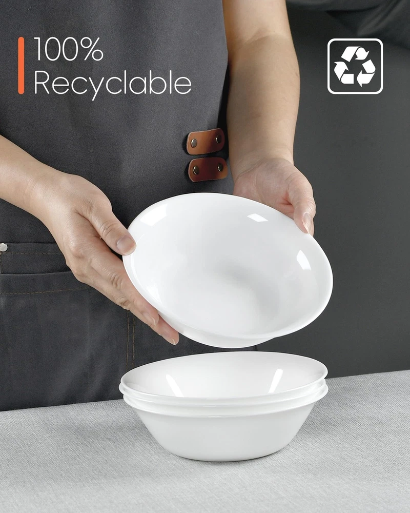 16oz Cereal Bowl Set of 4: Max 16 oz when bowl is full. Classic and timeless all-white design. Perfect for cereal, soup, nuts, salad, fruit, rice, and noodle without spillage Food Grade Materials: Our opal glass materials of cereal bowls are lead-free, cadmium-free, and BPA-free Matte-bottom Design: Prevents slipping and sliding. Offers a pleasant tactile experience when handling Easy to Clean: Thanks to the non-porous ultra-hygienic surface, less detergent and energy is needed for cleaning; The bowls are dishwasher, microwave and refrigerator safe Durable and Lightweight: Look as good as new even after numerous washes; The bottom is treated with frosted anti-slip; Easier handling; Save energy in production and transportation Space Saving: Stackable, can be neatly placed in the cupboard to save more space in your kitchen; A great gift ideal for home décor, housewarming, wedding, family reunion or any other party High Resistance to Scratches: Maintains a pristine appearance over time, even with frequent use 100% Recyclable: Recycle our soup bowls according to your local recycling guidelines; Recycling glass helps reduce landfill waste, contributing to a more sustainable Our Commitment: Our unwavering commitment is to deliver premium, environmentally responsible products to our customers Our Service: We're committed to a great customer experience; Any questions or concerns about our bowl set; Contact our customer service; Your satisfaction is our priority