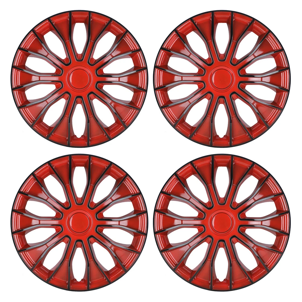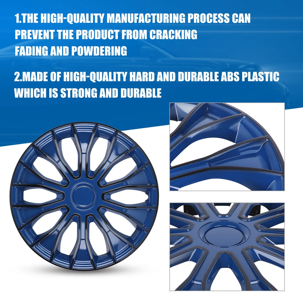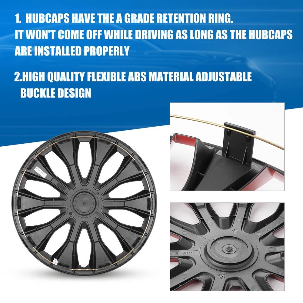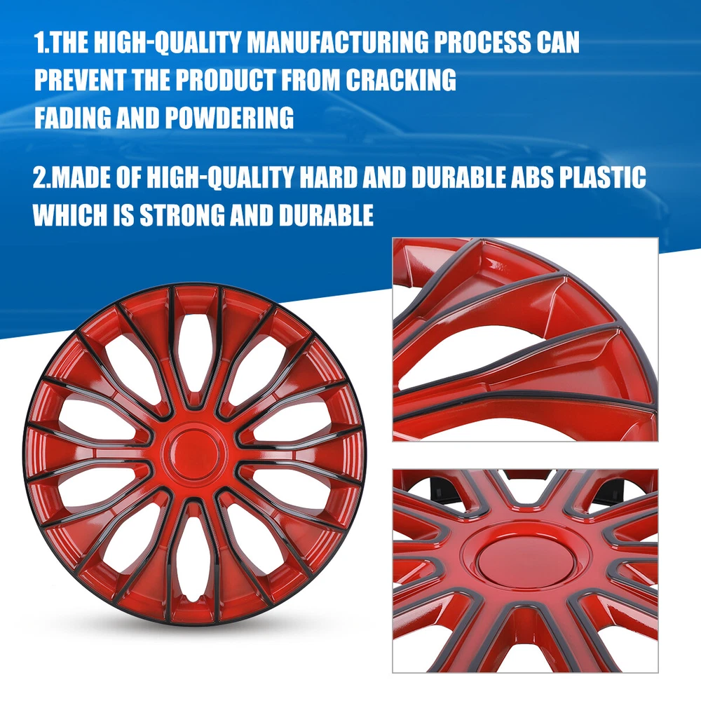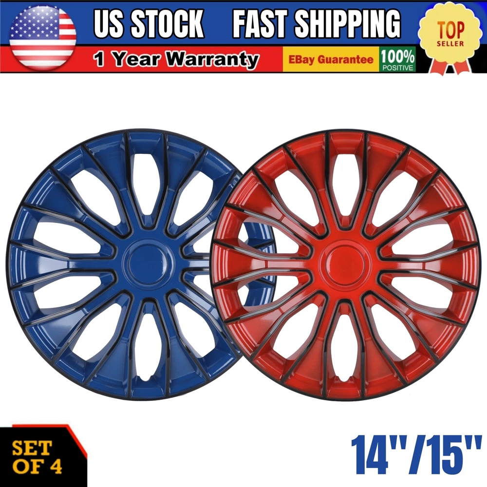 Features: Universal Fit - Design for 14"/15" wheel hubs. Please know that and check your wheel before purchase to ensure fitment. Protect Your Wheels - Keep your vehicle looking sleek and new with these universal-fit hubcaps that offer reliable protection against scratches, dings, and other types of damage. Durable - Made from high-quality ABS materials, these hubcaps are built to withstand the rigors of daily use, keep your vehicle looking great for years. Stylish - Upgrade the look of your car or truck with these sleek hubcaps to enhance the appearance of your vehicle. Easy to Install - Designed to fit most standard wheel size, these hubcaps can be quickly and easily snap on your wheels without the need for special tools, making them a great choice for busy vehicle owners. Specification: Type: Wheel Hub Caps Color: Black red / Black blue Compatible Wheel Diameter: 14 / 15 inch Features:Car Wash Safe, Easy to Install, No Tools Required Material: ABS Number in Pack: 4 Wheel Type: Steel Placement on Vehicle: Front, Left, Rear, Right Package Includes: 4* Wheel Cover Hubcaps