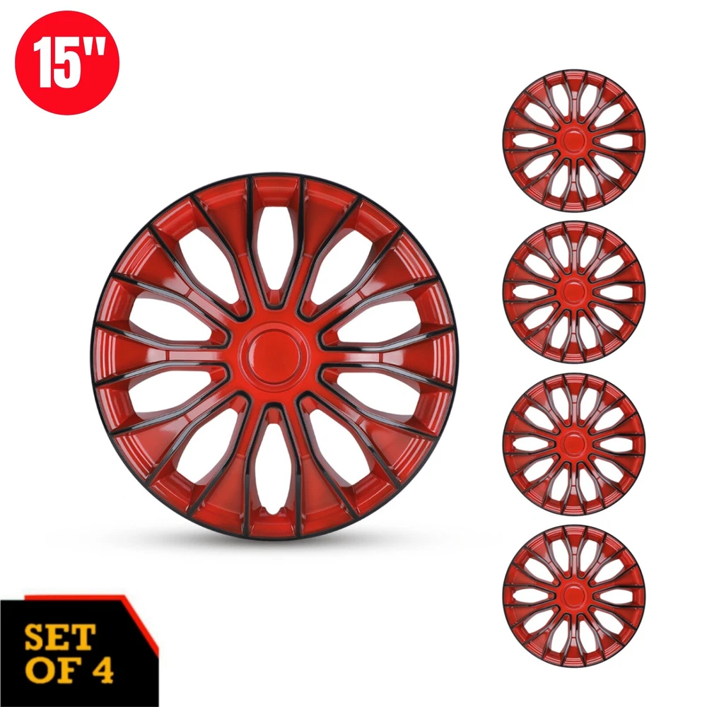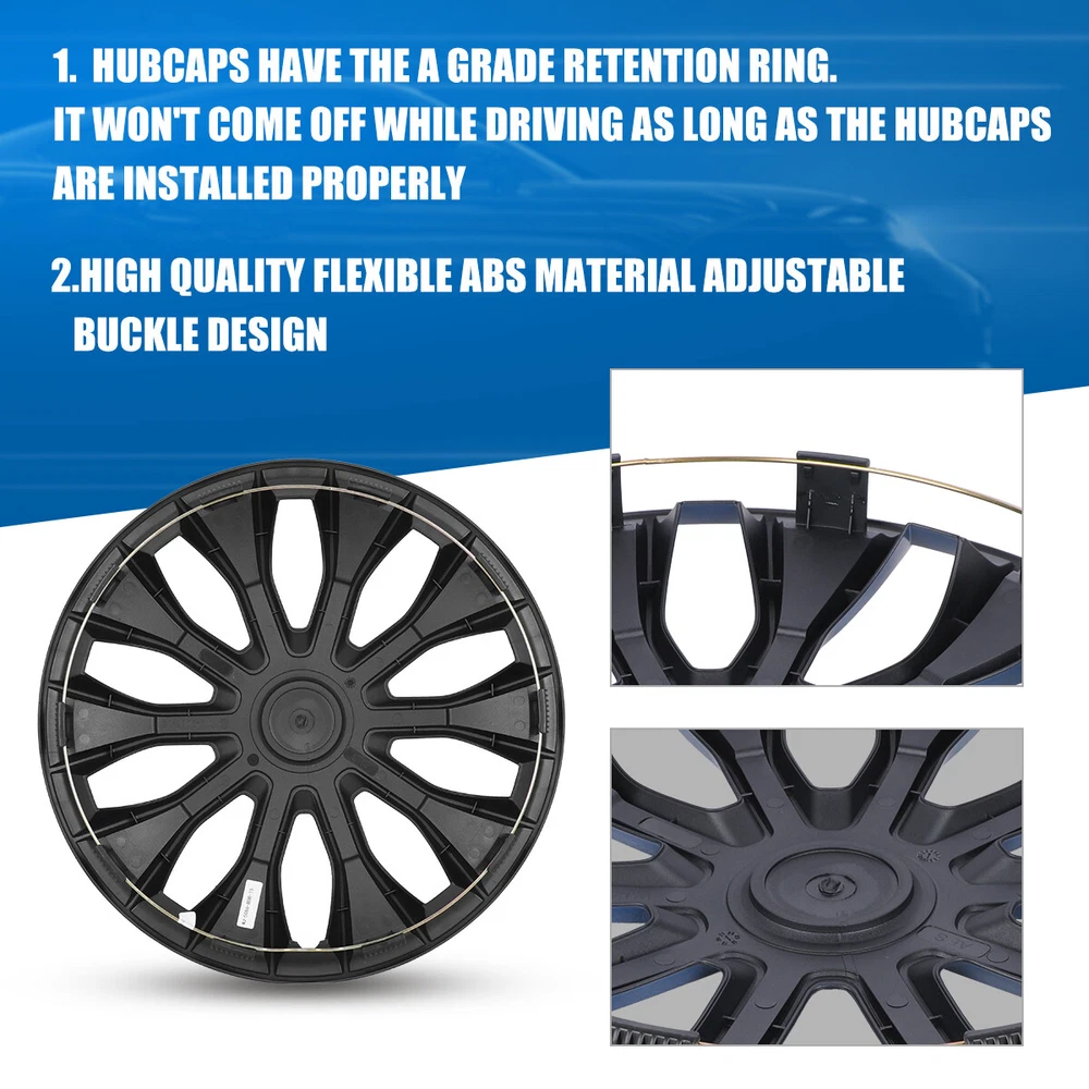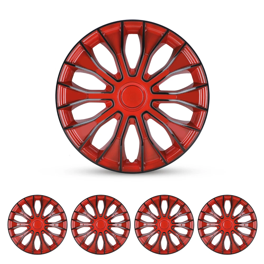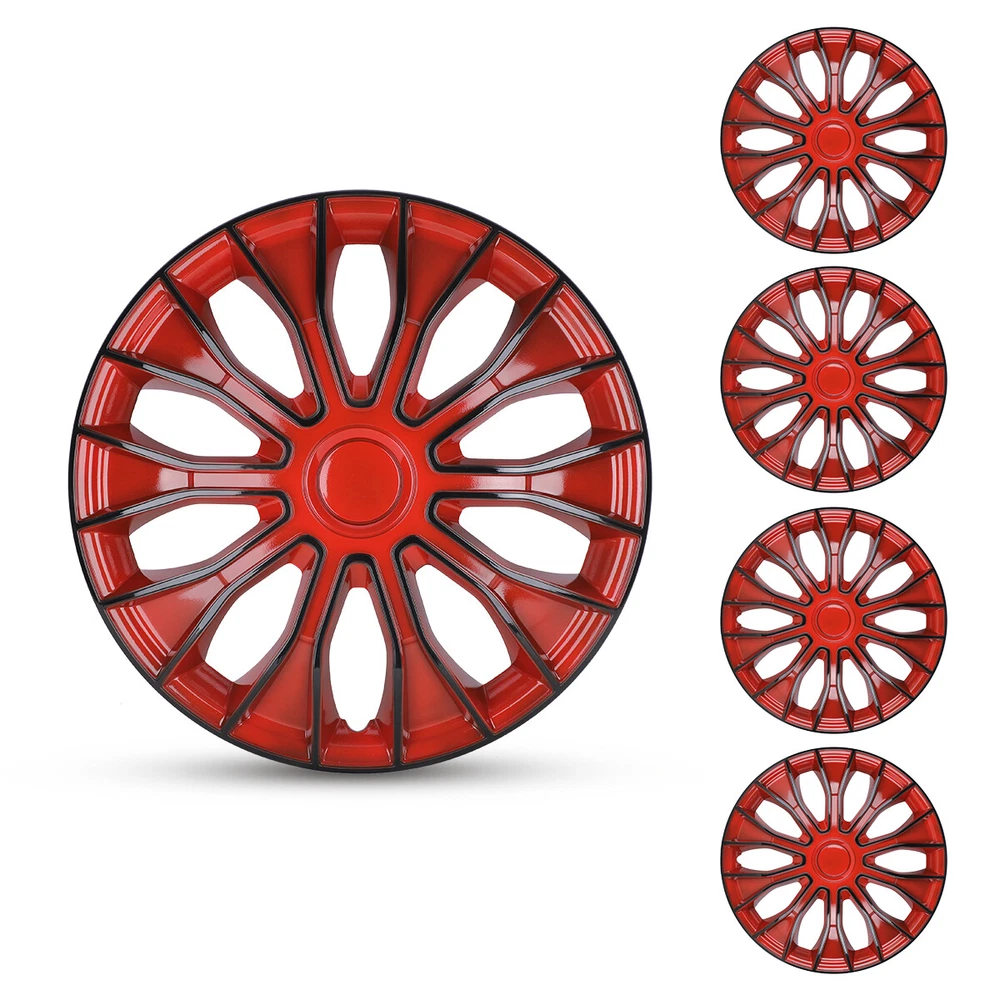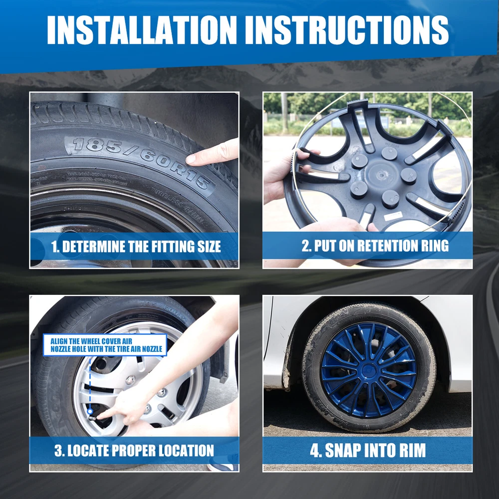 Features: Universal Fit - Design for 14"/15" wheel hubs. Please know that and check your wheel before purchase to ensure fitment. Protect Your Wheels - Keep your vehicle looking sleek and new with these universal-fit hubcaps that offer reliable protection against scratches, dings, and other types of damage. Durable - Made from high-quality ABS materials, these hubcaps are built to withstand the rigors of daily use, keep your vehicle looking great for years. Stylish - Upgrade the look of your car or truck with these sleek hubcaps to enhance the appearance of your vehicle. Easy to Install - Designed to fit most standard wheel size, these hubcaps can be quickly and easily snap on your wheels without the need for special tools, making them a great choice for busy vehicle owners. Specification: Type: Wheel Hub Caps Color: Black red / Black blue Compatible Wheel Diameter: 14 / 15 inch Features:Car Wash Safe, Easy to Install, No Tools Required Material: ABS Number in Pack: 4 Wheel Type: Steel Placement on Vehicle: Front, Left, Rear, Right Package Includes: 4* Wheel Cover Hubcaps