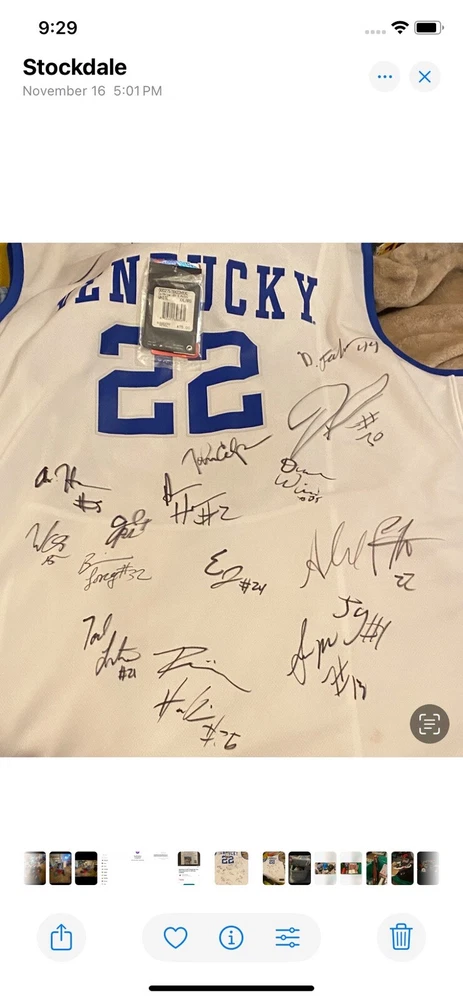 Nike elite Kentucky basketball jerseyXXL brand new with tags. 2014 team autographed jersey with a COA . Players like Willie Cayley-Steins #15, Aaron Harrison #2, Andrew Harrison #5, James Young #1,Sam Malone #13 , Tod Lanter #21, Alex Poythress #22, EJ Floreal #24 , B Long #32, Derek Willis #35, Dakari Johnson ##44 , head coach John Calipari and more .