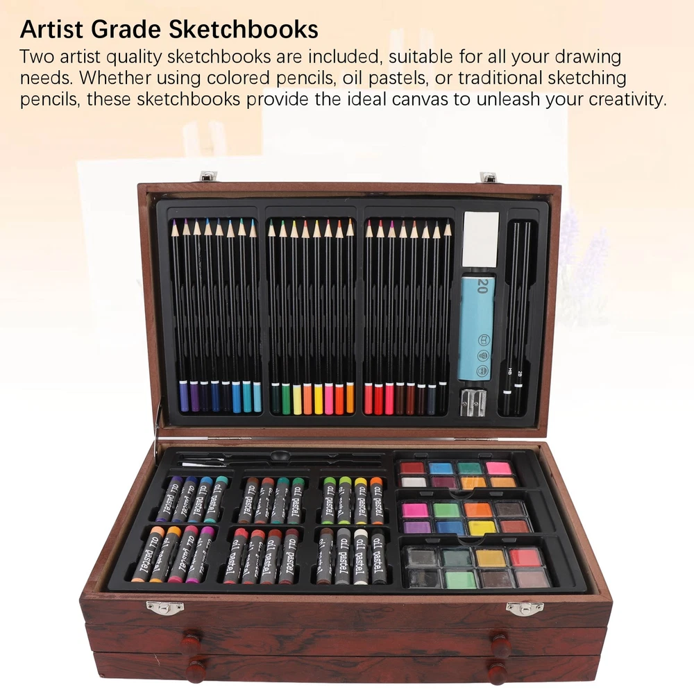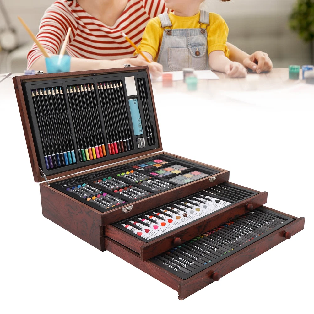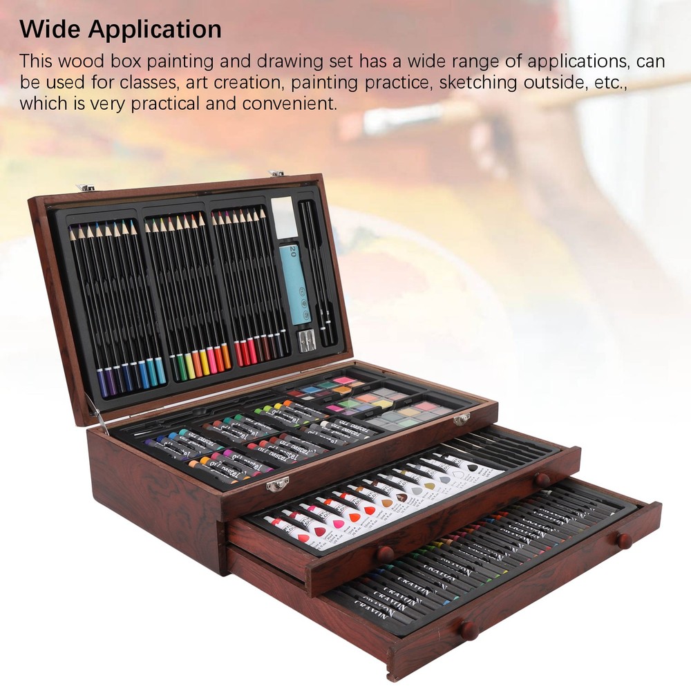 Feature: 1. Artist Grade Sketchbooks: Two artist quality sketchbooks are included, suitable for all your drawing needs. Whether using colored pencils, oil pastels, or traditional sketching pencils, these sketchbooks provide the ideal canvas to unleash your creativity. 2. Organized And Versatile Storage: All components are neatly organized within a beautiful wooden storage and carrying case, complete with compartments and storage drawers. This setup keeps your art supplies tidy and easily accessible, allowing for a clutterless innovative space. 3. Good Gift: Suitable for birthdays and holidays, this art painting sketching drawing set makes a thoughtful gift to anyone passionate about art. Its comprehensive nature and sophisticated presentation make it an excellent choice for both beginner and experienced artists. 4. Wide Application: This wood box painting and drawing set has a wide range of applications, can be used for classes, art creation, painting practice, sketching outside, etc., which is very practical and convenient. 5. Diverse Art Materials: The crafts drawing painting kit features a comprehensive selection of art supplies, including 24 paints, 2 black paint brushes, 6 wood color brushed, 24 oil pastels, 24 colored pencils, 60 crayons, 2 graphite pencils, a pencil sharpener, and an eraser. This wide assortment ensures you have the right tools for any artistic endeavor. Specification: Item Type: Wood Box Painting and Drawing Set Material: Birch Wood, Crayons, Watercolor Size: Approx. 37.5 x 23 x 7.5cm / 14.76 x 9.06 x 2.95in Brush Combination: Crayons, Colored Pencils, Watercolor Cakes, Oil Pastels, Sketching Pencils Package List: 24 x Color Pencils 24 x Oil Pastels 60 x Crayons 3 Boxes x Watercolor 24 x Colored Pencils 2 x Graphite Pencils 1 x Eraser 1 x Pencil Sharpener 1 Pack x Sandpaper 2 x Black Paint Brushes 6 x Wood Color Brushes 1 x Storage Box 2 x Sketchbooks 1. Our listing price includes the value of goods,packaging cost,and export taxes,not including international duties. 2. duties,taxes,and charges are not included in the item price or shipping fee. 3. T he duties are buyers' responsibility .Please check with your country's customs office determine what these additional costs will be prior to your purchase. 4. All disputes arising from the duties will be submitted to ebay for solution. 1. Any questions, pls. contact us via ebay message or email us. We will reply your message within 48 hours. If you do not receive our reply within 48 hours, pls. post a message again beuse sometimes our message system may block some emails. 2. If you are satisfied with our service, pls. kindly leave us a positive feedback and give us the Detailed Seller Rating with all " 5 " in very area 3. Our aim is to provide Level Customer Service, your recognition will encourage us greatly and serve you better. We strive to keep all our customers satisfy. We will do our up most to exceed your expectations in customer service, communition and dispatching of your orders. On Jun 25, 2025 at 04:59:36 PDT, seller added the following information:
