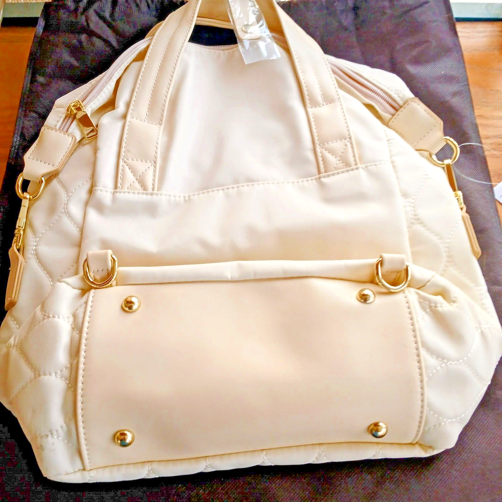 This chic quilted tote-shoulder bag is perfect for weekend getaways or daily use! The ivory color and elegant stitching give it a luxurious look, while the spacious interior and multiple pockets keep everything organized. Lightweight yet durable, it’s comfortable to carry with the adjustable strap. The zip closure adds security, making it both stylish and practical for any outing. Love the designer vibe without the high-end price!