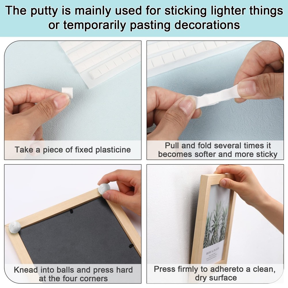 144 Pcs Poster Putty, Adhesive Wall Tacky Putty for Hanging Posters, Photos, Notes, Decoration - White 【Poster Hanging Putty】Adhesive wall putty very suitable for hanging posters, pictures and museum art, you will get 1pc multipurpose poster putty for walls removable in white. Each pack comes with ready cut block for easy tear off. In a total of 144 small squares, each small square size is about 1.1 × 1cm , you also can customize the size of your adhesive. 【Easy to Use】 Pre-cut adhesive photo putty on each pack, easy to tear off. You only need to take the tack putty of the size you want each time, and knead it by your clean oil-free hands to make it soft and viscous, then stick it to the back or bottom of the object and press mounting putty tightly on a clean, dry surface. 【Sticky and Reusable】 Our adhesive poster tacky putty sticky are made of great-quality material with strong adhesion, convenient to use.The mounting putty will not harm the wall and hands, poster gum can work for a long period. Wall safe tacky putty leave no marks or stain on the surface, good for hanging photos posters. 【Multi-Function】Wall gum adhesive, this mounting putty is suitable for posters, photos, notes, nail art, installation, party decoration.Tacky putty can replace thumbtacks, tapes, staples, tacky wall putty with multipurpose use in office, home, and school. 【Attention】 The mounting tacky putty is mainly used for sticking lighter things or temporarily pasting decorations, like frames, posters, photos, etc. Suitable for most dry clean surfaces, such as wood, tile, metal, plastic, porcelain, etc. Not suggest to stick on any scattered wallpaper and on peeling or fresh paint. 1 Shipping We offer FREE shipping on all orders! We ship within Three business days of payment, usually sooner. We use a selection of shipping services such as UPS, FedEx, USPS etc. We only ship to the lower 48 states, no APO/FPO addresses or PO Boxes allowed. Local pickups and combined shipping options are not provided at this time. Return You can return a product for up to 30 days from the date you purchased it. Any product you return must be in the same condition you received it and in the original packaging. Please keep the receipt. Payment We accept payment by any of the following methods: PayPal Please pay as soon as possible after winning an auction, as that will allow us to post your item to you sooner! Feedback Customer satisfaction is very important to us. If you have any problem with your order, please contact us and we will do our best to make you satisfied. Contact Us If you have any queries, please contact us via ebay. We usually respond within 24 hours on weekdays. Please visit our eBay store to check out other items for sale! Thank you for shopping at our store.