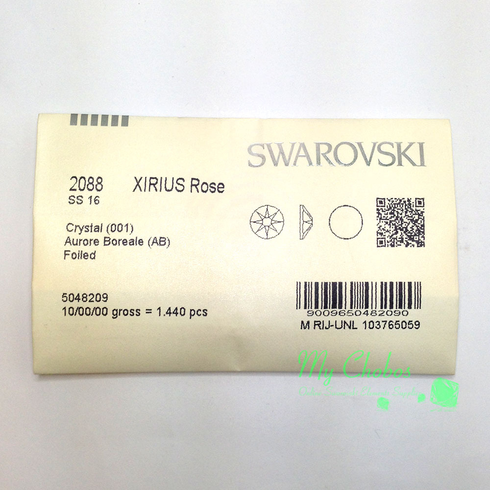 Material: Crystal (Lead Free) Bead Size: Please refer to the listing Size: ss16 (3.9mm) Brand: Swarovski Country of Manufacture: Austria Color: Crystal AB (001 AB) Style: 2088 Flatbacks No-Hotfix Quantity: 1,440 pieces (Factory Pack)