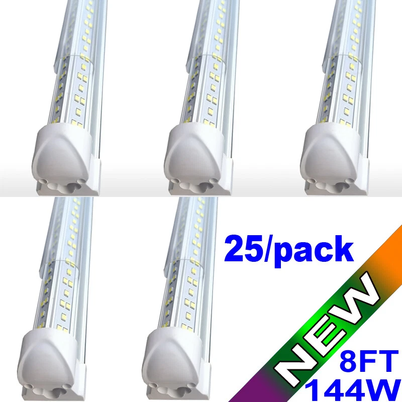 FAST DELIVERY - Ship from New Jersey or Los Angeles Warehouse via FedEx , 3-7 Days Delivered Your Door . SCIENTIFIC DESIGN - 8Ft LED Shop Lights Fixture is Made of 6500K Cold White SMD2835 LED Chip ,Plastic Clear Cover , Aluminum Bracket Housing ,and AC85-277V Constant Current Driver . It can work in -68F to 120F Temperature Conditions EASY INSTALLATION - The Integrated Tube Fixture Can be Install on Wall or Ceiling ,Easily Replace Traditional Fluorescent Tube Bulb . Plug and Play , Free Accessories (Power Cords, Connector , Extension Cords , Clip and Screw ) Come with Tube Lights Together WIDE APPLICATION - Linkable 8Ft Bulbs Widely Used in Garage Ceiling , Barbershop , Schools, Hospitals Basement , Factory Warehouses , Supermarkets Cooler Door , Offices, Shops,Hotels, etc 144w 8 ft led shop lights led Strip Lights 25PC Cold White LED Garage Lights FAST DELIVERY - Ship from New Jersey or Los Angeles Warehouse via FedEx , 3-7 Days Delivered Your Door . SCIENTIFIC DESIGN - 8Ft LED Shop Lights Fixture is Made of 6500K Cold White SMD2835 LED Chip ,Plastic Clear Cover , Aluminum Bracket Housing ,and AC85-277V Constant Current Driver . It can work in -68F to 120F Temperature Conditions EASY INSTALLATION - The Integrated Tube Fixture Can be Install on Wall or Ceiling ,Easily Replace Traditional Fluorescent Tube Bulb . Plug and Play , Free Accessories (Power Cords, Connector , Extension Cords , Clip and Screw ) Come with Tube Lights Together WIDE APPLICATION - Linkable 8Ft Bulbs Widely Used in Garage Ceiling , Barbershop , Schools, Hospitals Basement , Factory Warehouses , Supermarkets Cooler Door , Offices, Shops,Hotels, etc