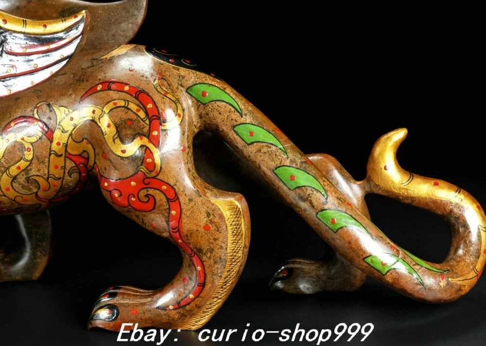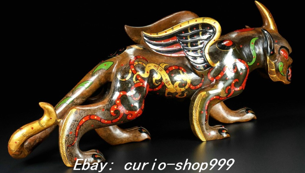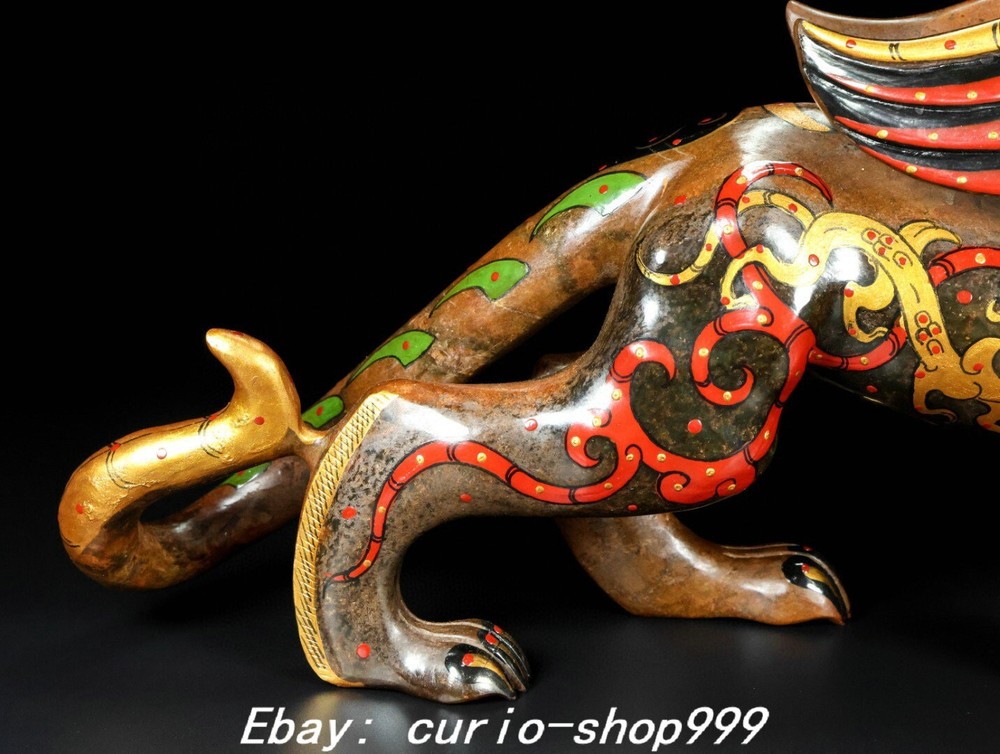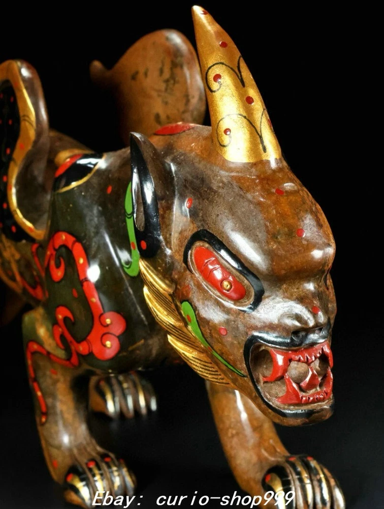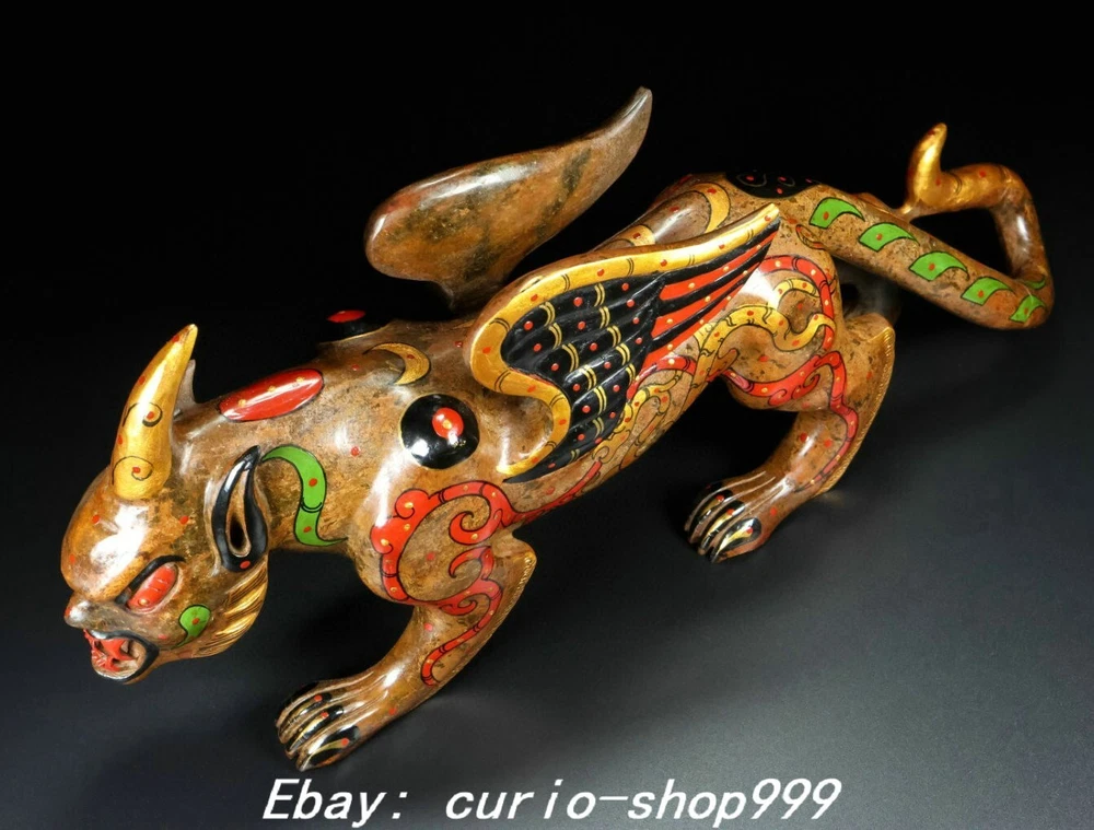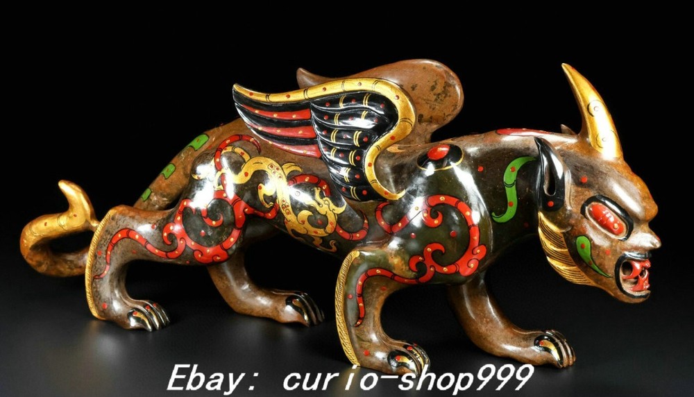 **** Welcome to our antique & Collectable Shop : curio-shop999 **** Description: Here is an 14.5" Han Dynasty Natural Hetian Jade Gold Painting Dragon Loong Beast Statue . It is in good condition, and was created by skilled craftsmen in traditional style with fine handcrafts.This is a great piece of valuable collection, a valuable personal alter or a very good present. the handwork is very fine with incredible detailling. Don't miss out this chance to get it.Wish you good luck! . Material : Natural Hetian Jade Gold Painting Plating : Chinese Style : Same as photos showing Size : High 6.3 Long 14.5 Breadth 3.1 (inch) Condition Perfect Condition. Perfect, with no scratches, flaws or repairs. Weight: 3.7 KG----included the weight of packing materials Shipping cost to all over the world countries in Free Honored Customers: We are selling the collectibles products and crafts in Beijing ,China since 1993 and collected them all over the world all the time . In our shop the bronze sculpture, animal, vase, urn, flowerpot,Incense Burner.Table chair sets. Militaria goods. buddha statues, Bodhisattva Statues, Buddhist Ritual Items etc is our speciality .Many of the items we sell come from our own personal collection and have been in our family for a very long time .My great-grandfather was the first in this family to start collecting art & antiques when he still lived in San Xi and Tibet around 1922 ,some of the paintings he once collected can now be seen in museums around the globe.We won't make money from the shipping cost, if you dislike the item when you receive it,we can refund all of your money to you within thirty days. Please confidence for bidding . We recommend the combine shipping and offer you an big price discount if you order more items together ! 2025.5.7 四 号