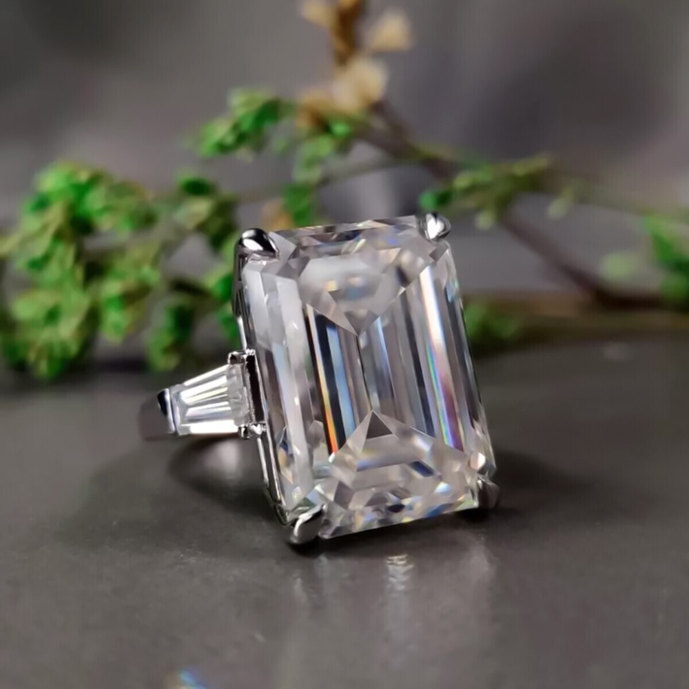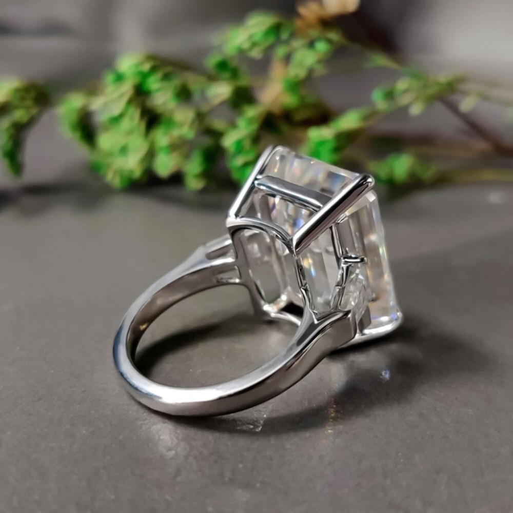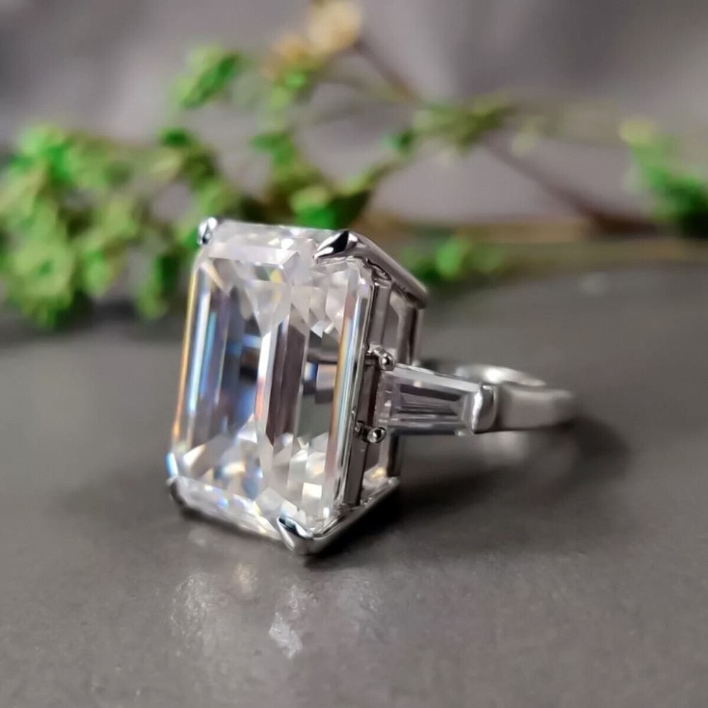 14.50 Ct Emerald Cut Off White Diamond Ring 925 Silver Bridal Jewelry