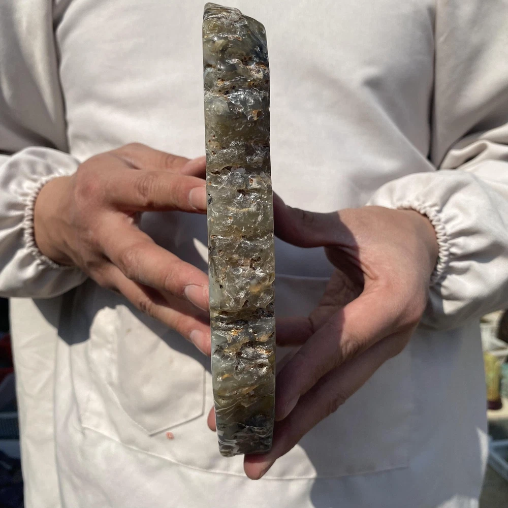 You will receive the Real Item as shown in the pictures. The item was photographed in the sun Natural Blue Agate Banding Slab Polished Crystal Chalcedony Healing Reiki Weight: 1450 g=3.1LB Size: 194.5mm*169mm*24.5mm (1inch=25.4mm 1lb=453.6g) *Please "Save this seller" , I will continue to publish new items for you to choose from. *Buyers first add items to your own eBay Shopping Cart to purchase multiple items with a single payment.I'll give you the best discount. *We strive to achieve a 5 stars rating for each every transaction. If you are not 100% satisfied, please contact us first so that we can resolve your problem. PLEASE don't leave a neutral or negative feedback before giving us the opportunity to help you. Shipping: We Ship to WorldWide: Items will be send out within 1 to 2 working days after payment received. Logistics providers choose suitable and fast logistics channels to send items (speedPAK Fedex DHL UPS TNT). United States (except in remote areas) 10-20 working days Europe 15-25 working days We will use china Post Air Parcel Service Our shipping speed depends on the efficiency of the Customs and the shipping company. Thank you for your understanding and patience. If you did not receive your items in the expected time, please contact us first, and we'll solve the problem at once. Payment: Payment methods are now centrally managed by eBay. Is very safe and reliable.If there is international Customs duties, buyers will be responsible for it. Return policy: Our Store offers a 30 days (from buyer received) return and exchange policy. If you're not 100% satisfy with our products, you can return them within 7 days for a full refund (Price + Shipping cost , the shipping back fees not include) or for an exchange. We will ship the replacement once we have received and processed the returned item. If you request for a refund, we will notify you via Email of your refund once we have received and processed the returned item. Please contact us before you open a case or leave a Negative, Neutral feedback. No matter what problem you have, we will solve it carefully and quickly. Thank you for your understanding and magnanimity. Buyer Feedback : I thanks every Ebay buyer for their positive feedback and we will leave feedback to you for orders which have completed and have left positive feedback to us. I value every buyer's feedback very much.Please contact us before leaving any negative or neutral feedback, I would like the opportunity to correct any problems. If you have any other questions, please don't hesitate to ask. Be sure to follow our store to keep up with our amazing deals!