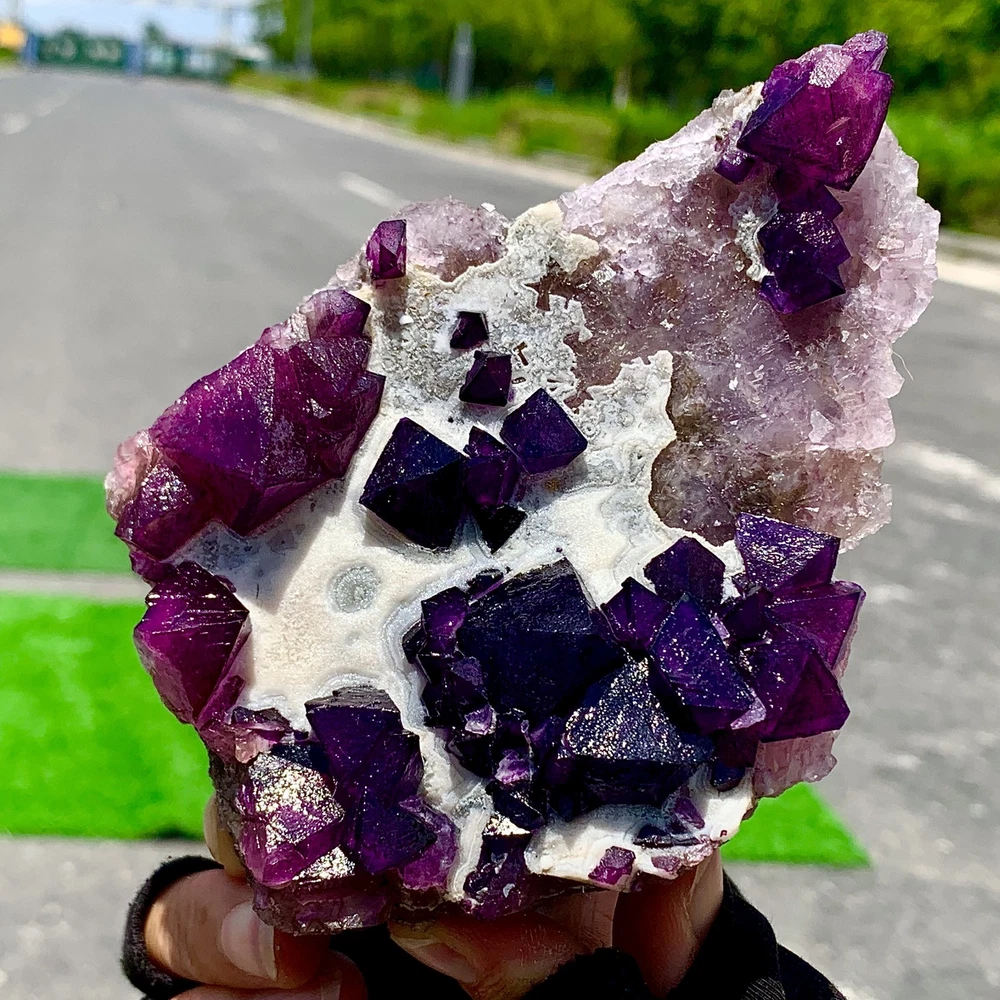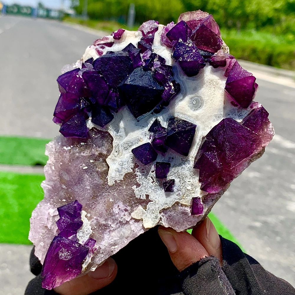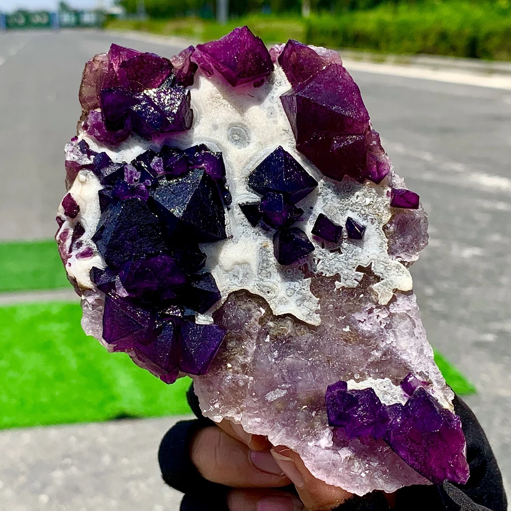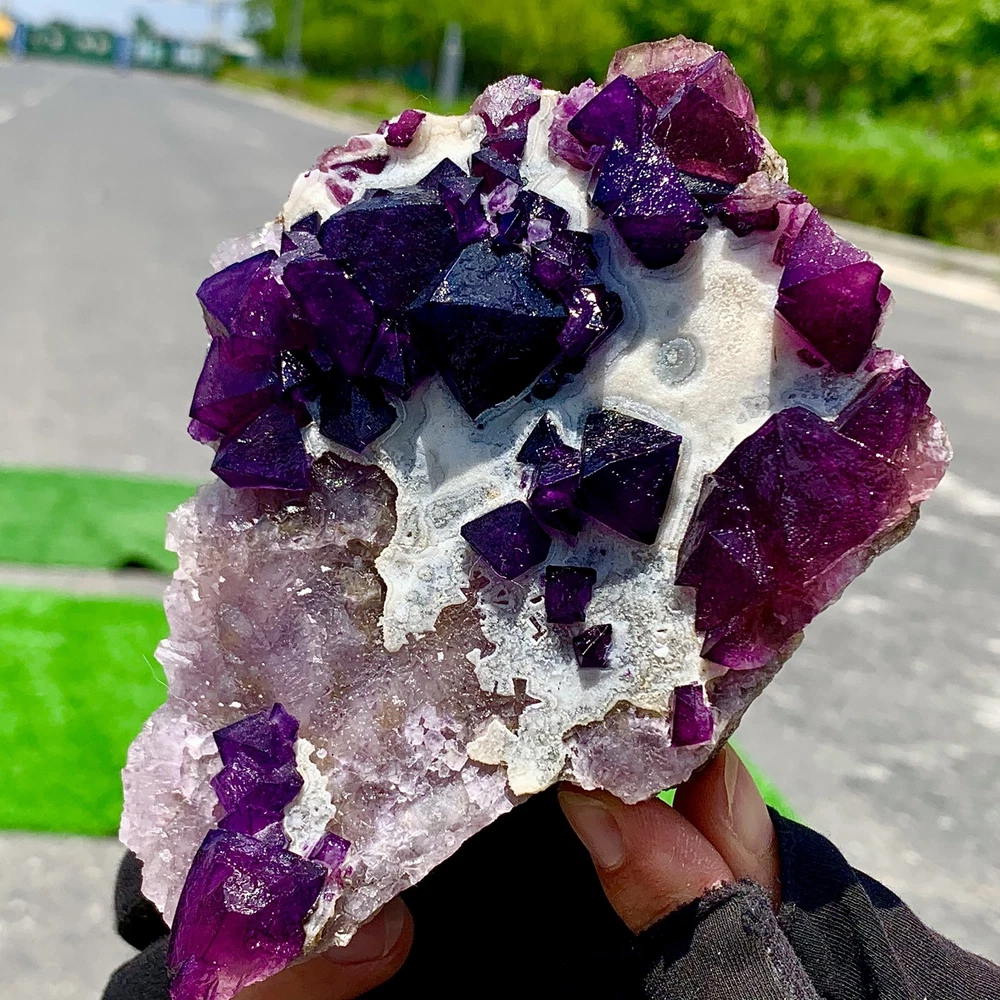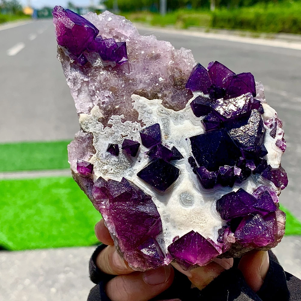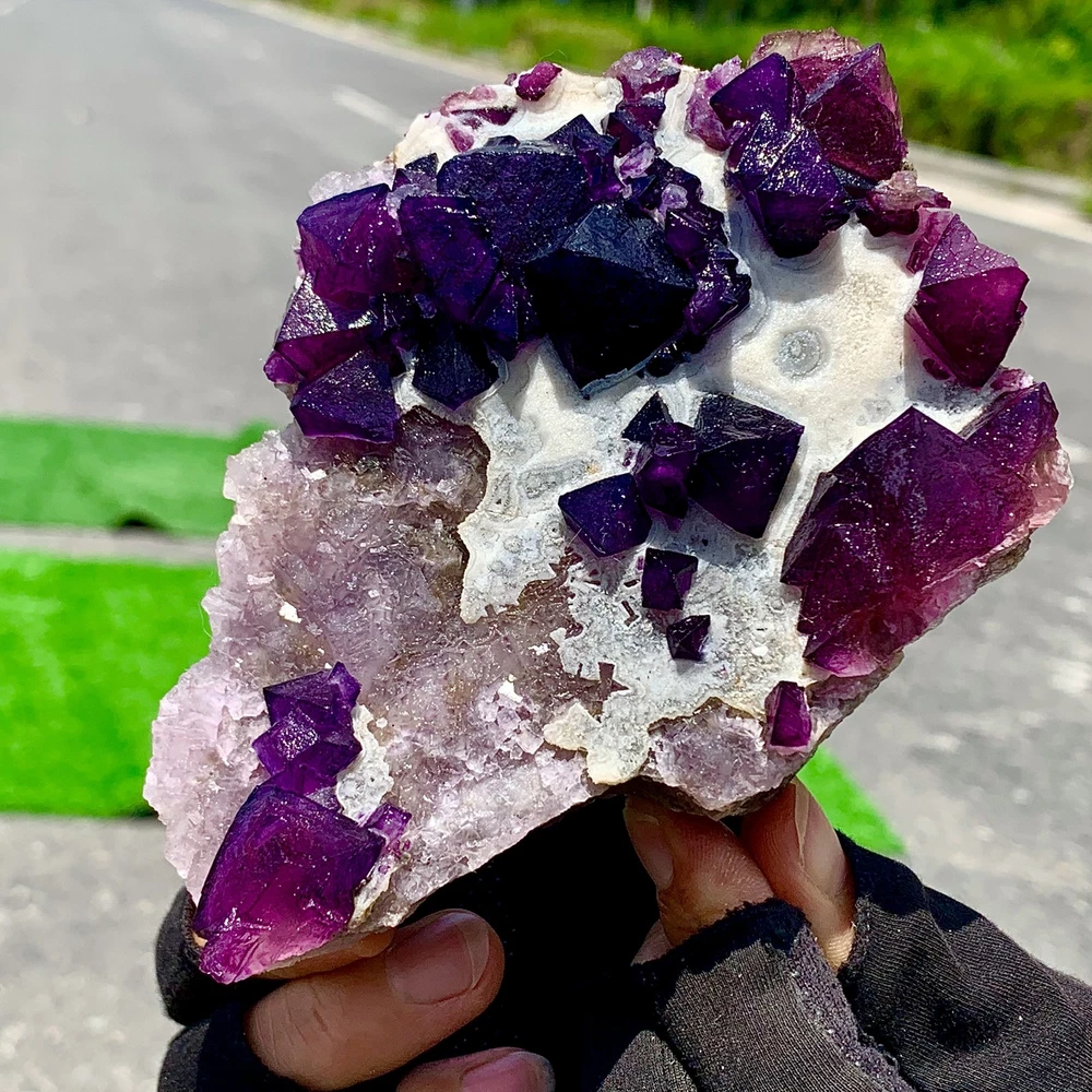1.47LB Natural Transparent purple Fluorite Mineral Crystal Specimen/China