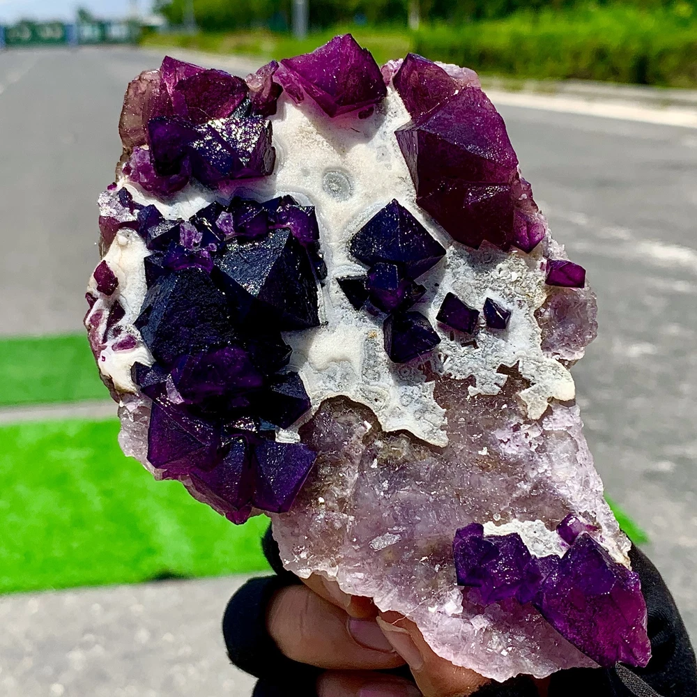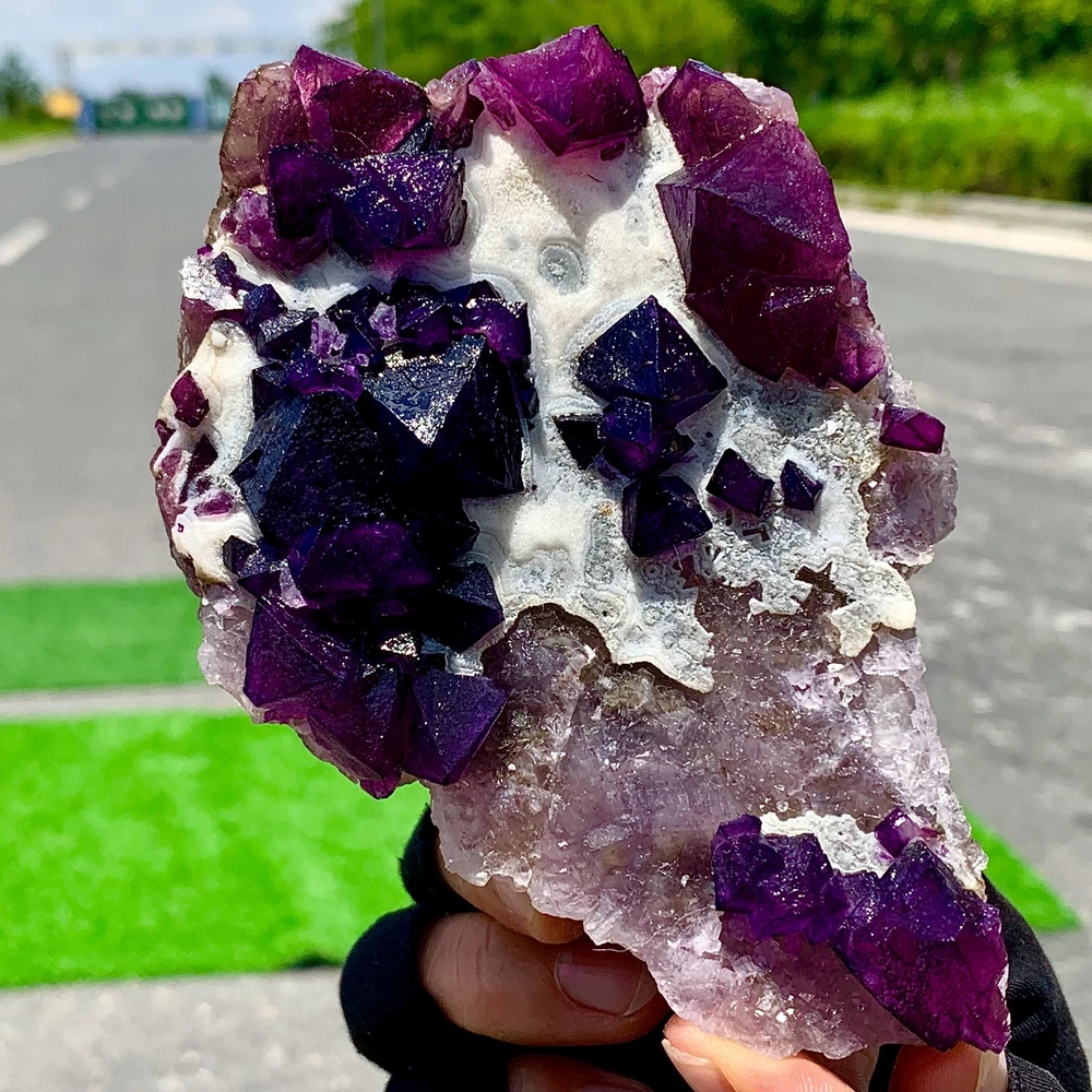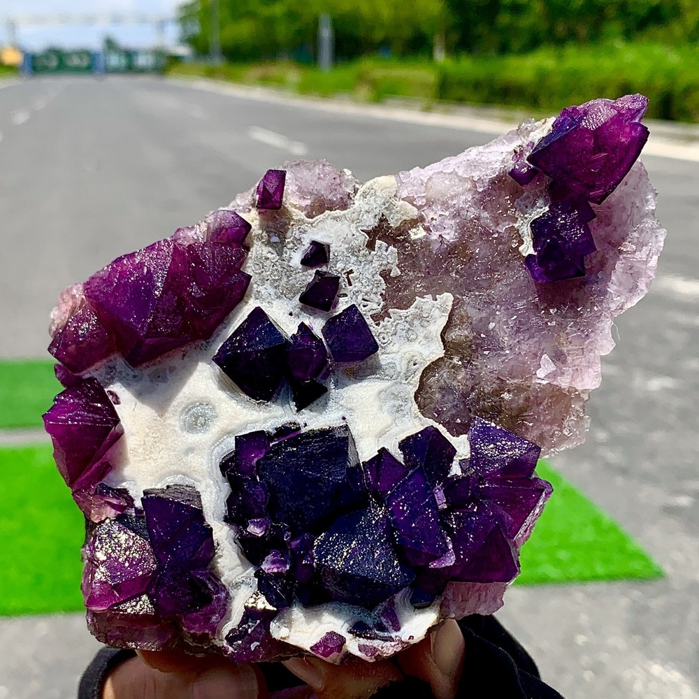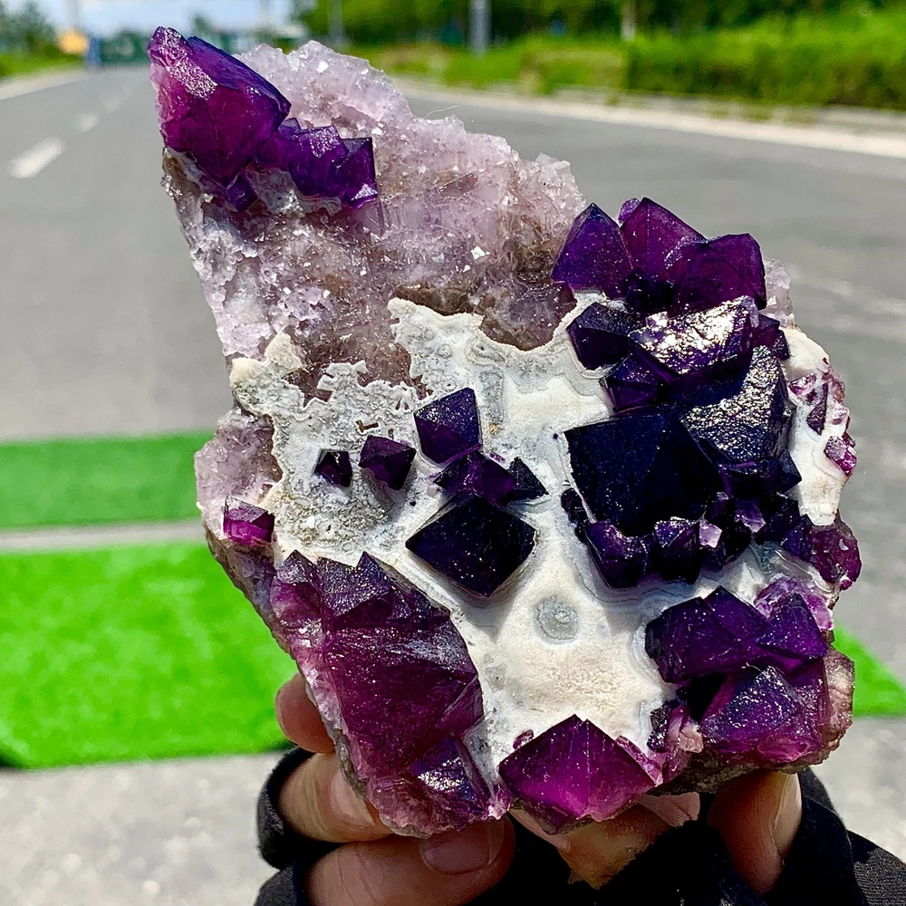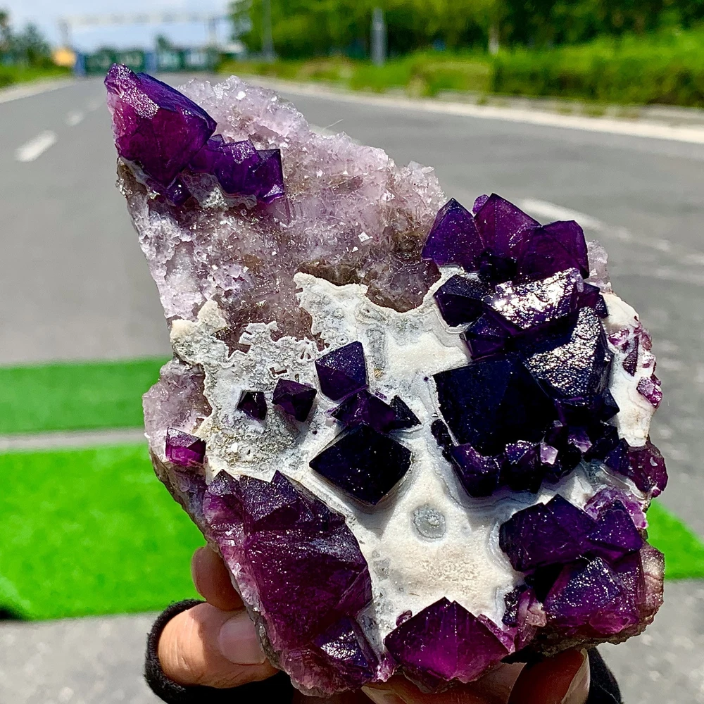1.47LB Natural Transparent purple Fluorite Mineral Crystal Specimen/China
