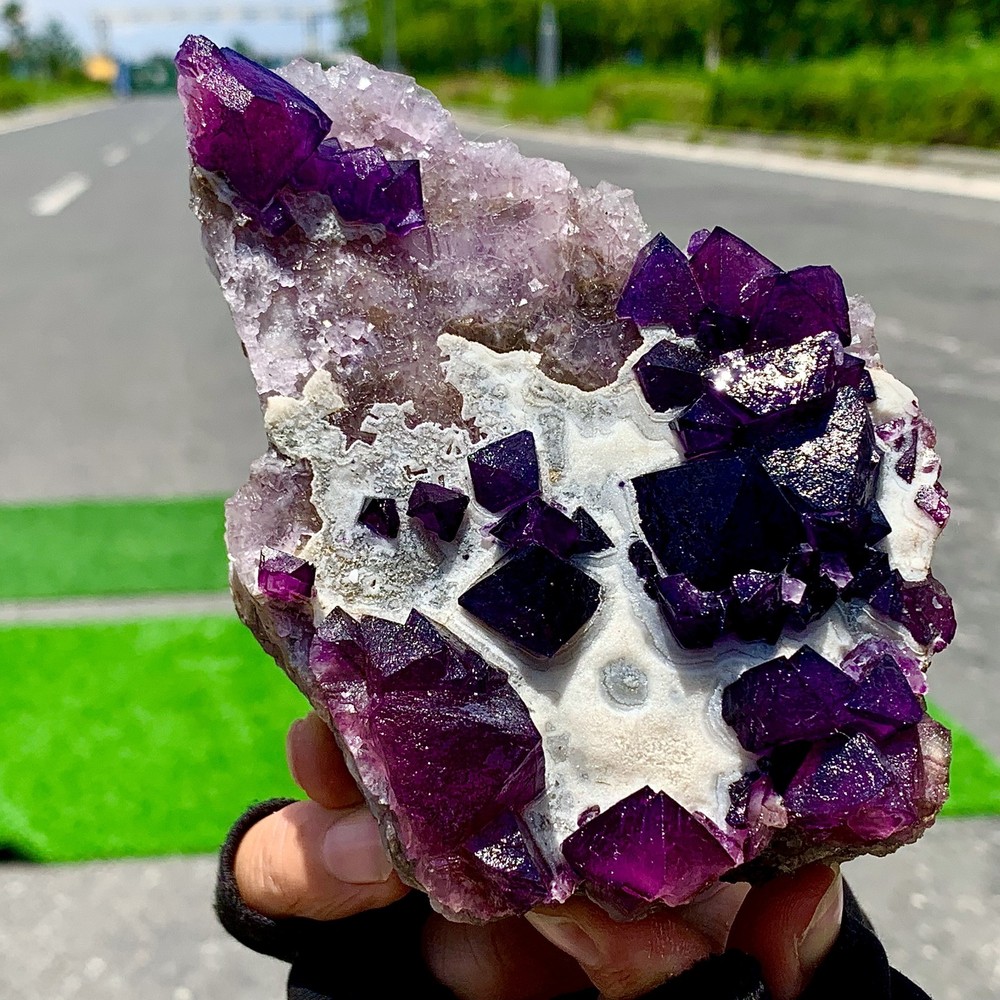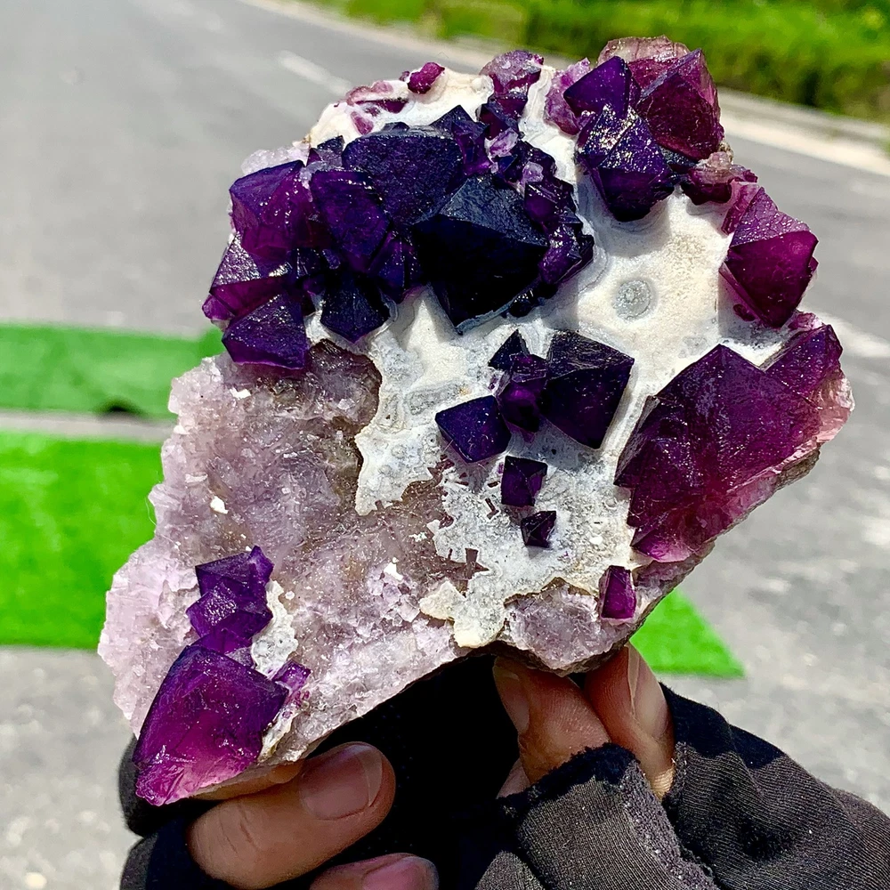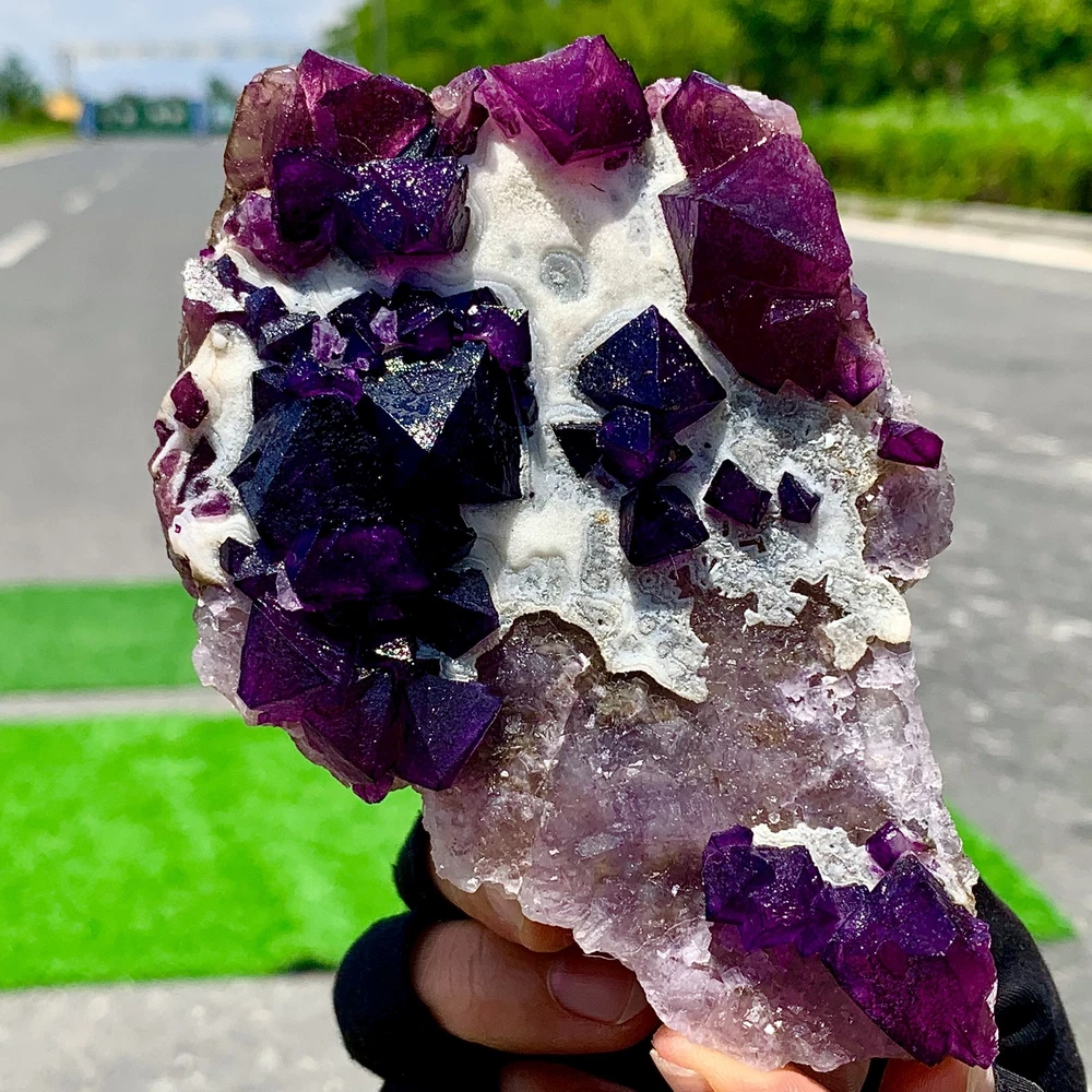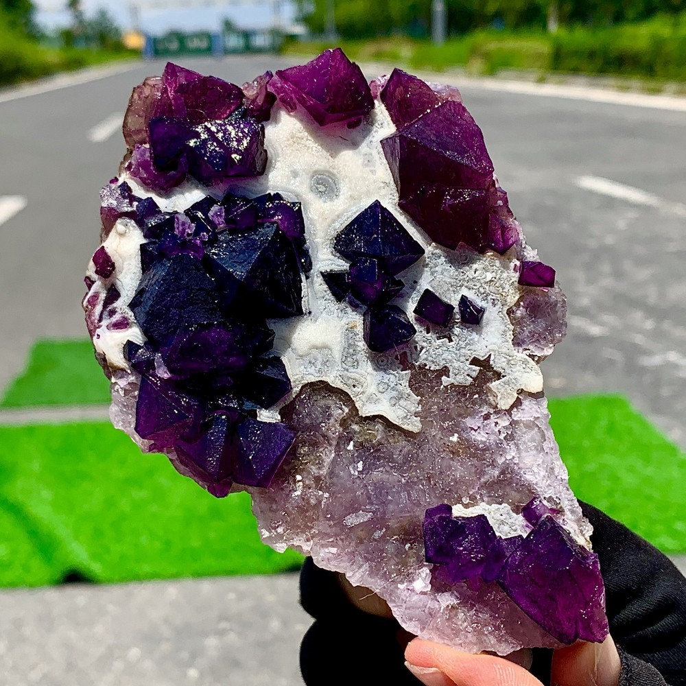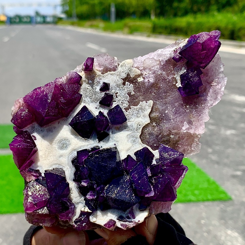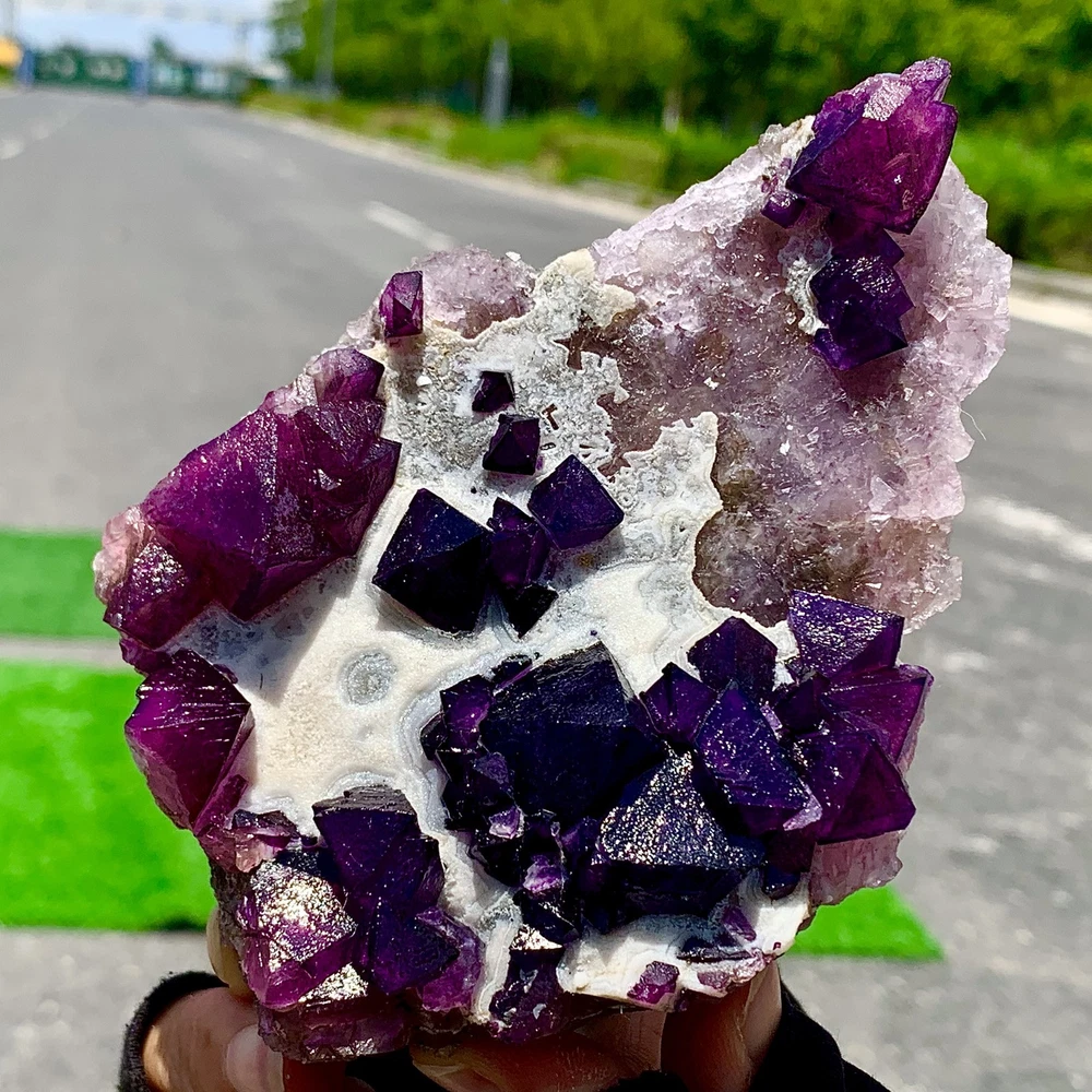 1.47LB Natural Transparent purple Fluorite Mineral Crystal Specimen/China