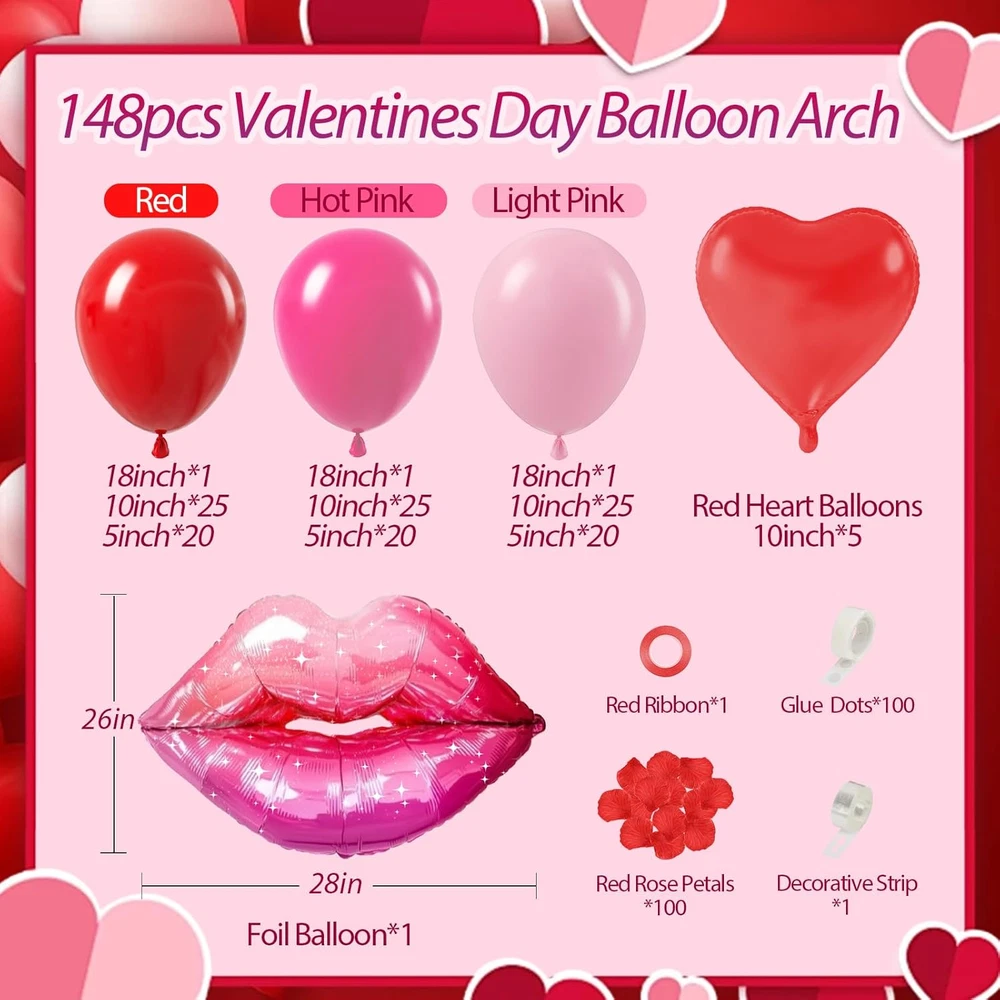 Store New Arrivals Add to Favorite View Feedback Contact Fast deliveries to the customer's home Quality customer service John Make the customers happy! 148Pcs Valentines Day Balloon Arch Garland Kit, Pink Red Heart Balloons Red Rose Petals for Engagement Anniversary Galentines Valentines Day Party Decorations Description What You Receive: The valentines balloon arch kit include 46pcs red balloons(18inchx1, 10inchx25, 5inchx20), 46pcs hot pink balloons(18inchx1, 10inchx25, 5inchx20), 46pcs light pink balloons(18inchx1, 10inchx25, 5inchx20), lip balloonx1, 10inch red heart balloonsx5, red rose petalsx100, red ribbonx1, glue dotsx100, decorative stripx1 Great Quality: The valentines day balloons are made of great quality latex, which is thick long-lasting and not easy to pop. The red and pink balloons can be filled with air or helium, which can last for quite a long time without popping Simple to Assemble: We offer ribbon, glue dots and decorative strip tool to help you easily create valentines day balloon arch. Inflate the valentines balloons with pump, then tie them together with the decorative strip and hang them with ribbon. Finally, use glue dots to fill any other areas you like with the 5-inch balloon and 10-inch red heart balloons Wide Application: The valentins day balloon arch kit is great for valentines party decorations, valentines baby shower decorations, galentines day decorations, engagement decorations, anniversary decorations, mother's day decorations, red birthday decorations and so on Warm Tips: If there are any problems with the valentines balloon arch, we will try to solve them for you, so that you can enjoy the party with peace of mind Product Description Item model number G148 QRJ balloon arch Unit Count 148.0 Count Color Pink, Red Pattern Heart, Solid Material Latex, Polyester Theme Holiday Item Weight 11.7 ounces Shape Round Manufacturer recommended age 13 years and up Occasion Valentine's Day Package Dimensions 8.82 x 3.7 x 2.48 inches Included Components Red Rose Petals, Ribbon, Glue Dots, Decorative Strip, Balloons ABOUT US We offer the best prices around on high quality products. Our E-store includes media such as books, movies, music and games while offering electronics, toys, sporting apparel, clothing, tools, general home, garden items and more. SHIPPING We are always working hard to ensure your package arrives as soon as possible. Please understand that some factors like weather, high postal traffic, and the performance of shipping companies are outside of our control. We offer free shipping to the lower 48 states and ship within 2 business days of payment, usually sooner. We do not accept P.O. Boxes. Please provide a physical address. For shipping outside of the continental USA, we only use eBay's Global Shipping Program. The item is shipped to KY and then sent to the rest of the world. International customers are responsible for all duties and taxes. Continue to 'check out' to calculate costs for shipping the item to your country. Messages regarding eBay's Global Shipping Program MUST be directed at eBay EXCLUSIVELY. RETURNS We offer a 30-Day Return Policy on items in which you are not completely satisfied with. You have the option of a full-refund or an exchange of the item. No returns are available on items shipped outside of the USA PAYMENT We accept PayPal. CONTACT US This page content is yet to come Please ad us to your favorite seller and visit again later Thank You CUSTOMER SATISFACTION We try our very best to make sure every customer is completely satisfied. If there's a problem, message us! We're happy to help. WE ACCEPT