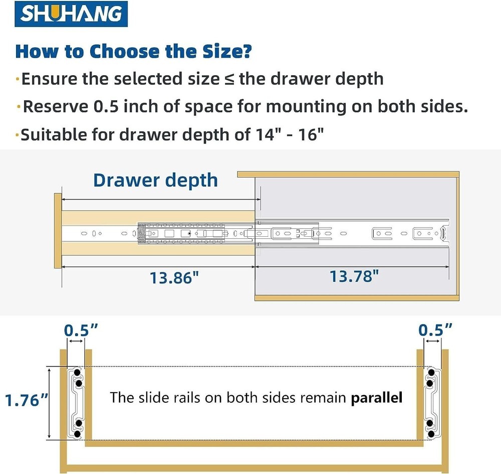 $ 3.7Full Extension Drawer Slides, Ball Bearing Side Mount, 10" to 24 inch, H.Quality
