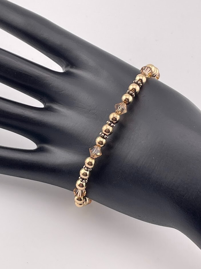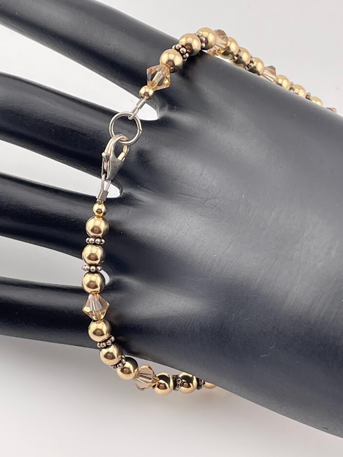 14K GOLD FILL 925 STERLING SILVER CRYSTAL BEADED ANKLET BRACELET 2719 ****************************** Thank you for your interest in our jewelry. We?d like to introduce ourselves. We are just a retired couple who love matching our customers with great jewelry. We?re not professional jewelers. To have the best shopping experience we like to recommend the following: Please measure your hand, wrist, finger or neck to ensure the best fit. We can use your measurements to help with sizing. Please ask all the questions you want. We know some stuff and, if we don?t, we?ll do the research. We like to learn too. More Stuff: If an item is described as ?gold over 925 sterling silver? this means it is gold vermeil. Vermeil is the process by which a layer of gold (usually 14k or 18k) is bonded to sterling silver. We only clean with gentle soap and warm water to avoid damage. The items we sell may be new or pre-owned and may have normal wear, slight damage, and/or tarnish. We make every effort to ensure the items we sell are as described. This includes testing to confirm metal purity if the item isn?t marked, and testing for gemstone identity. We try to put measurements in the jewelry description and include a photo of each piece with a U.S. quarter (25mm).