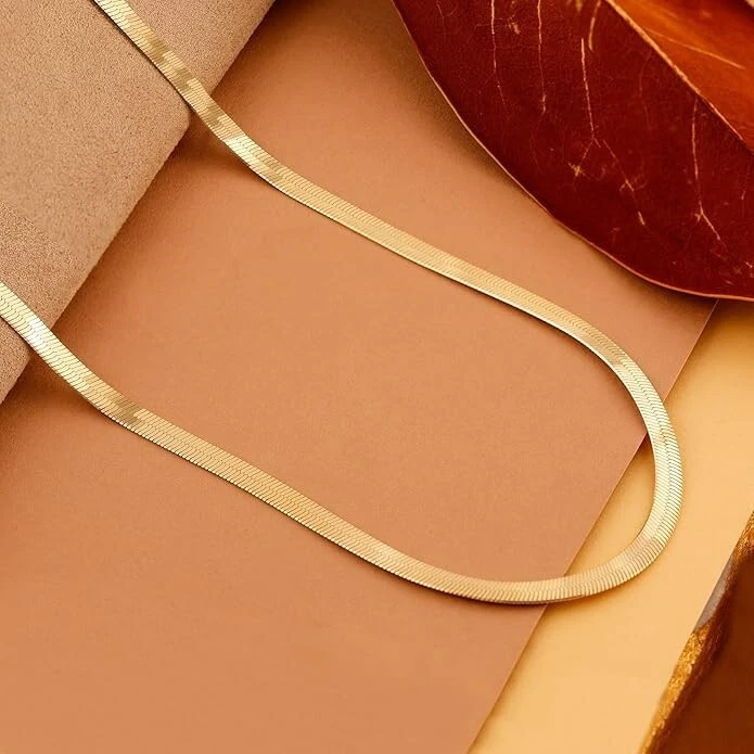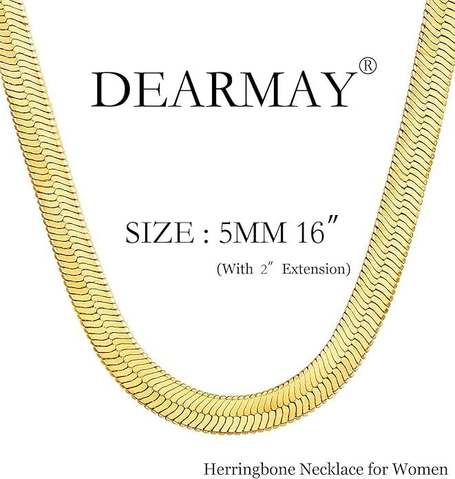 14K Gold Necklaces for Women, Dainty Gold Herringbone Choker Necklace for Women About this item: Size and Length: Women's 5mm width herringbone necklace, 14" + 2" in length. Premium Quality: 14K real gold filled, waterproof and hypoallergenic. Trendy Design: Gold snake chain style, a current trend. Gift Readiness: Comes in a cute box, suitable for any event. Exceptional Service: DEARMAY offers superior service to ensure you have a delightful shopping experience. Should you have any questions, please do not hesitate to contact us.
