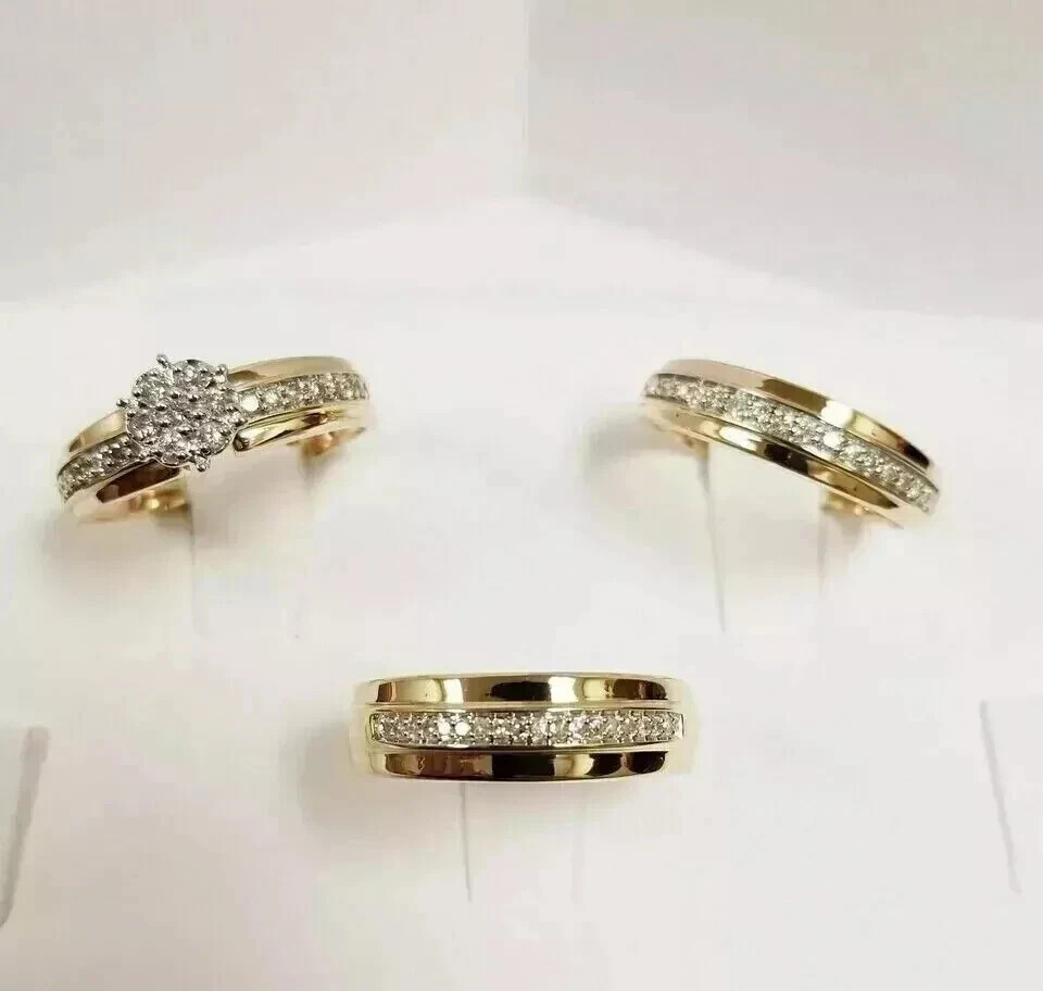 $ 85.814k Yellow Gold Plated 4Ct Lab Created Diamond His & Hers Wedding Trio Ring Set