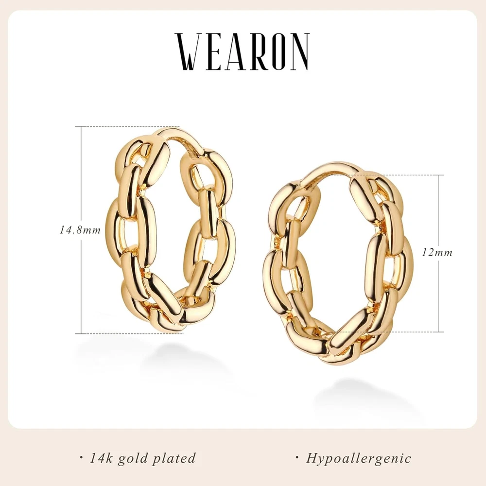 These 14K gold-plated huggie earrings are absolutely stunning! The twisted chain design adds a touch of elegance while keeping it simple and versatile. They’re lightweight, comfortable, and perfect for everyday wear. The gold plating gives them a luxurious look without the high price tag. Plus, they’re hypoallergenic, so no irritation—just pure style. A must-have for any jewelry collection!